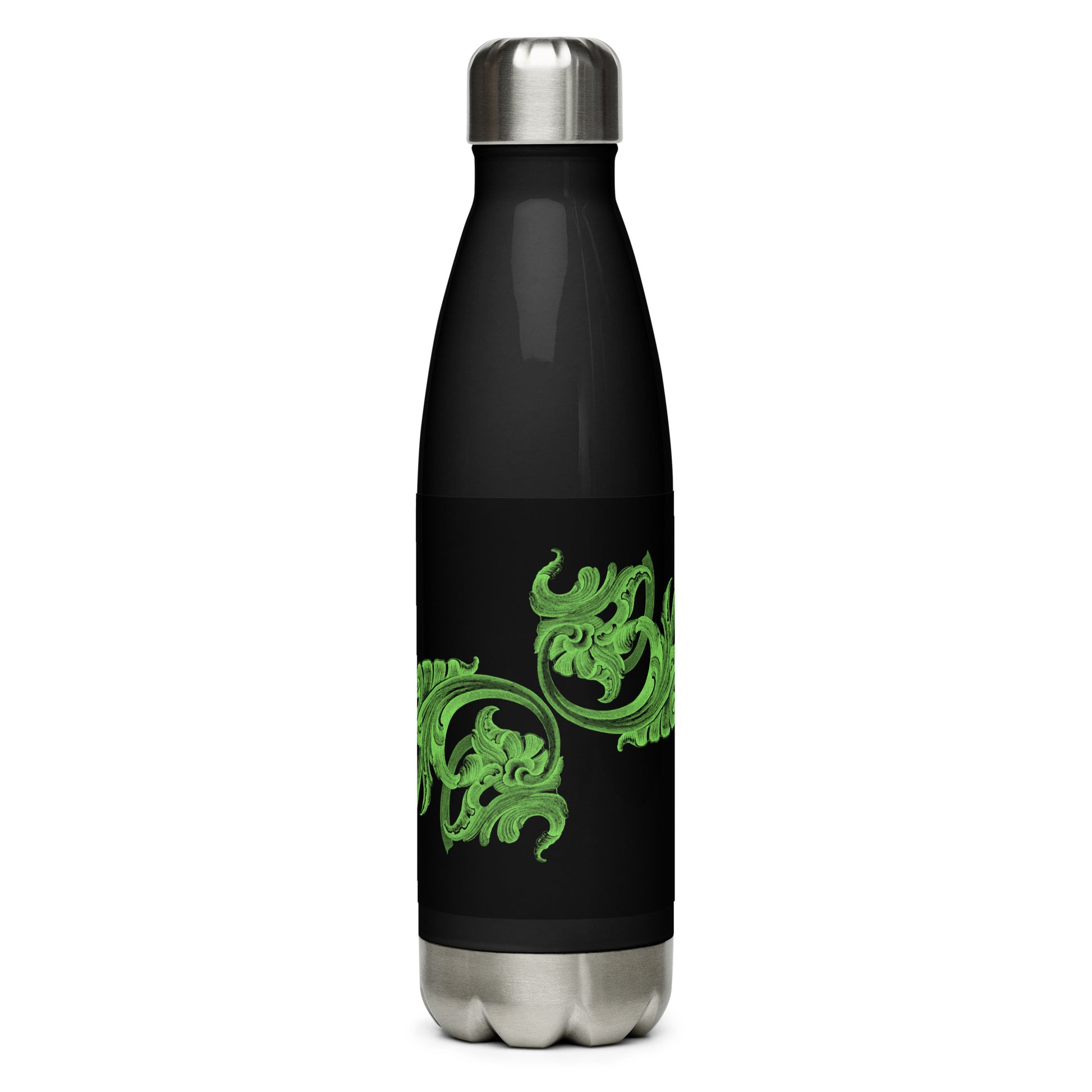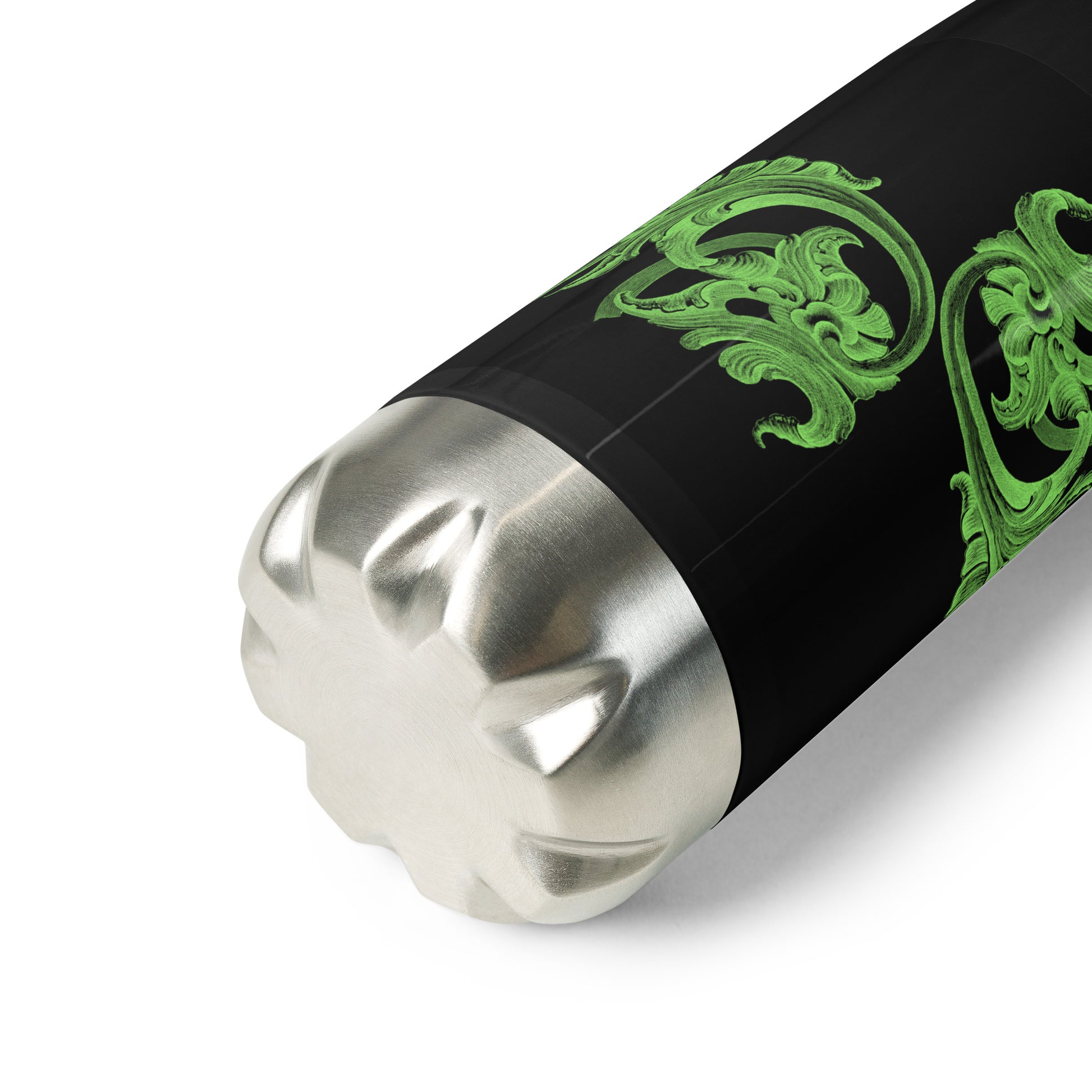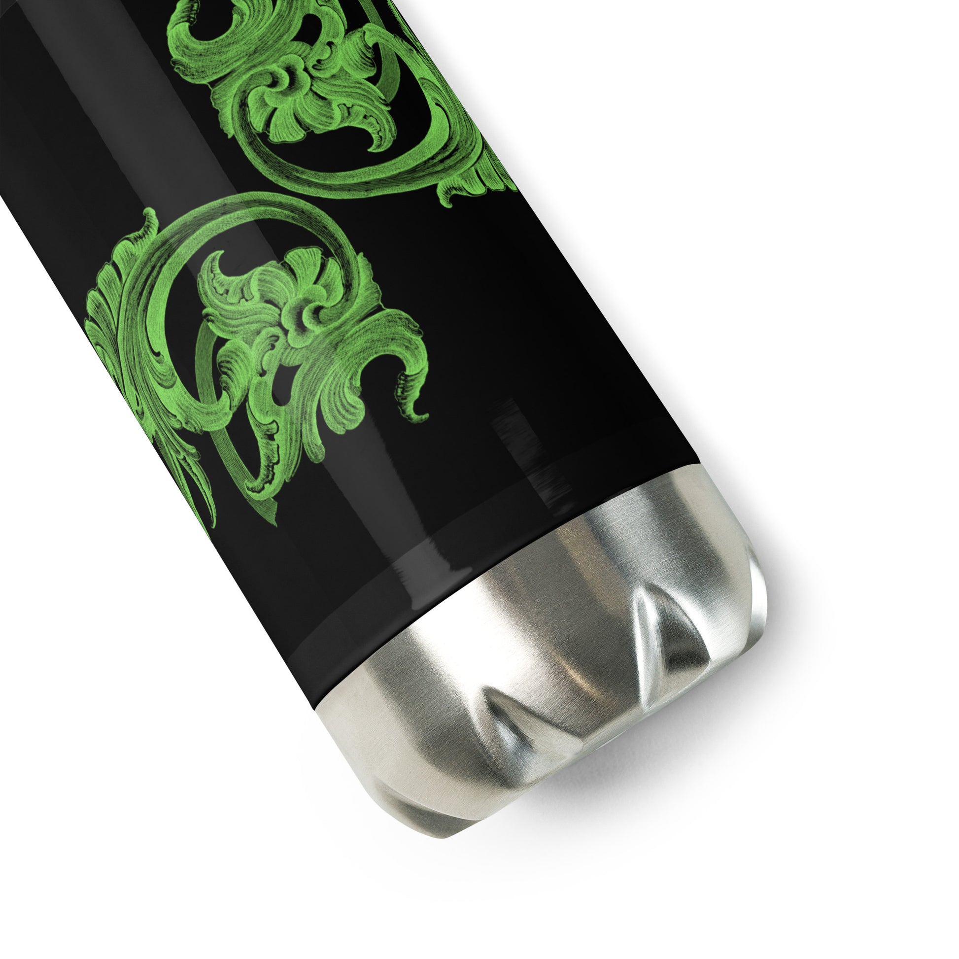 Art Nouveau Filigree Green Black Stainless Steel Water Bottle