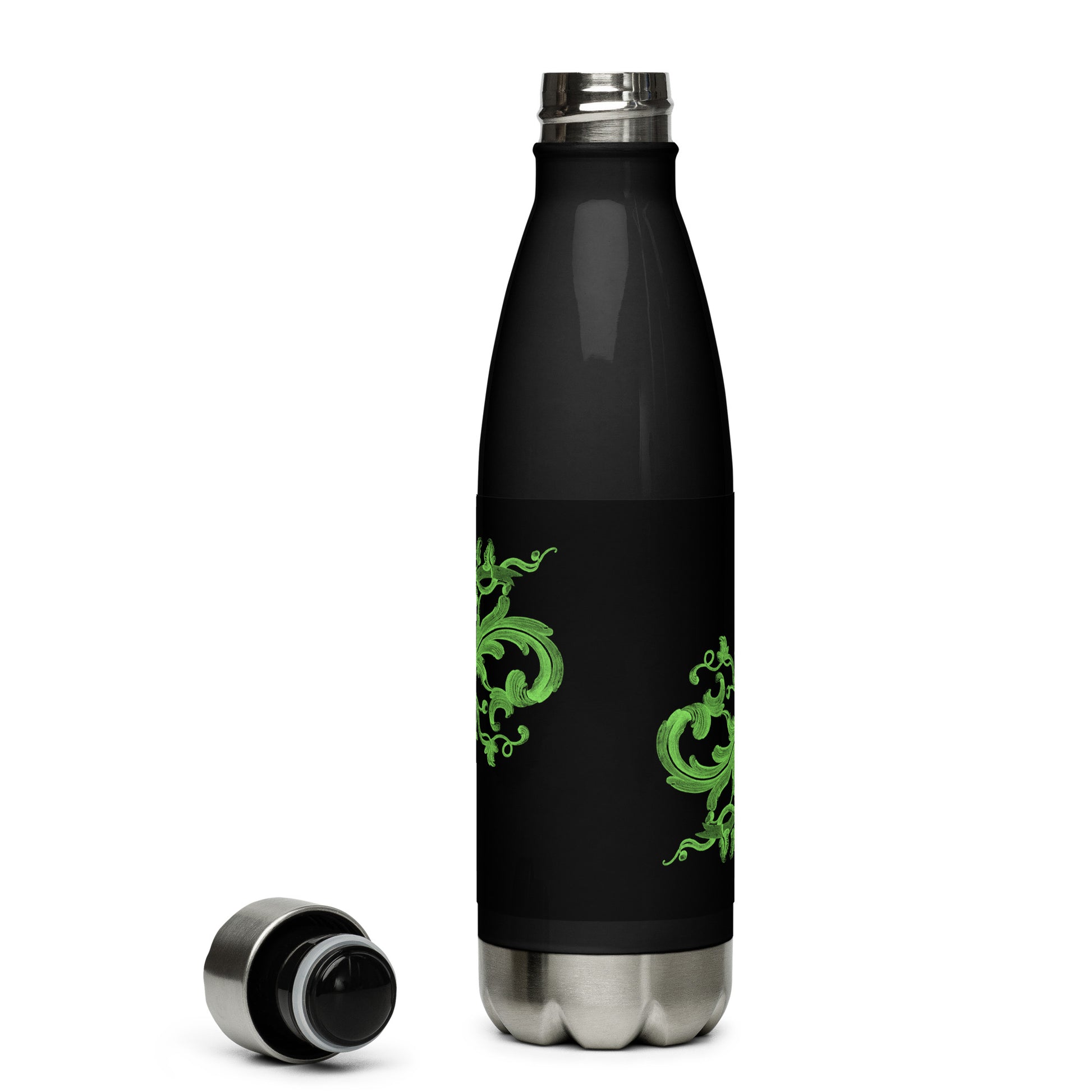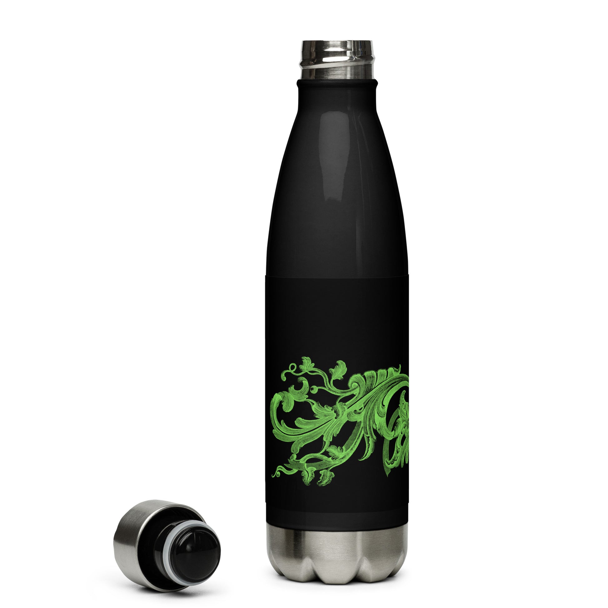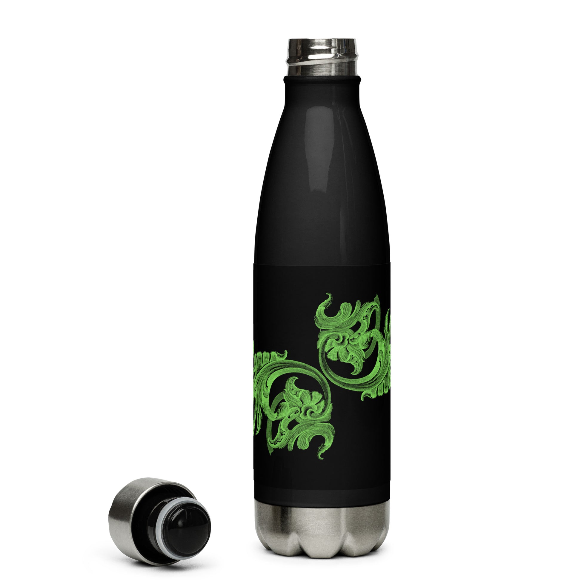 Art Nouveau Filigree Green Black Stainless Steel Water Bottle
