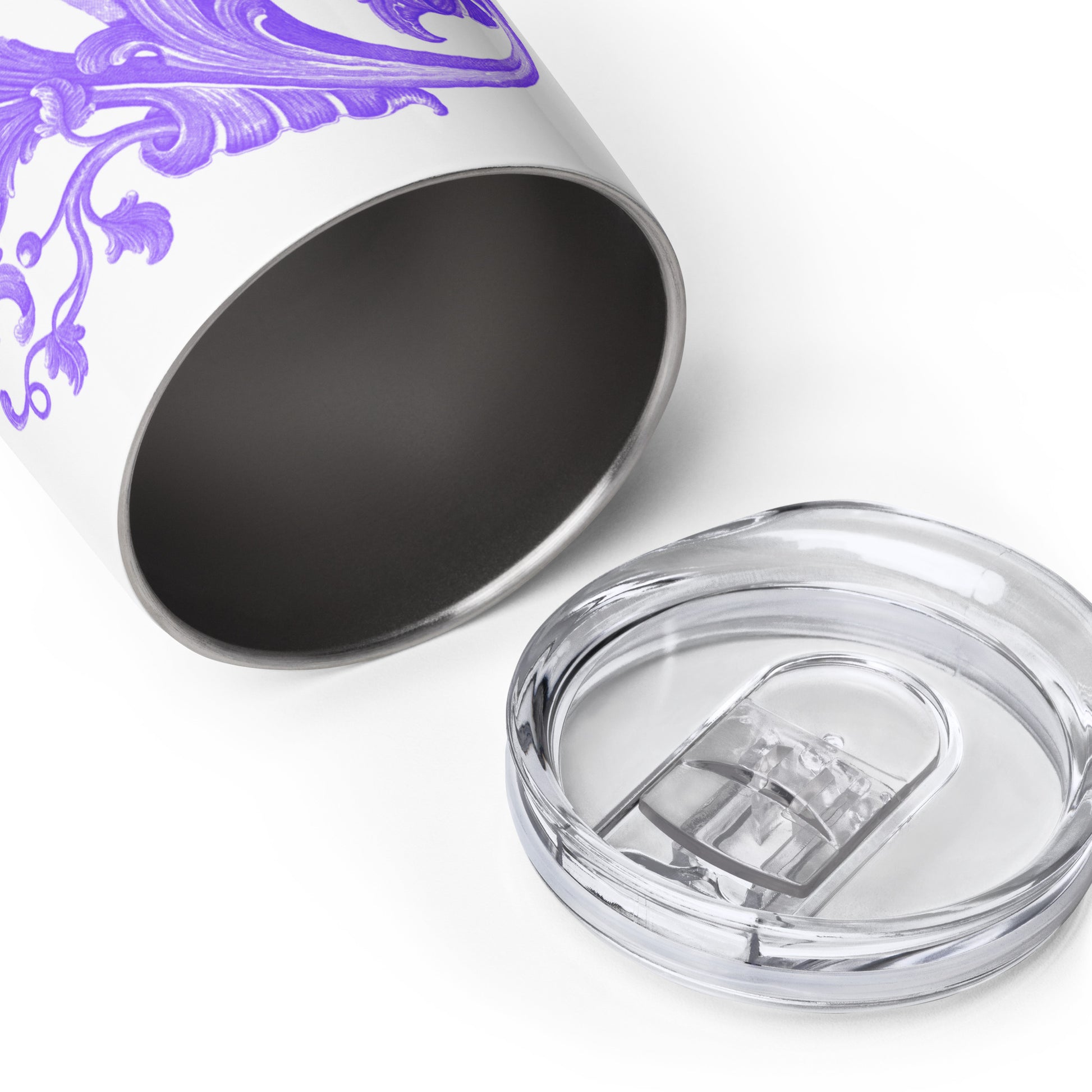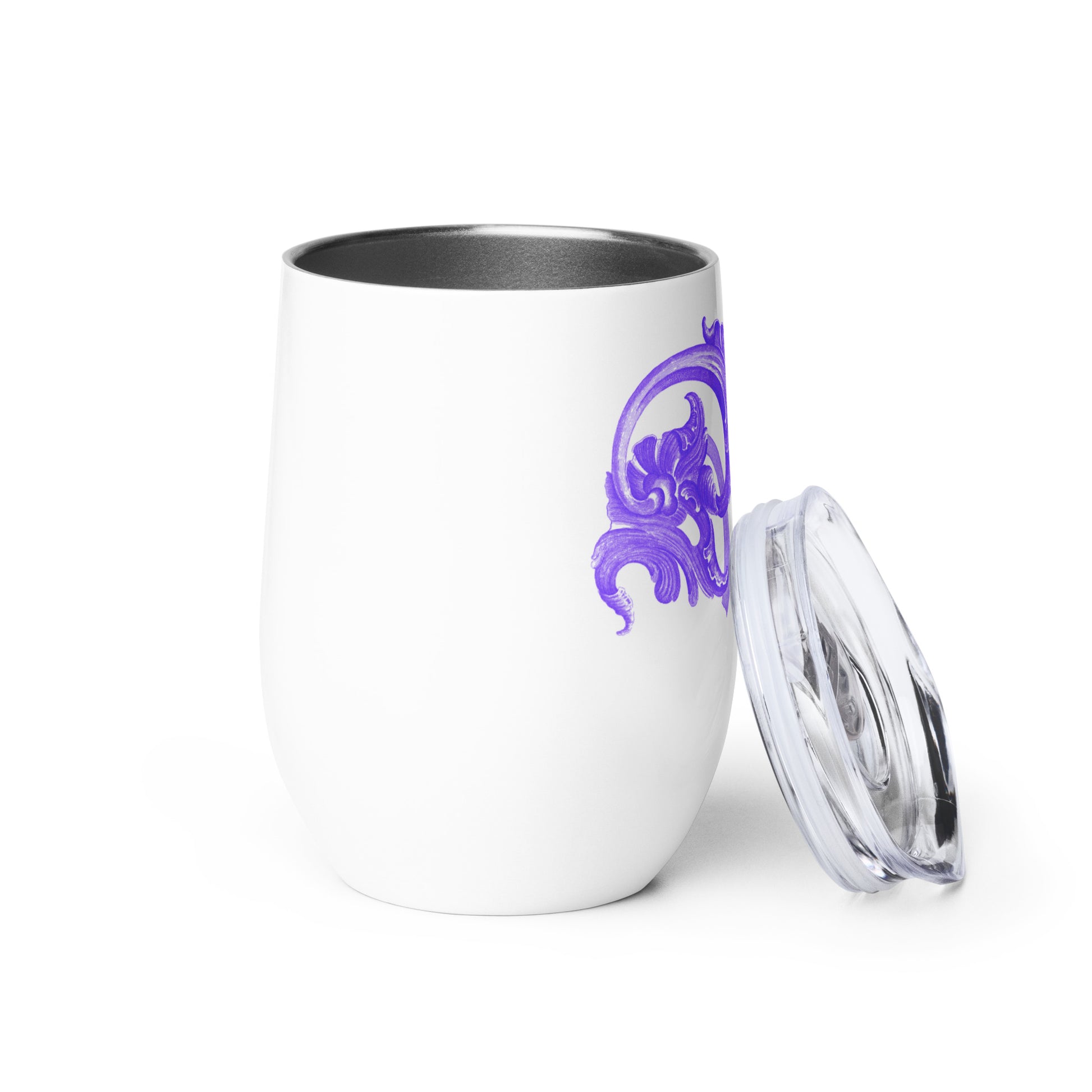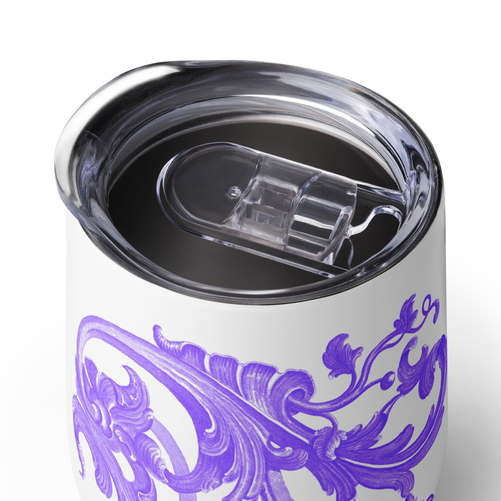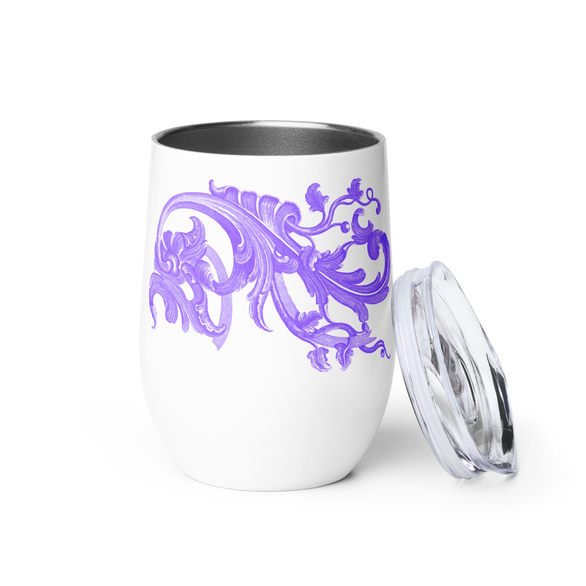 Art Nouveau Filigree Purple White Wine Tumbler 12 oz