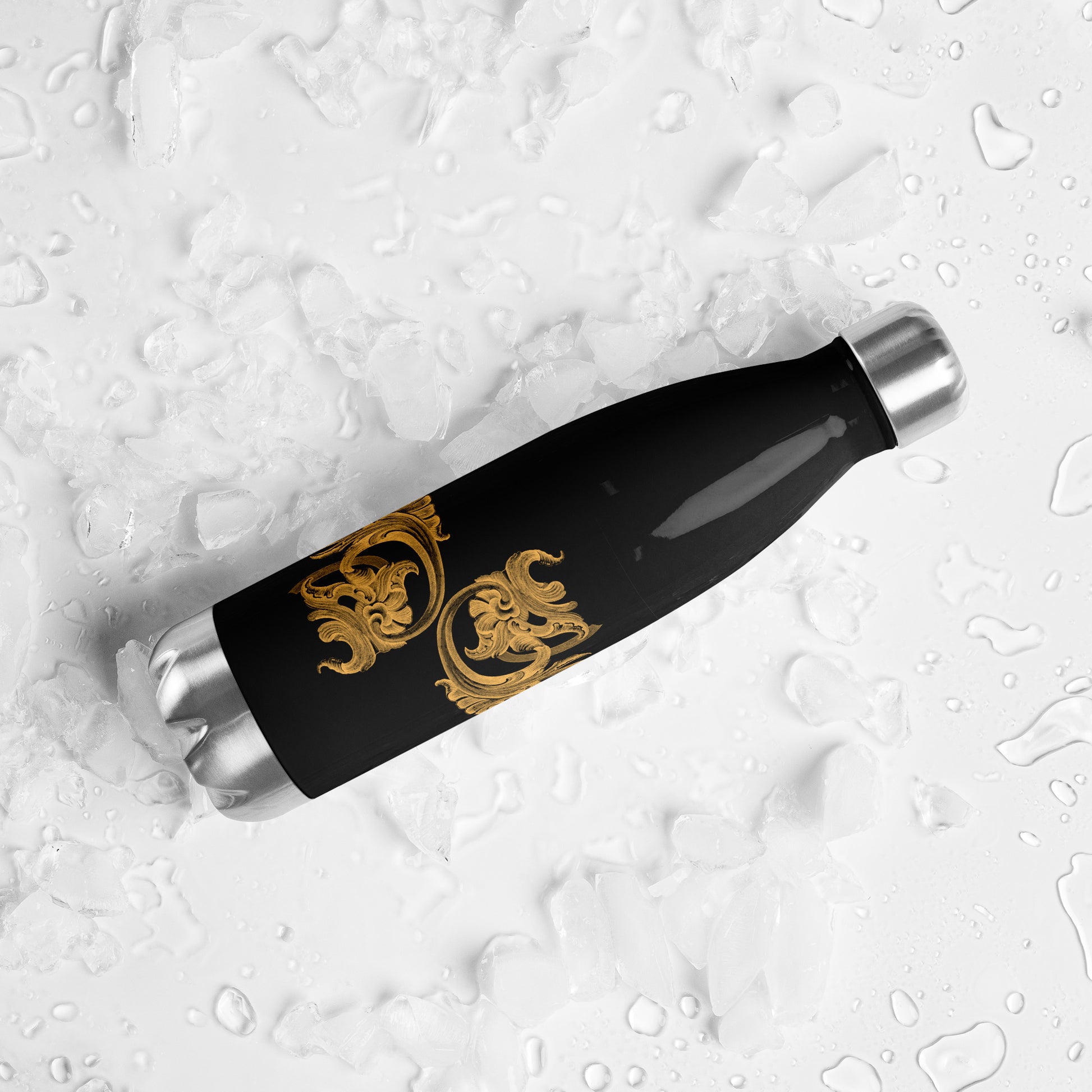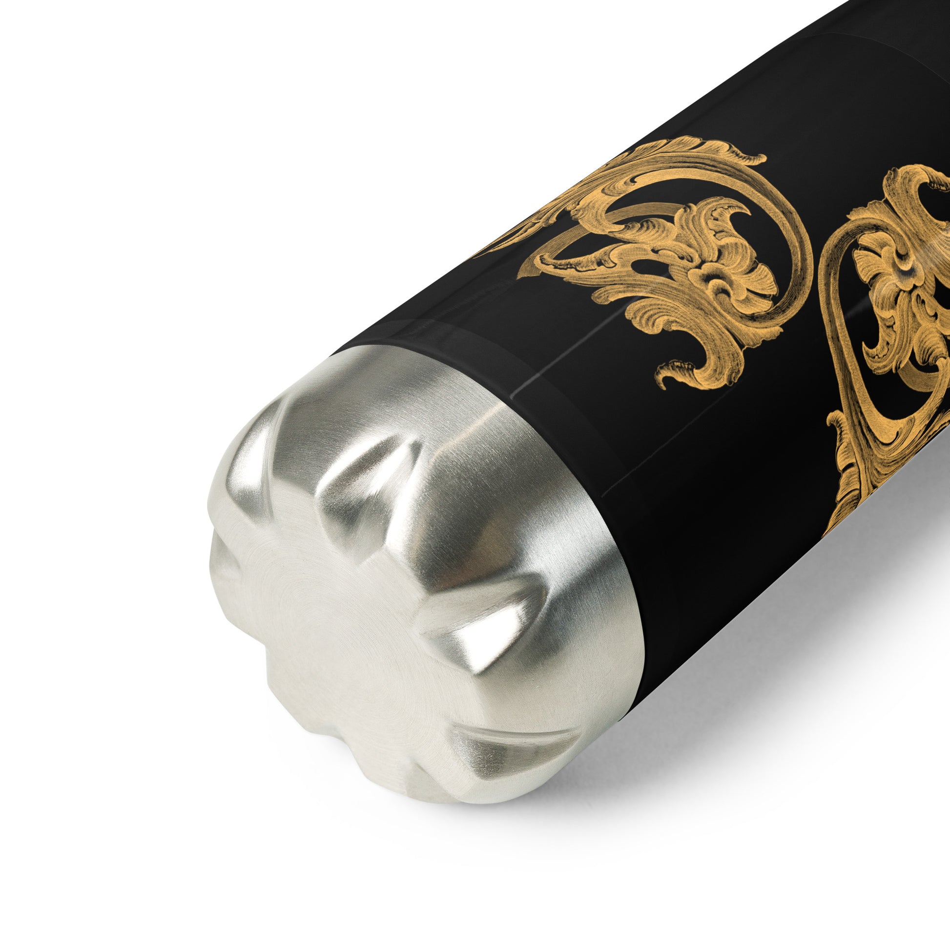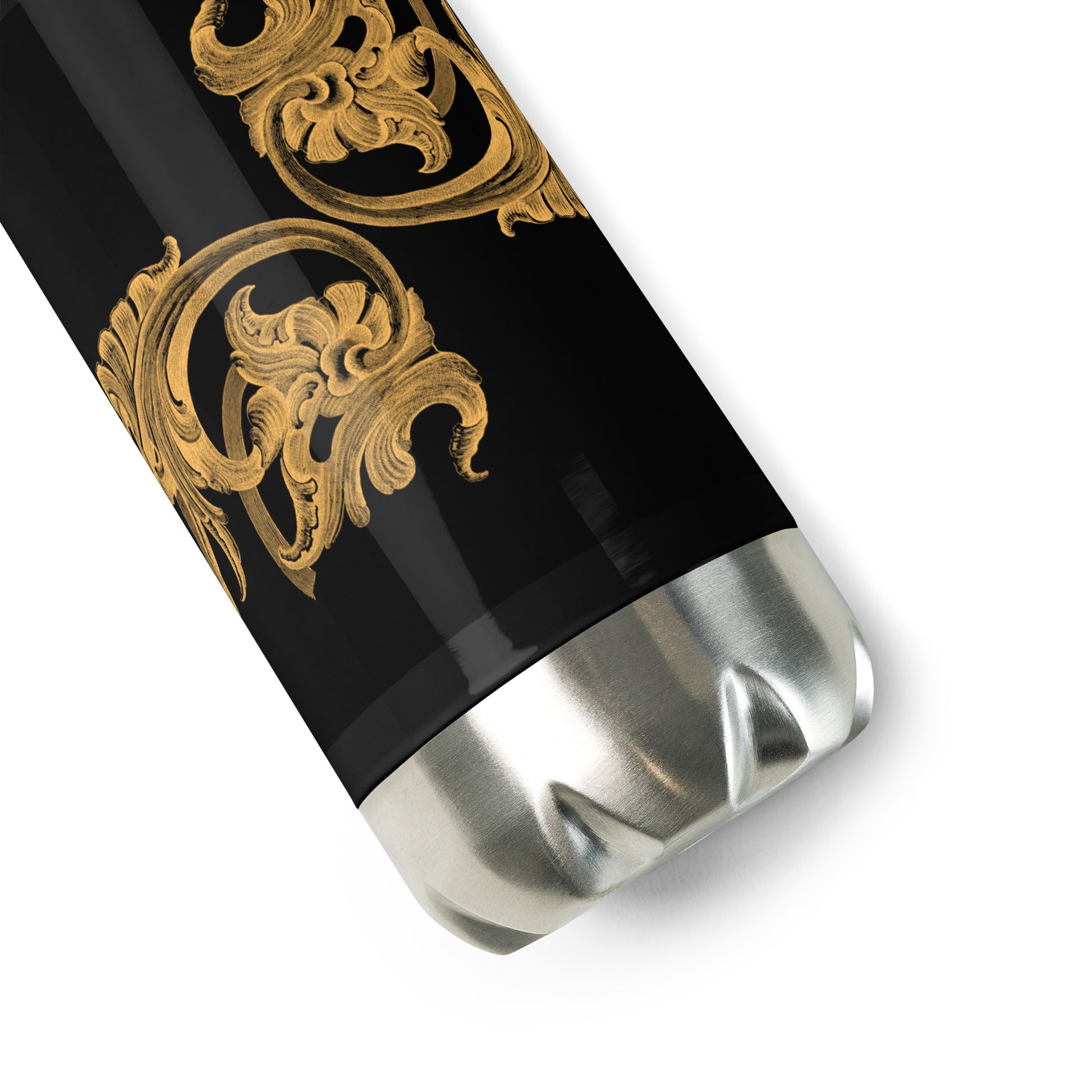 Art Nouveau Filigree Orange Black Stainless Steel Water Bottle