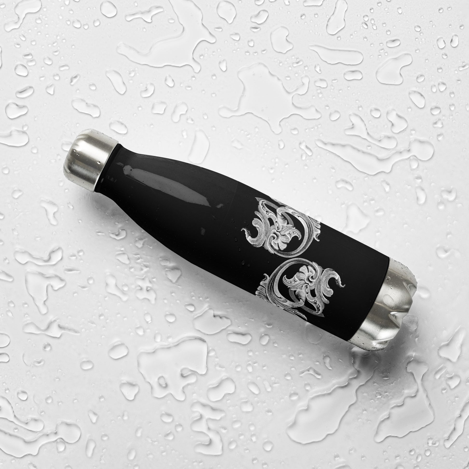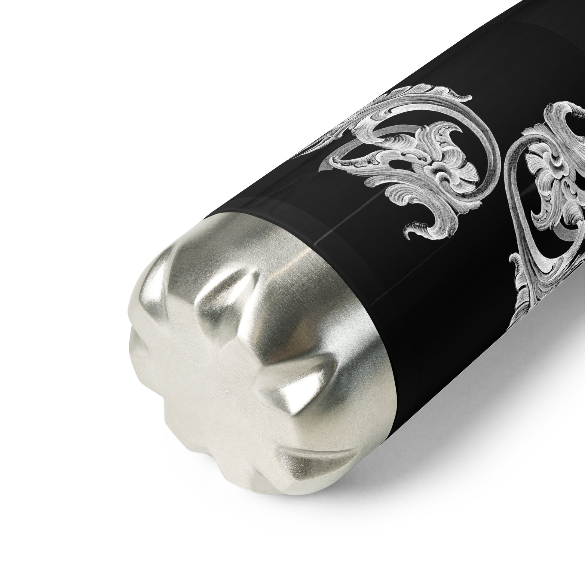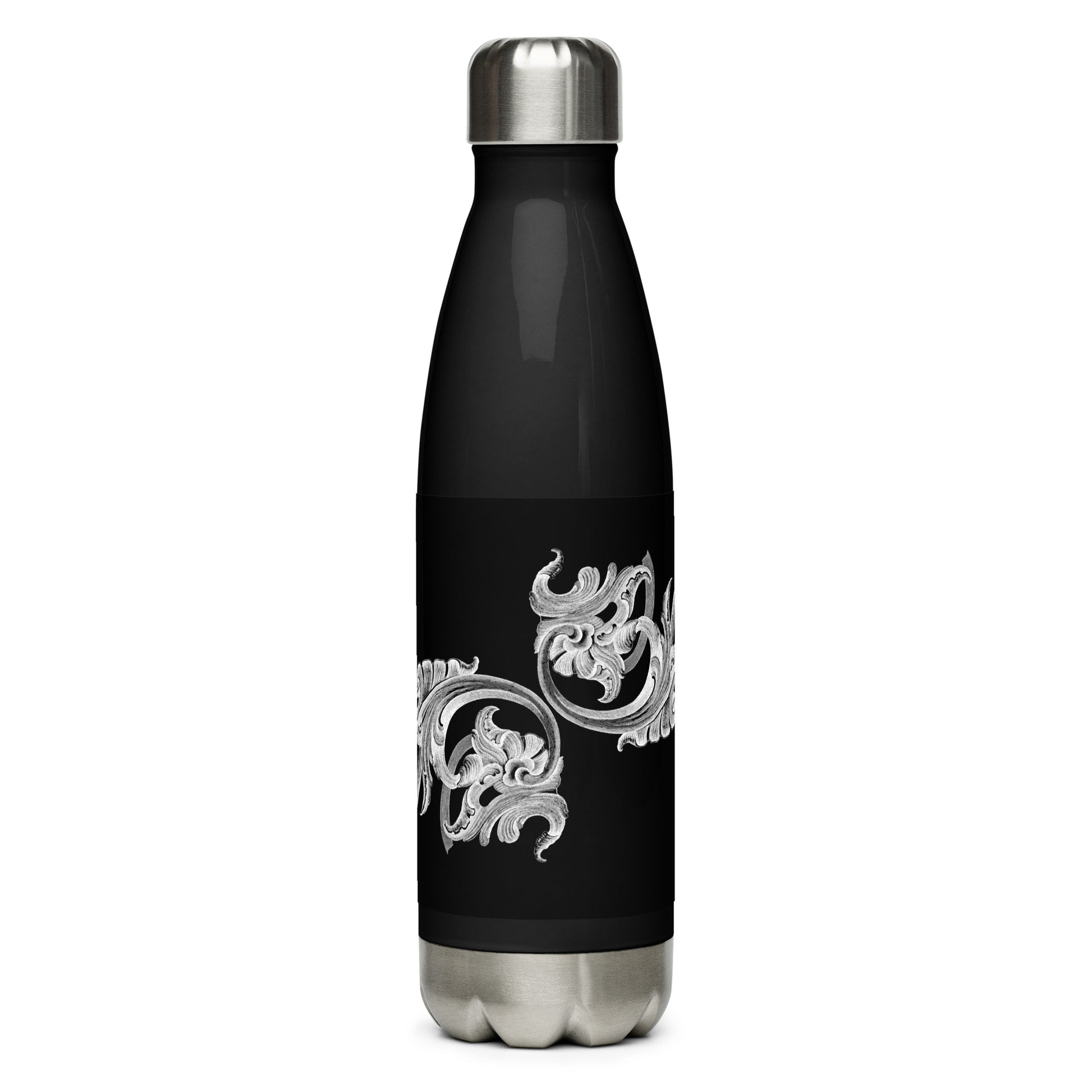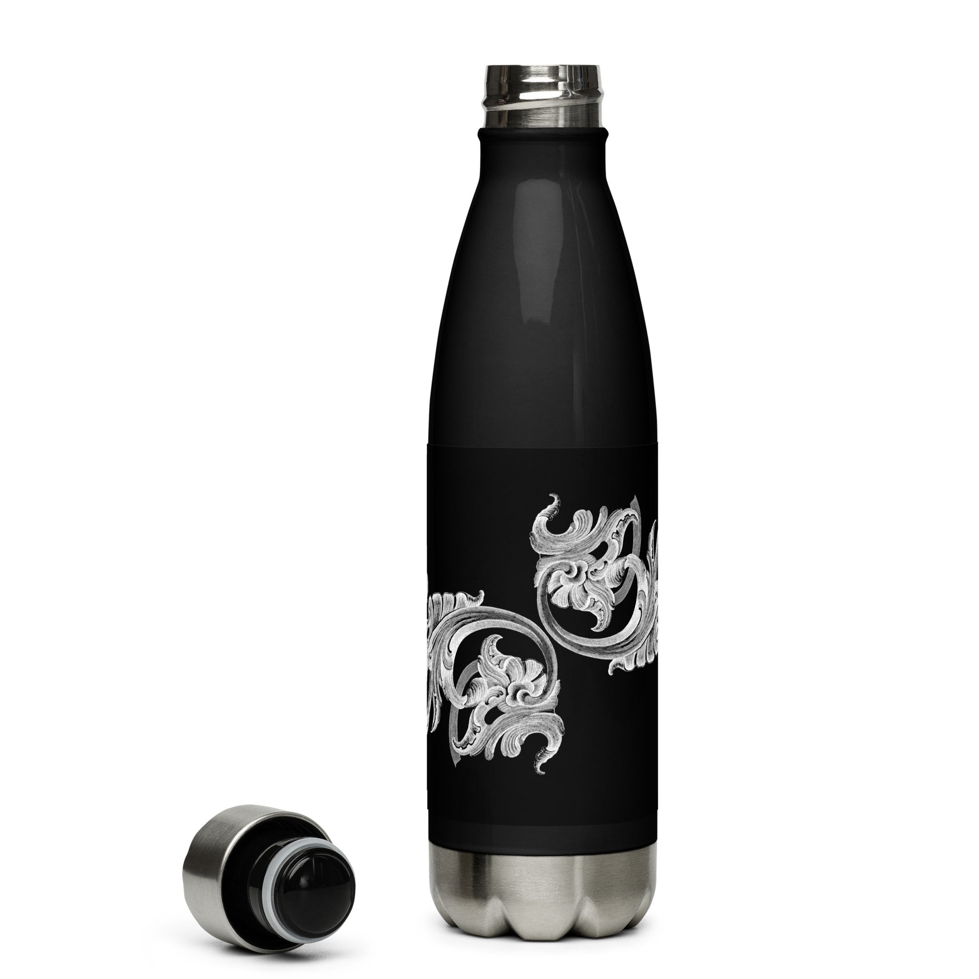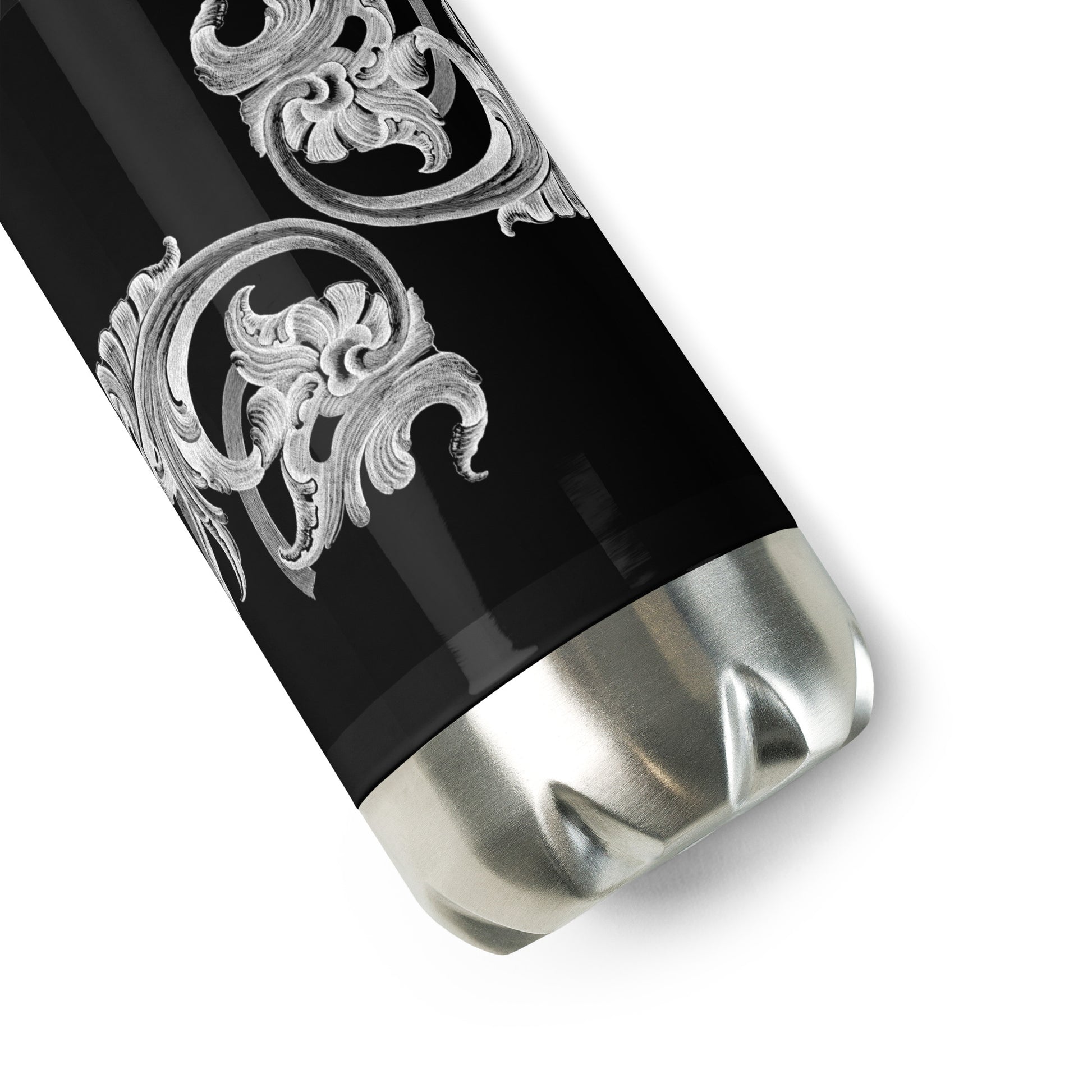 Art Nouveau Filigree White Black Stainless Steel Water Bottle