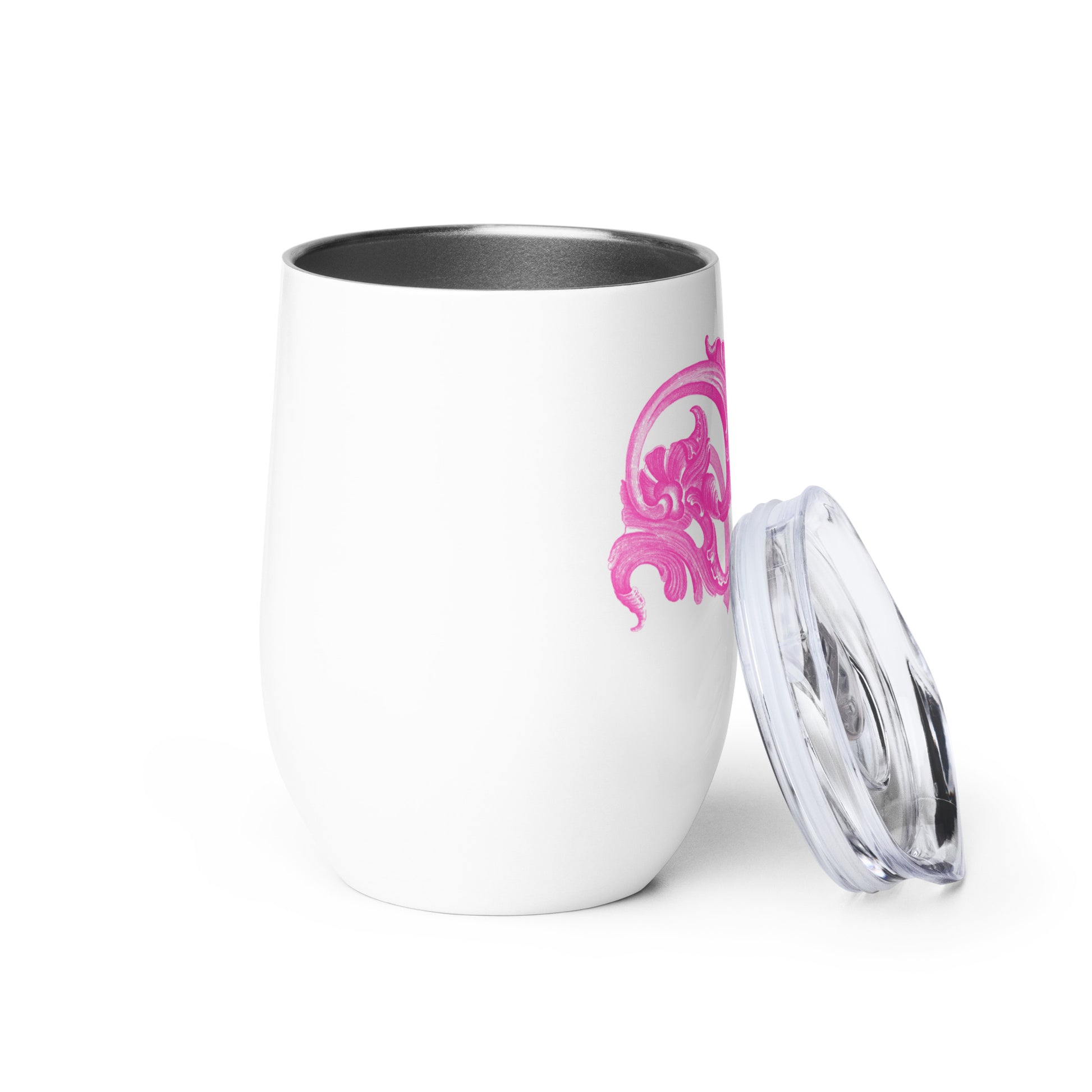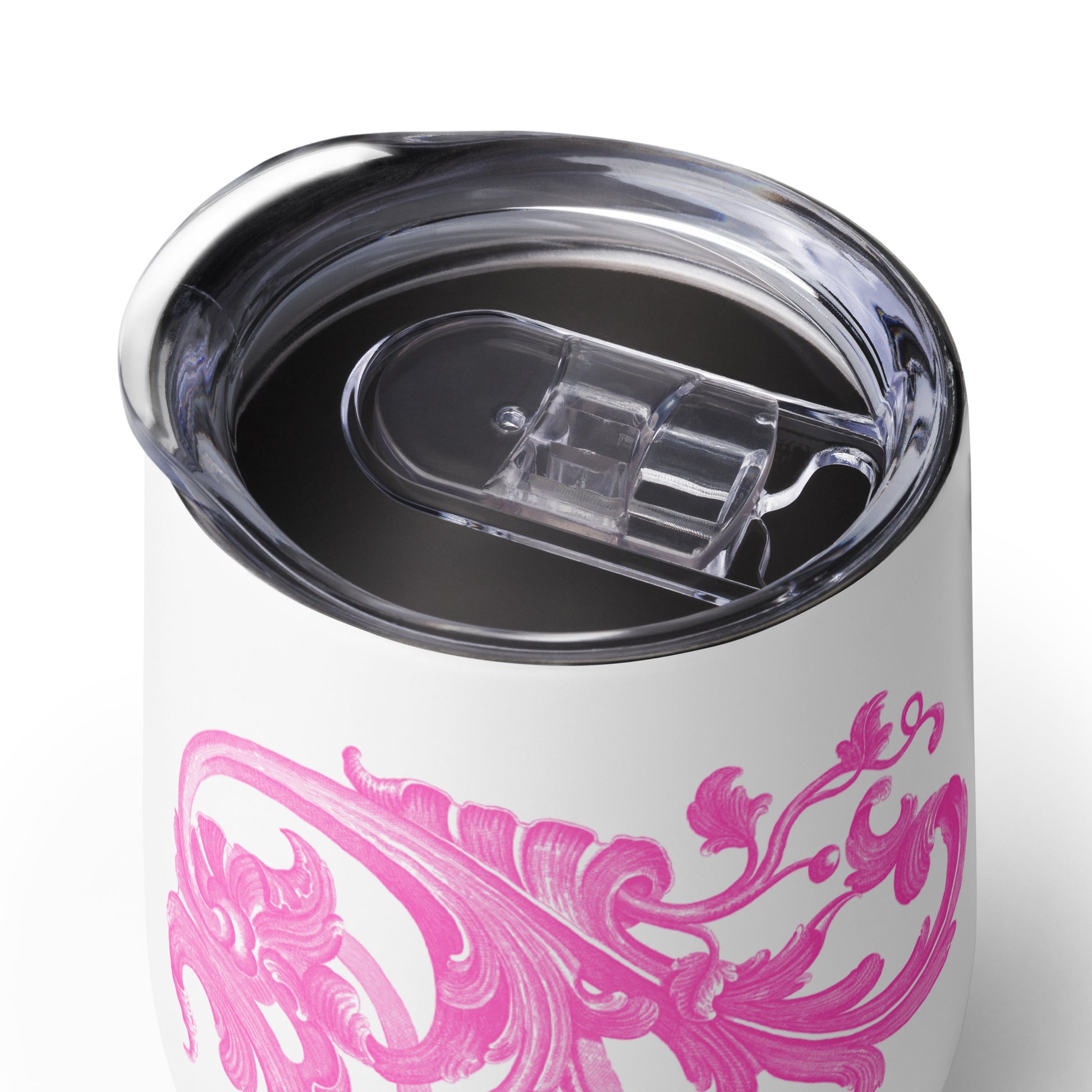 Art Nouveau Filigree Pink White Wine Tumbler 12 oz