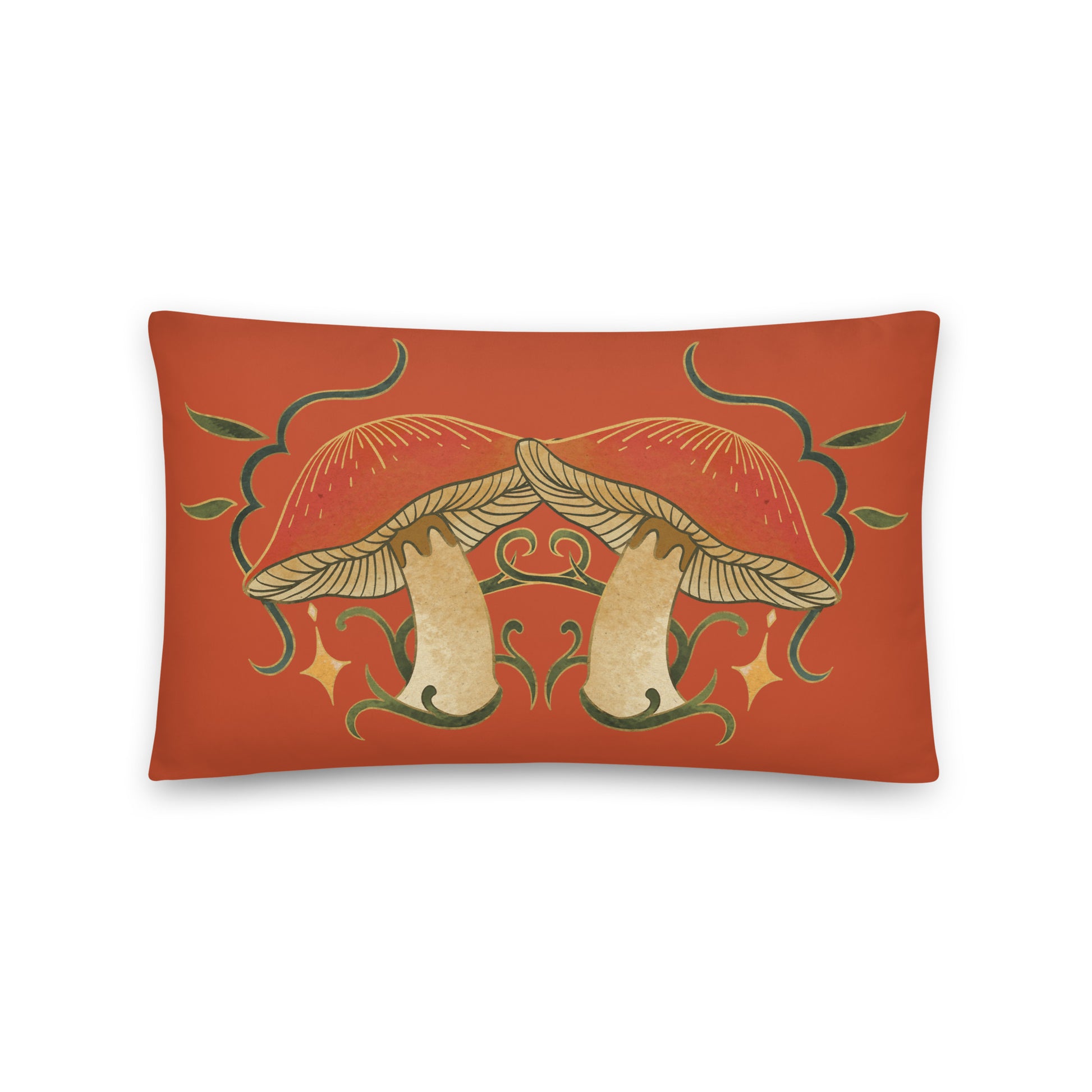 Autumn Mushrooms Red Throw Pillow 12" x 20"