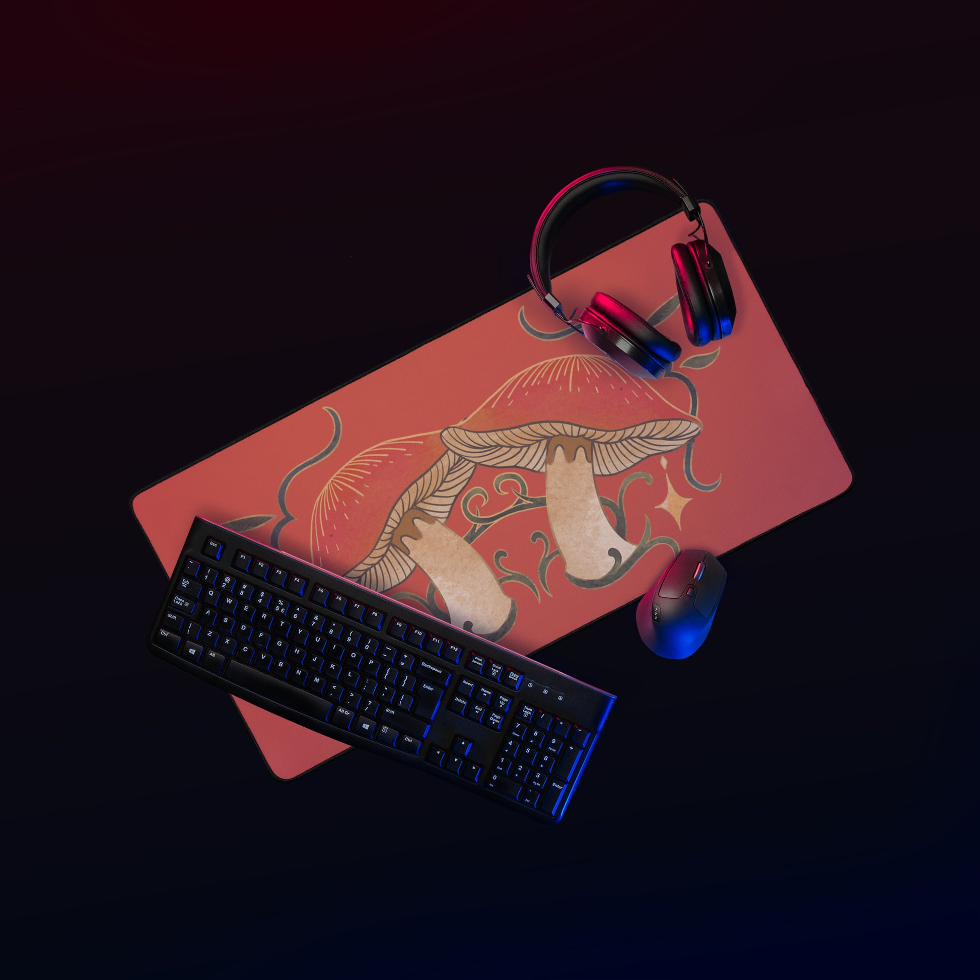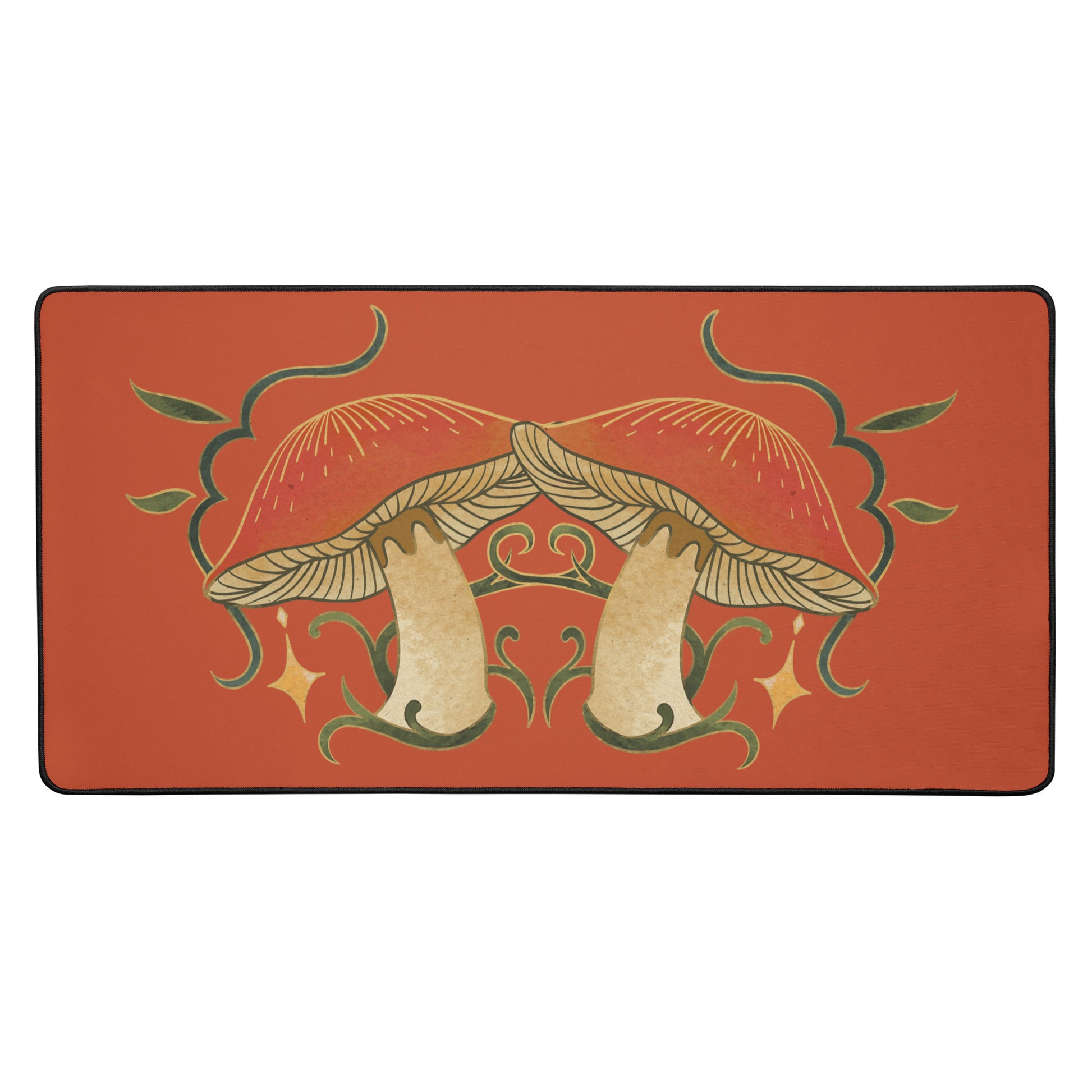 Autumn Mushrooms Red Desk Mat 16″×32″
