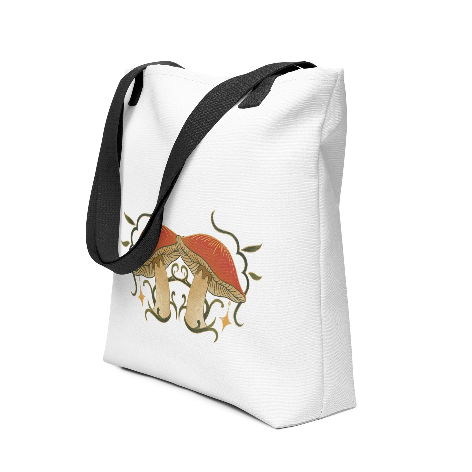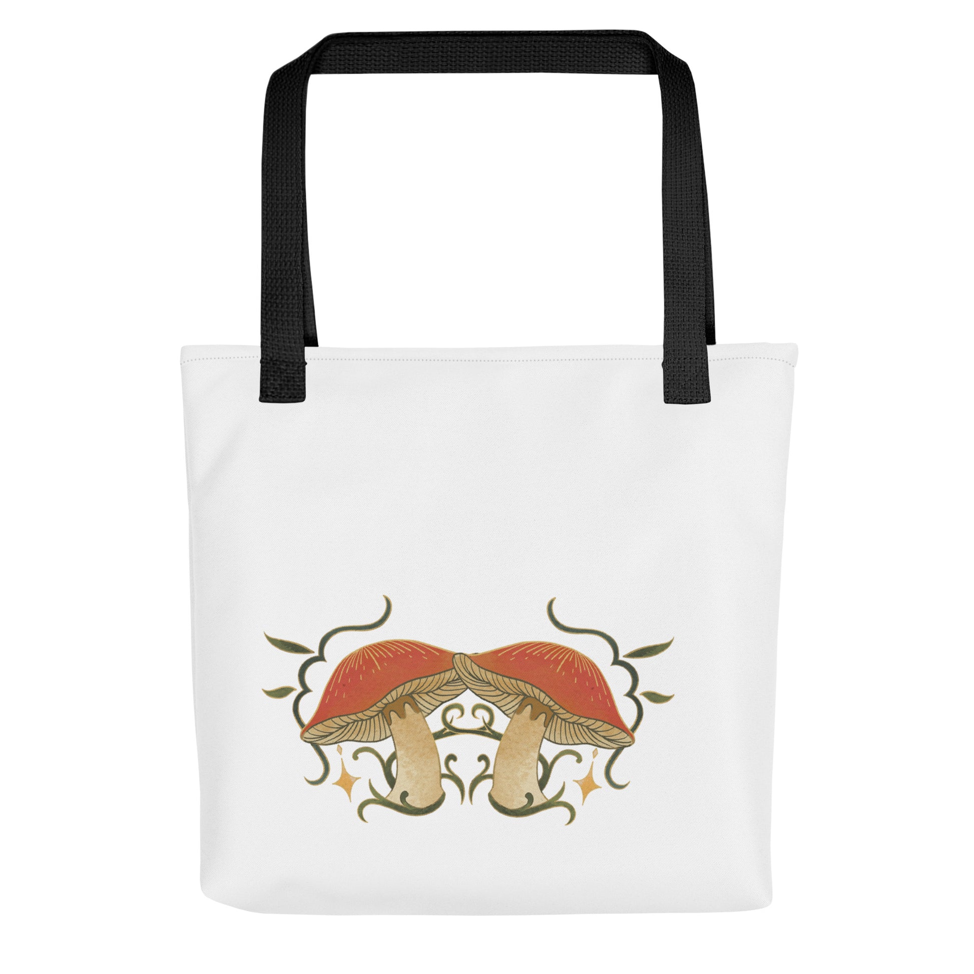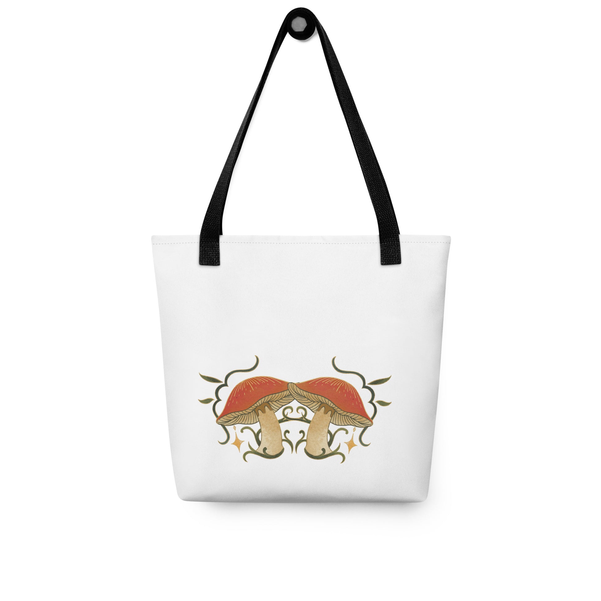 Autumn Mushrooms White Tote Bag Black Handle
