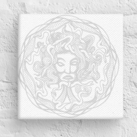 Medusa Circle Emblem Gray Design Mini Square Canvas Print 6" x 6" Desk Decor