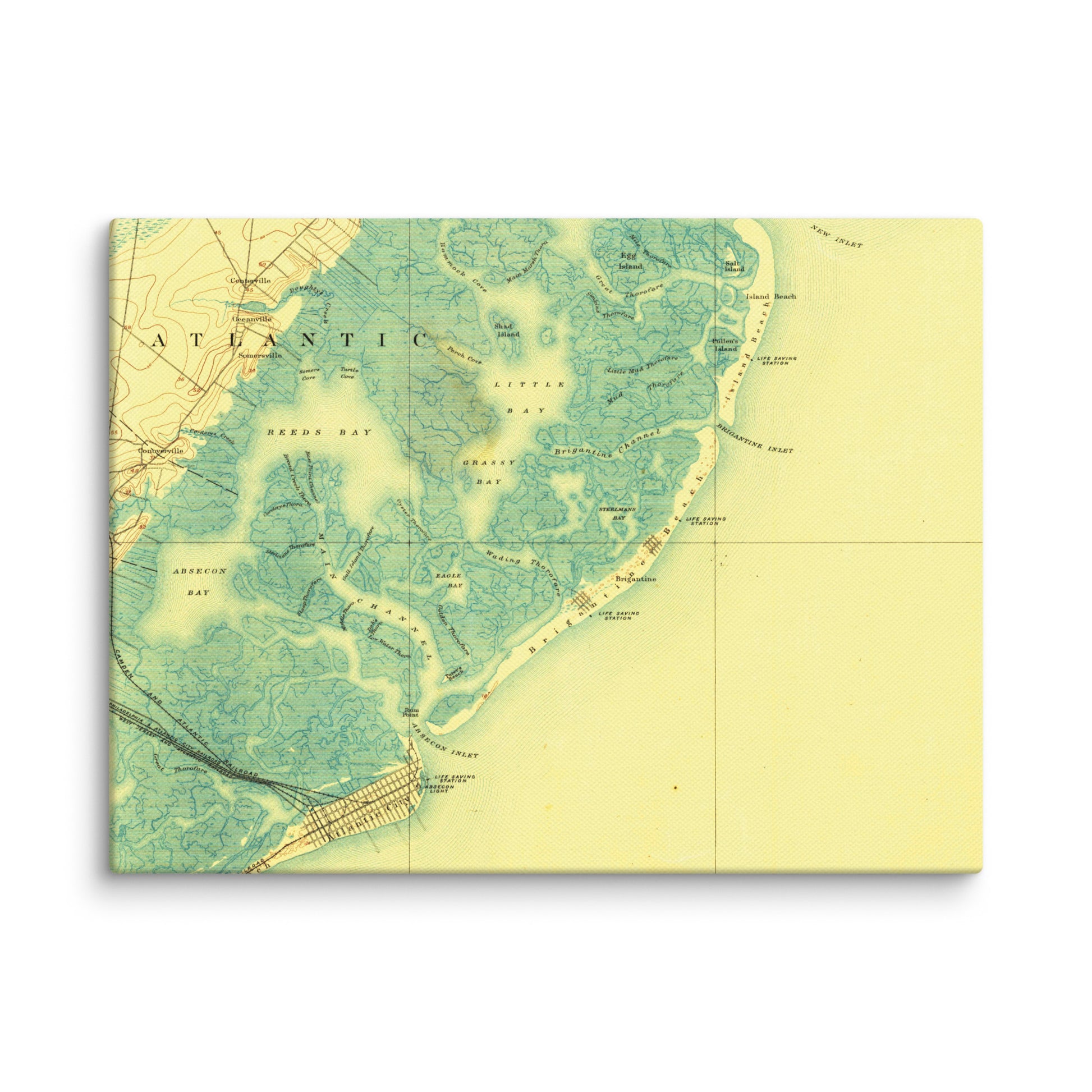 Canvas Print 9" x 12" Atlantic City NJ 1887 Historical Map Horizontal
