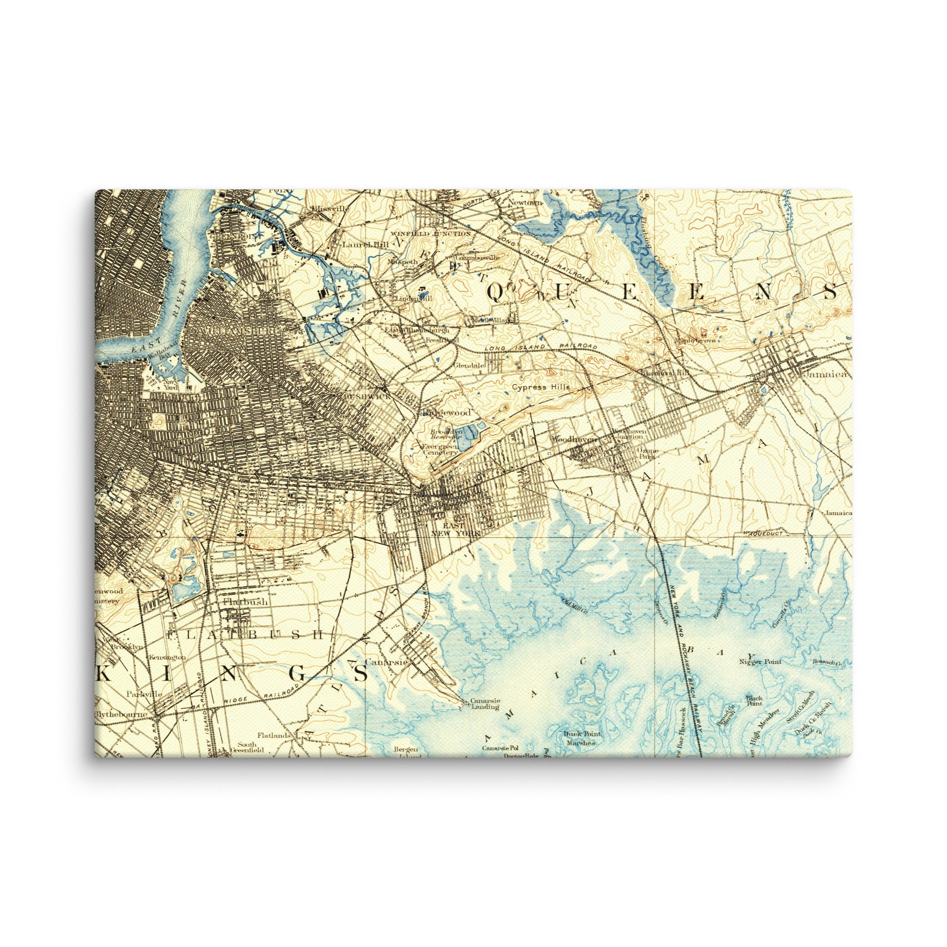 Canvas Print 9" x 12" Brooklyn NY 1889 Historical Map Horizontal