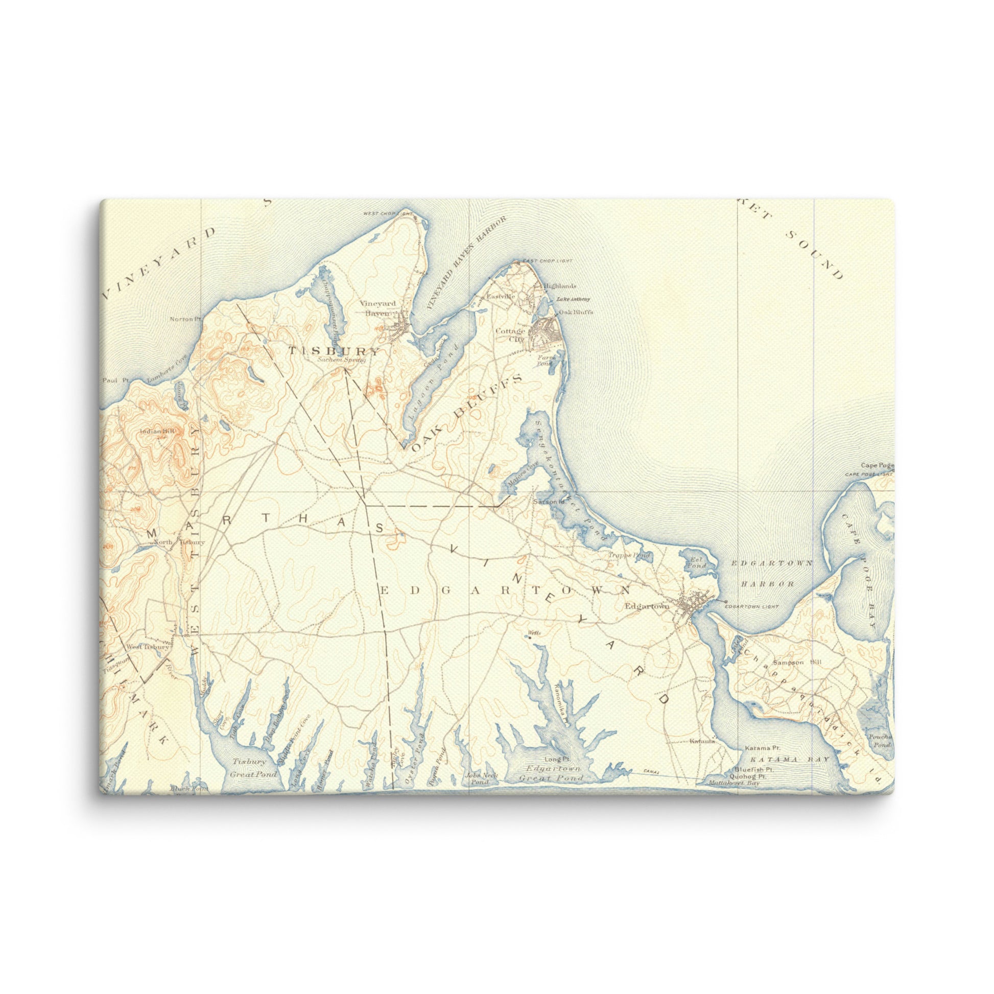 Canvas Print 9" x 12" Marthas Vineyard MA 1887 Historical Map Horizontal
