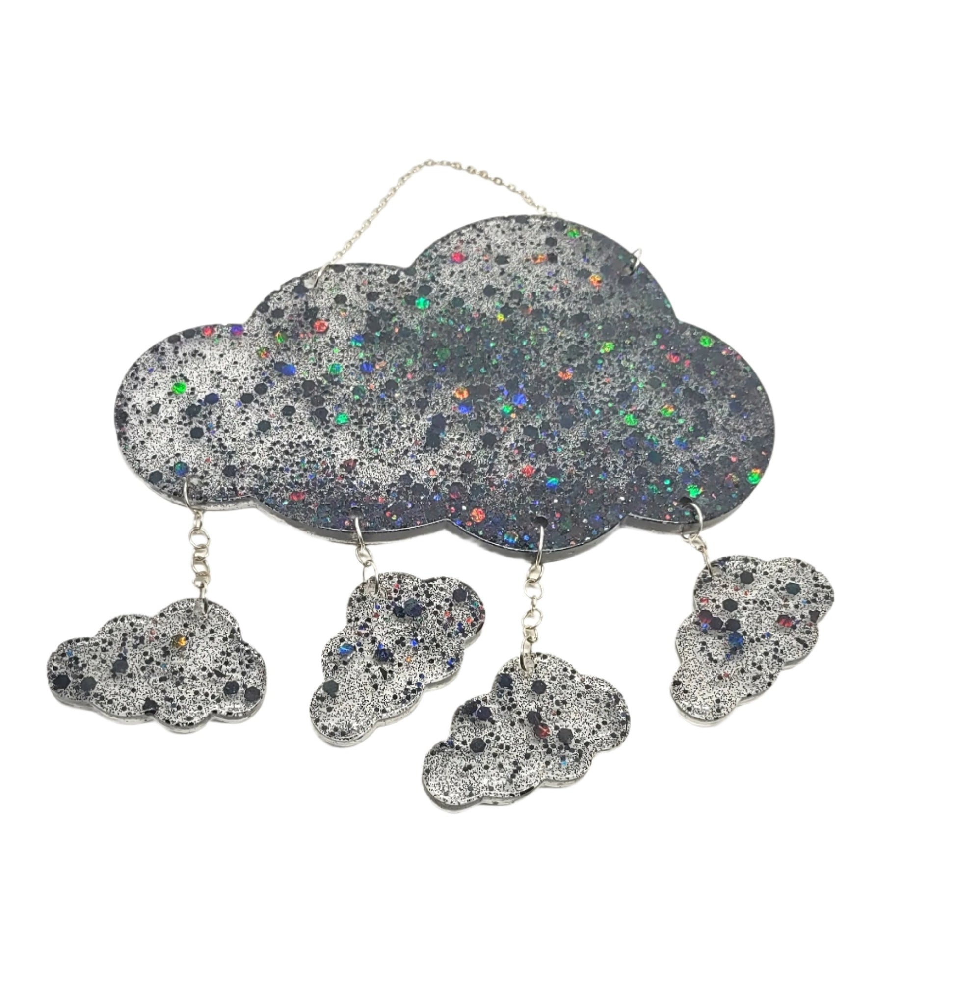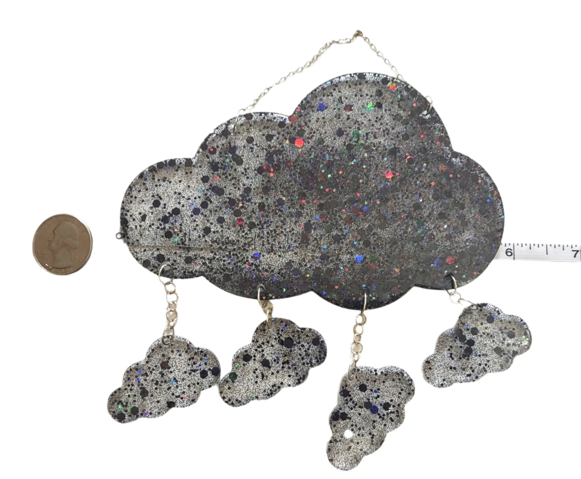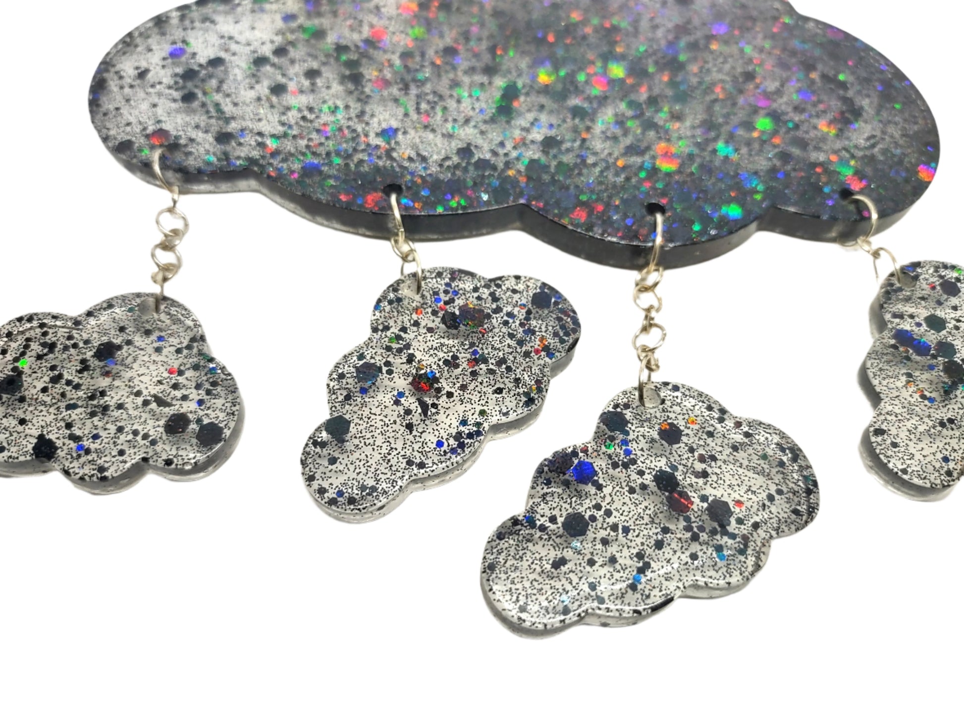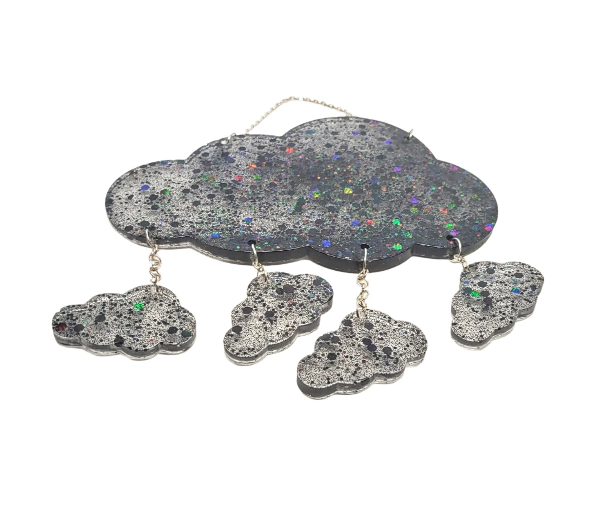 Cloud Window Hang Sun Catcher Midnight Black Holographic Glitter Hand Crafted Resin Decor