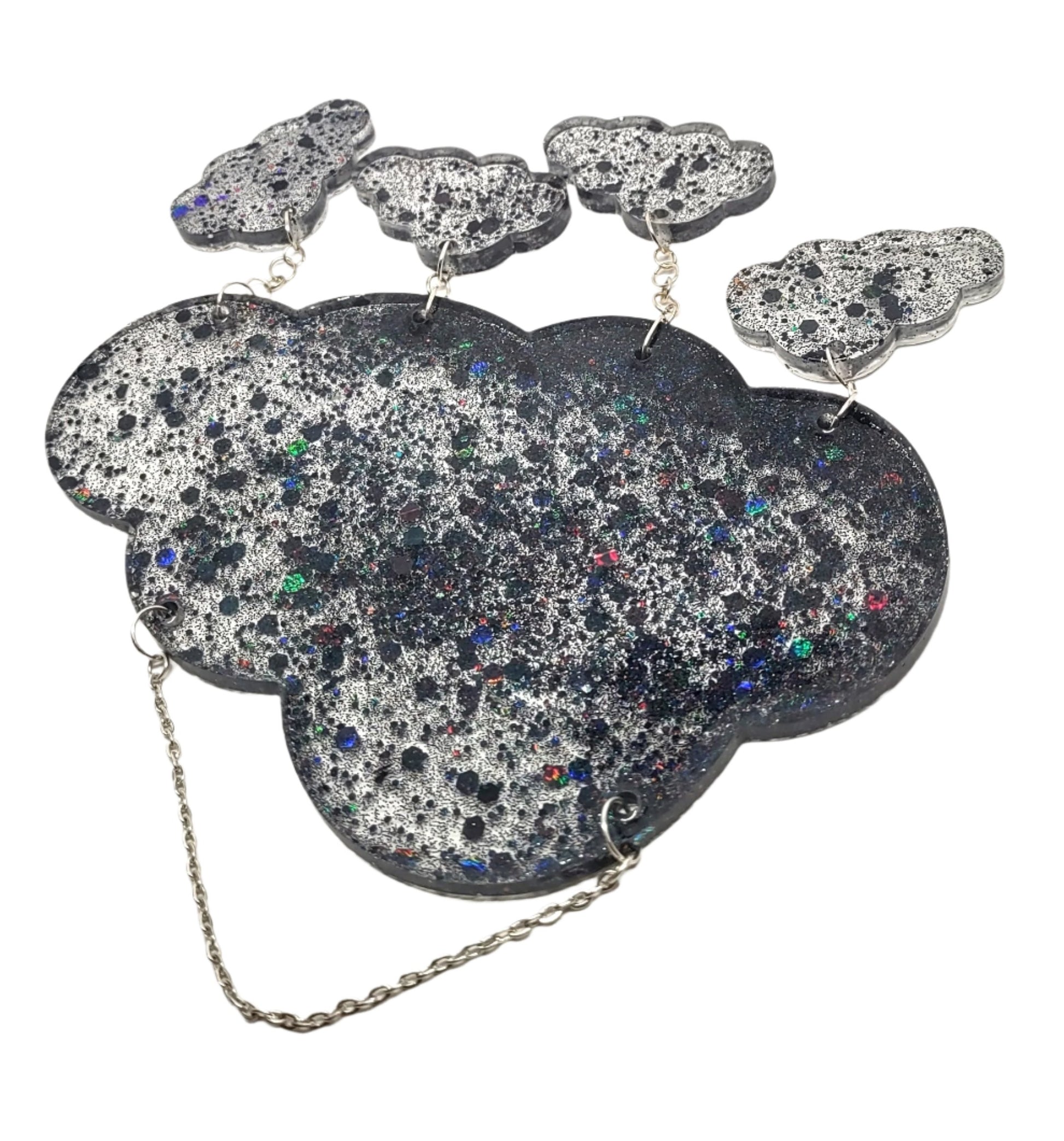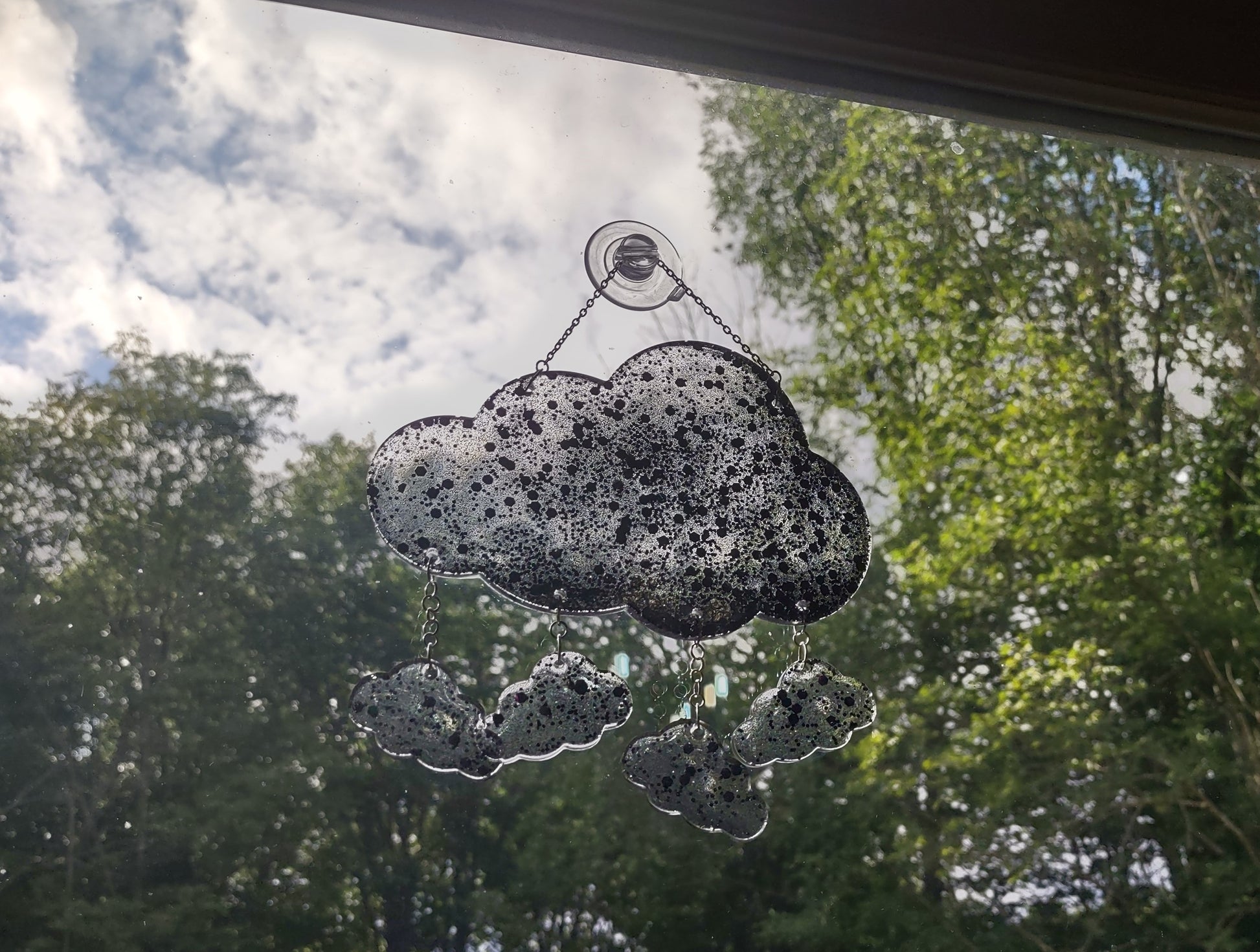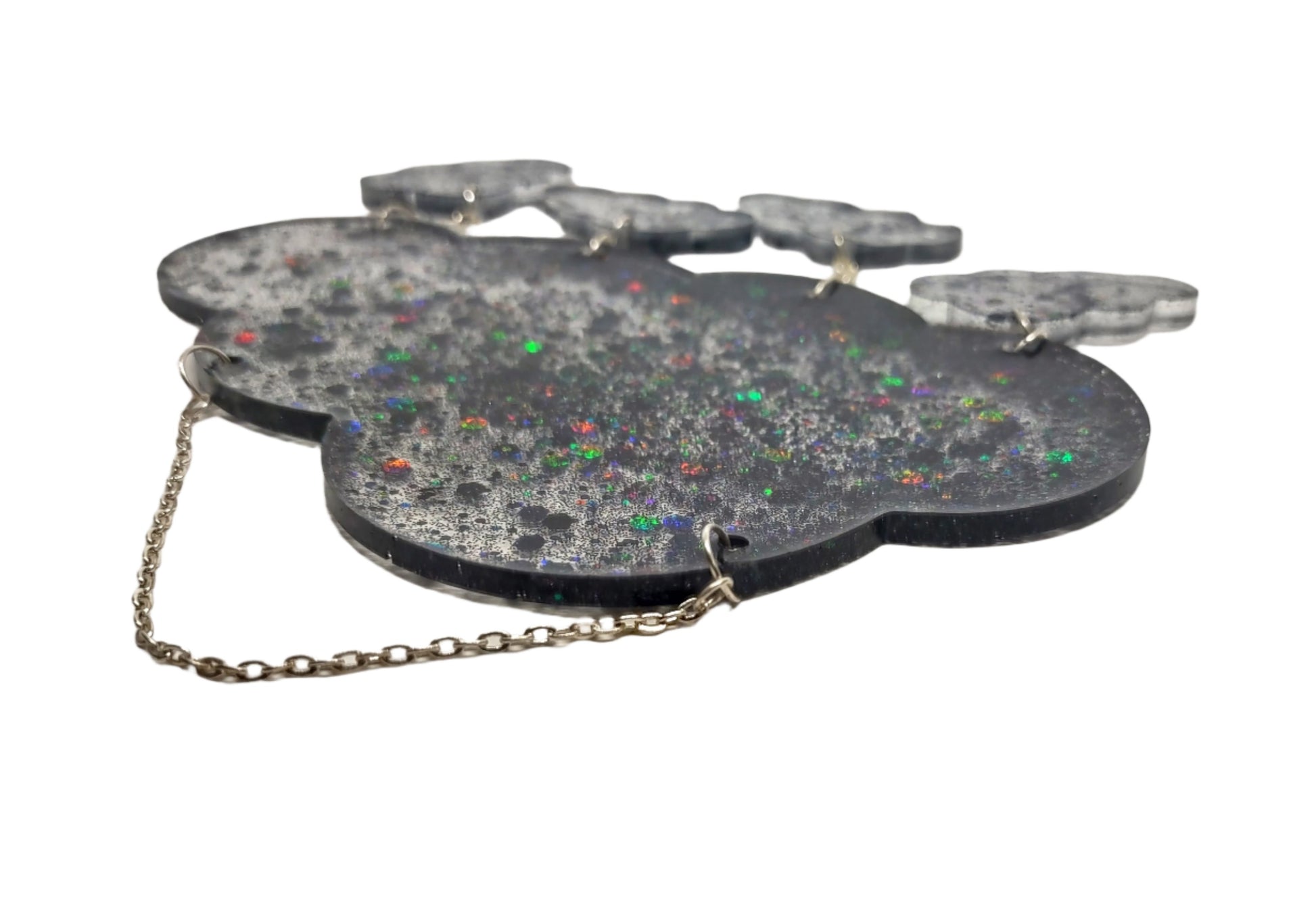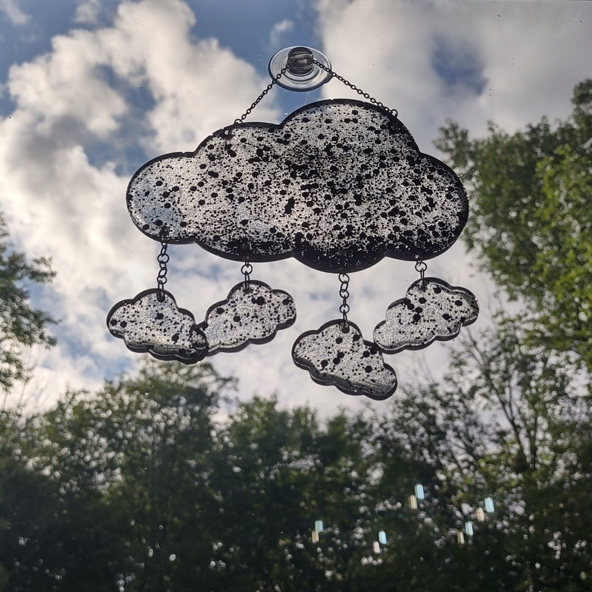 Cloud Window Hang Sun Catcher Midnight Black Holographic Glitter Hand Crafted Resin Decor