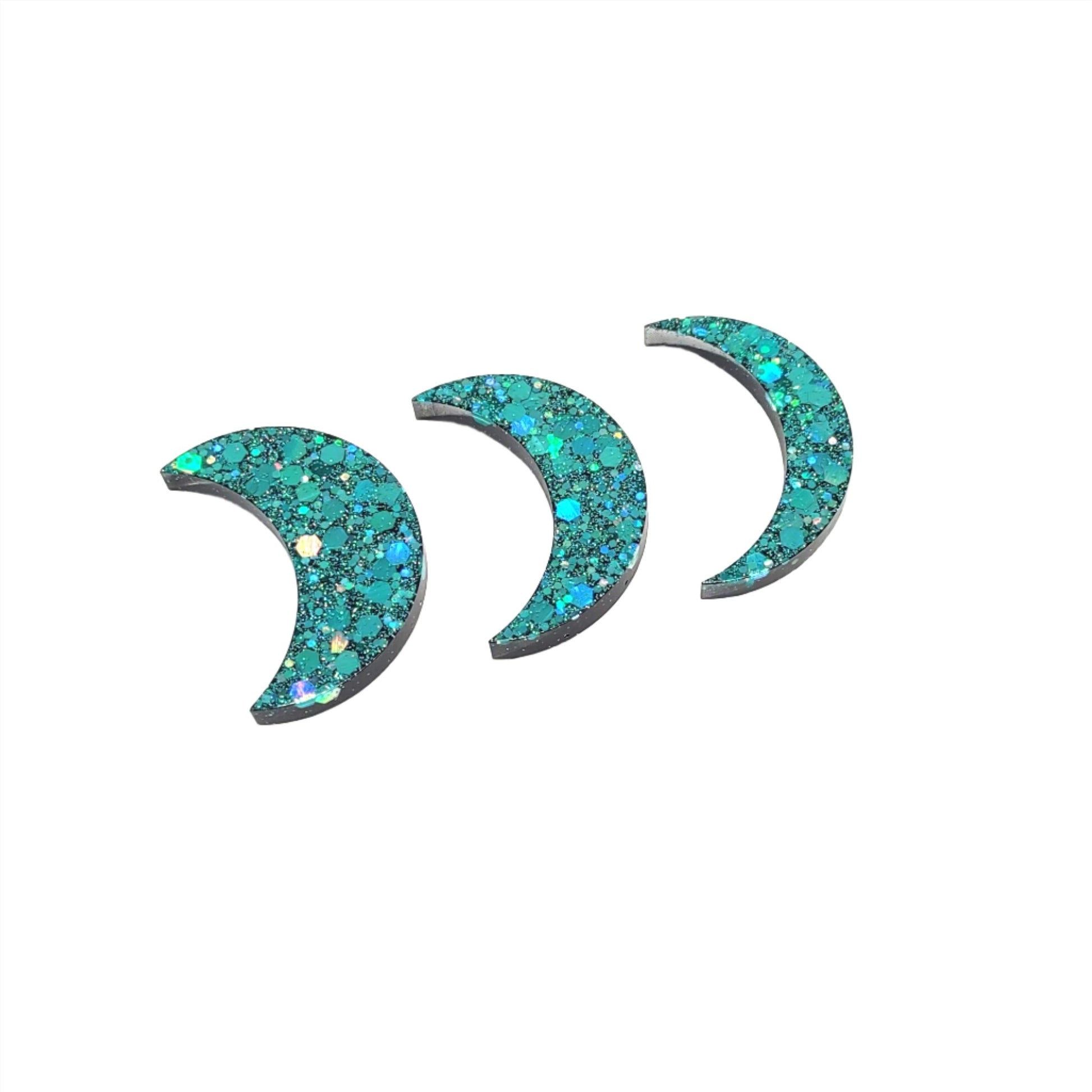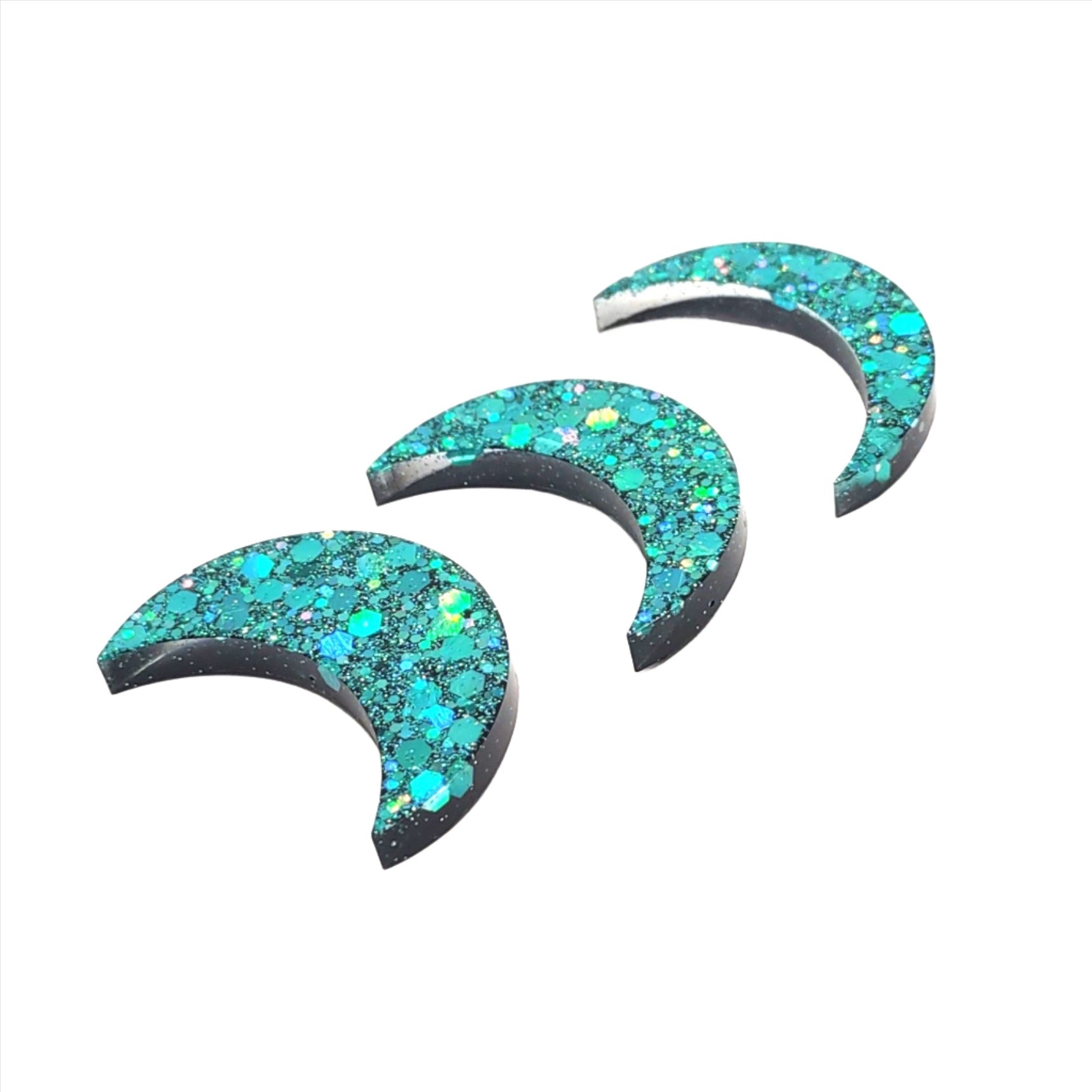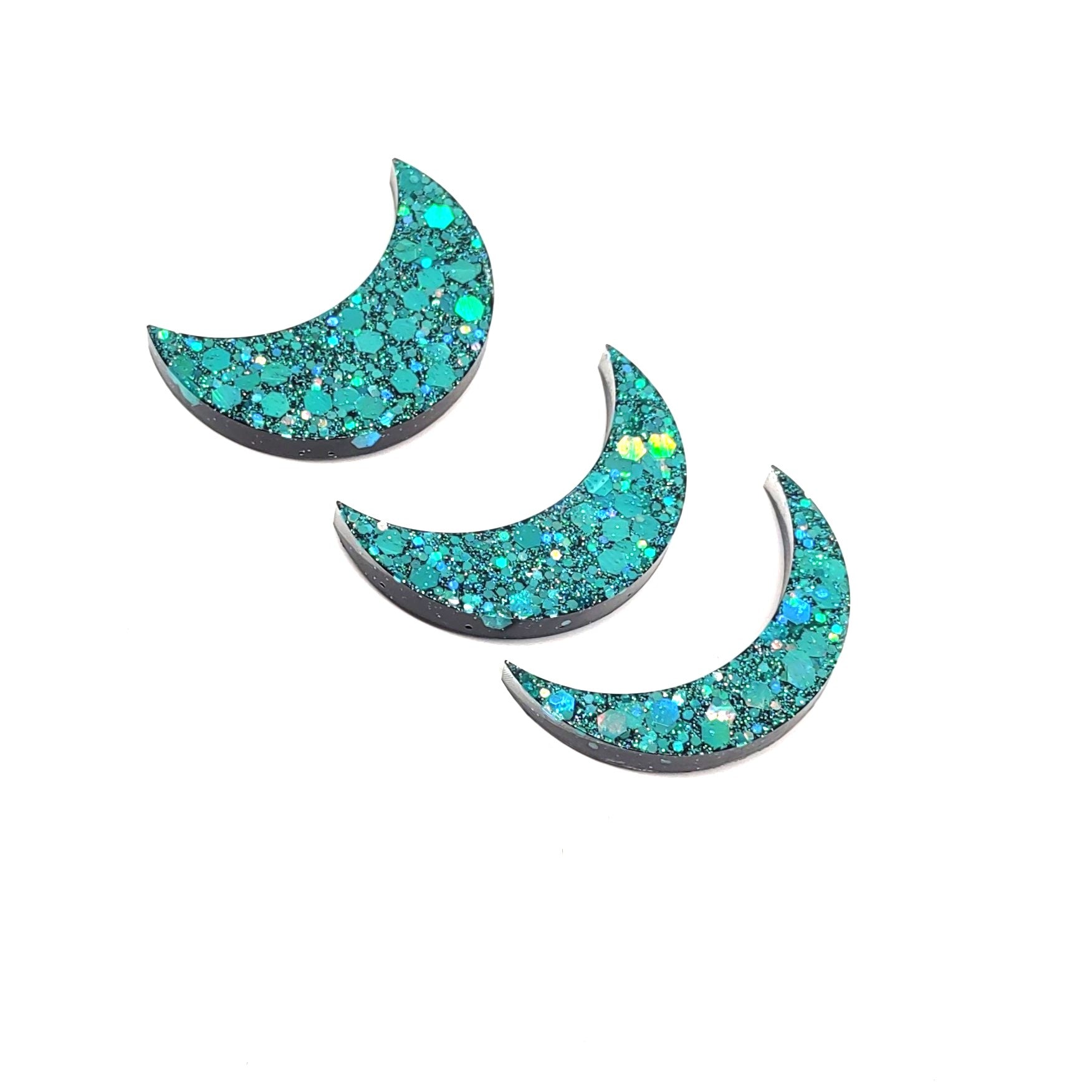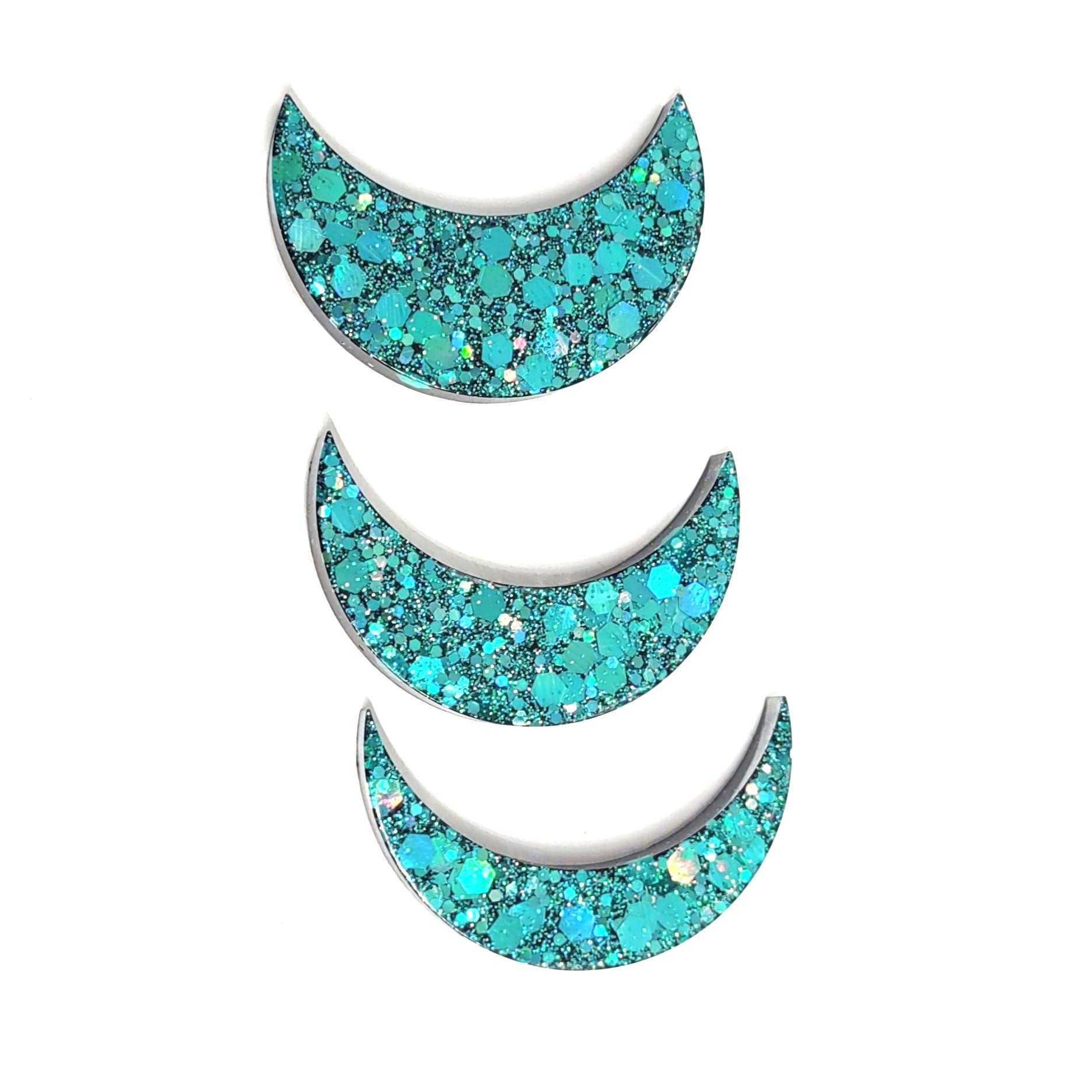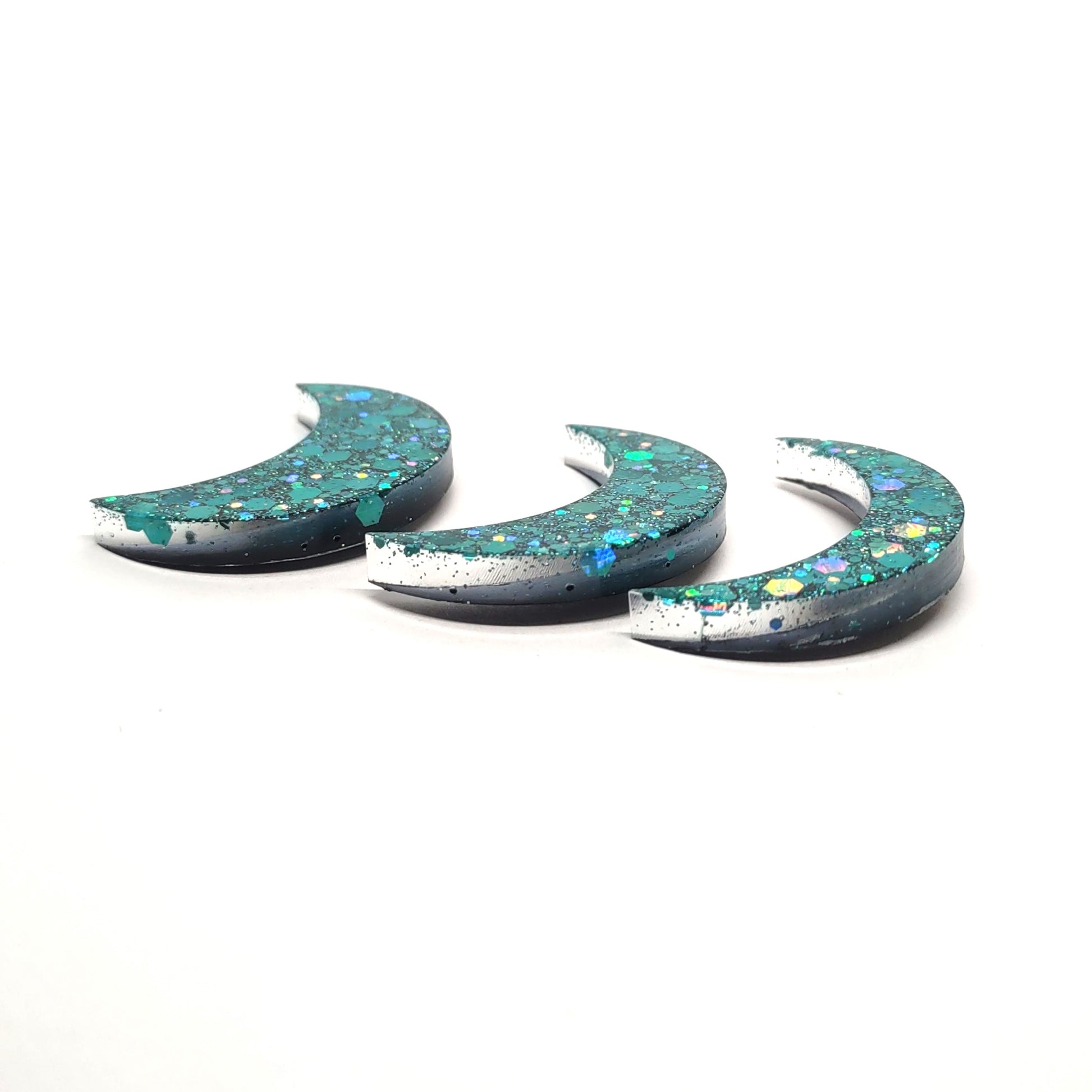 Crescent Moon Magnet Set Blue Holographic Resin Handcrafted Magnet