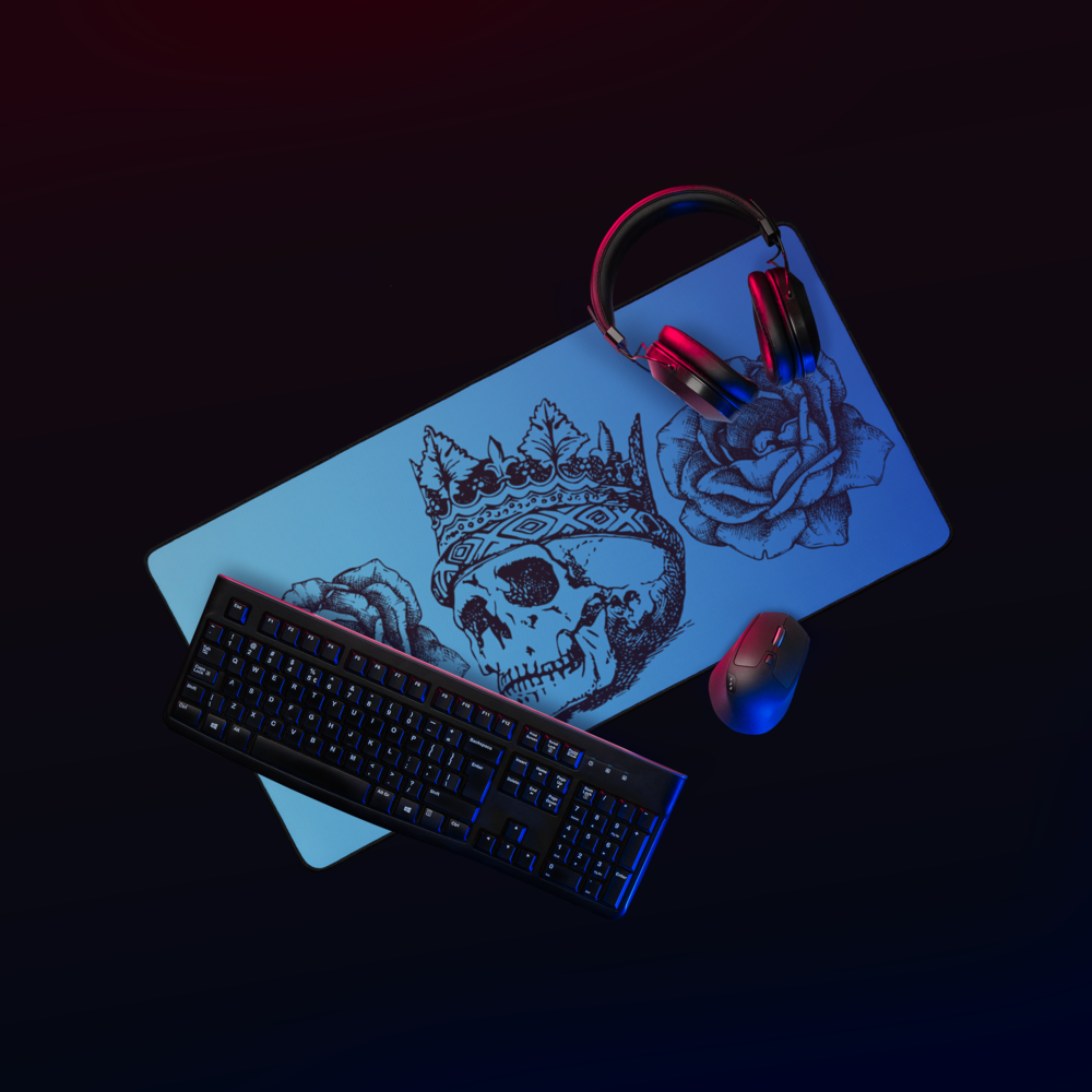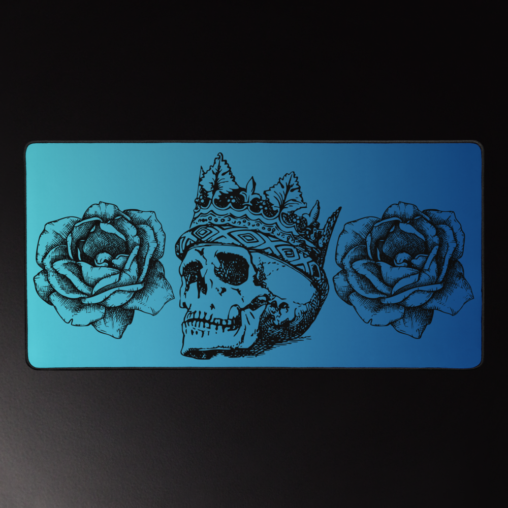 Crowned Skull & Flowers Blue Gradient Desk Mat 16″×32"