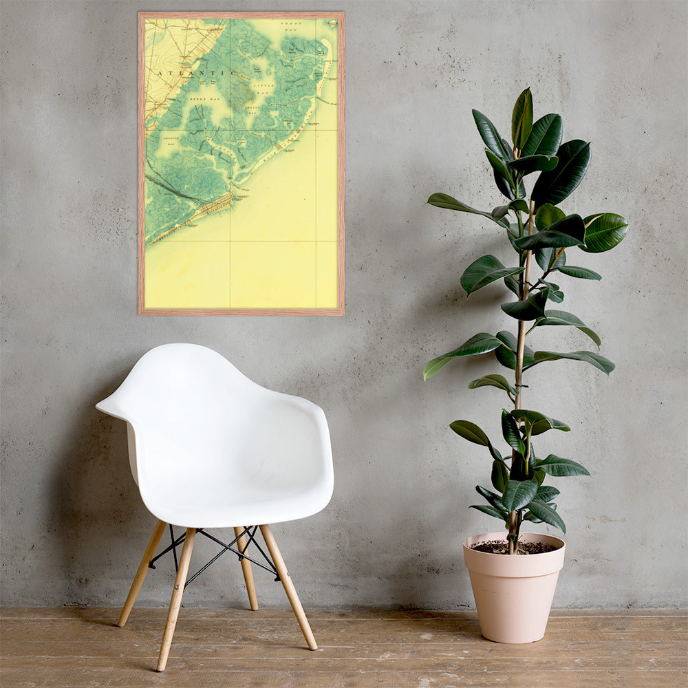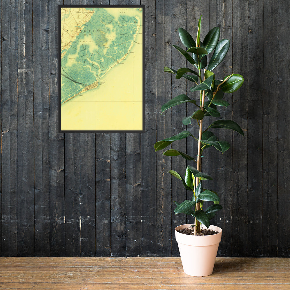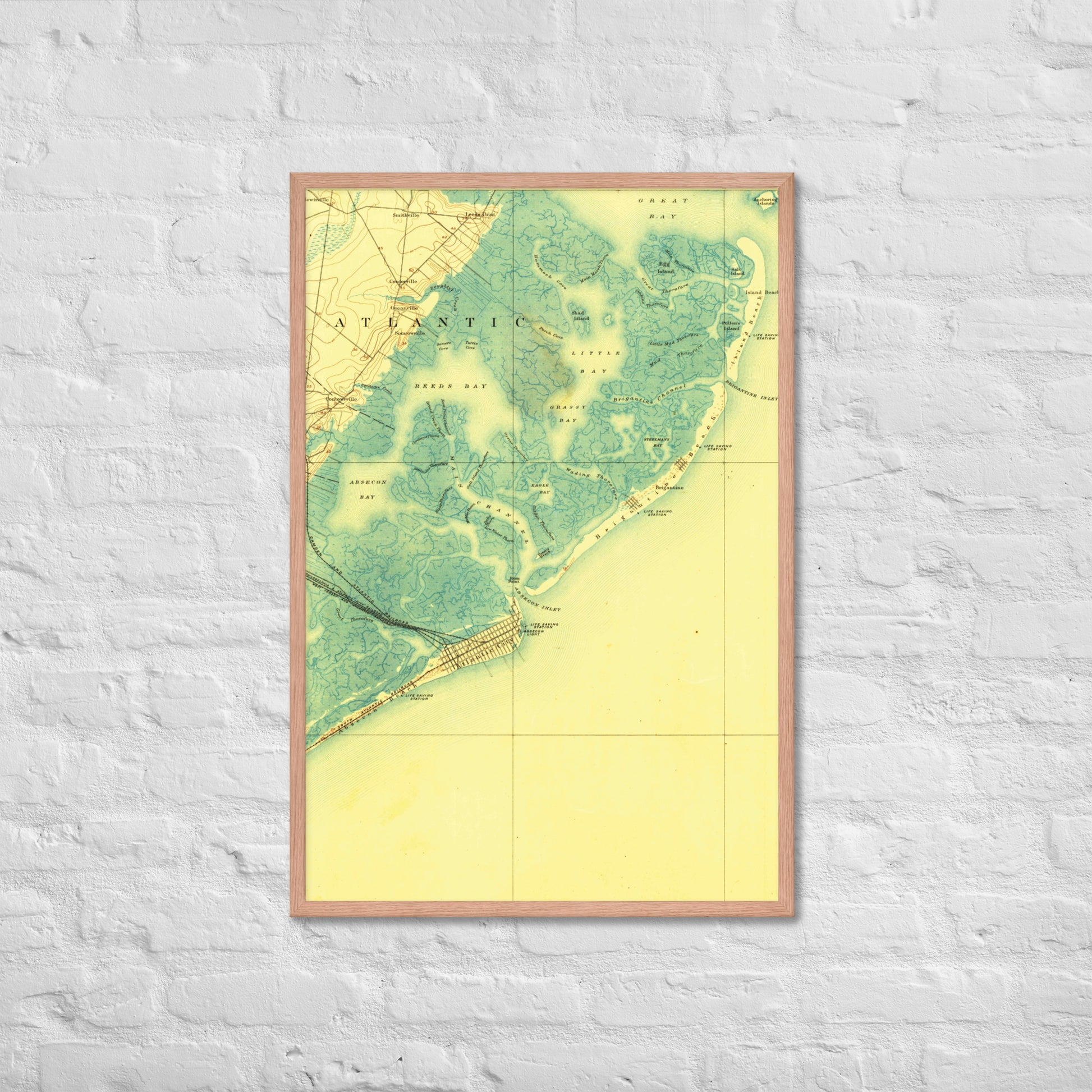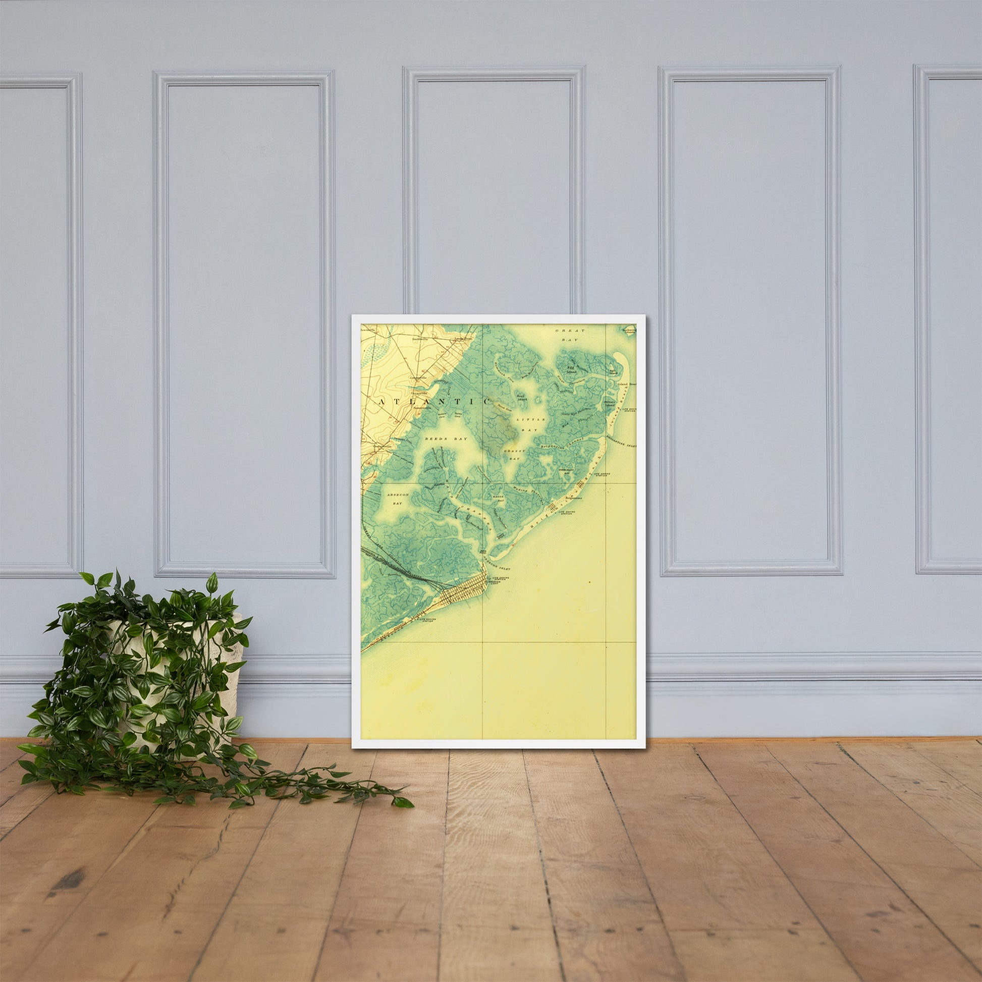 Framed Poster 24″×36″ Atlantic City NJ 1887 Historical Map Black, Red Oak or White Frame