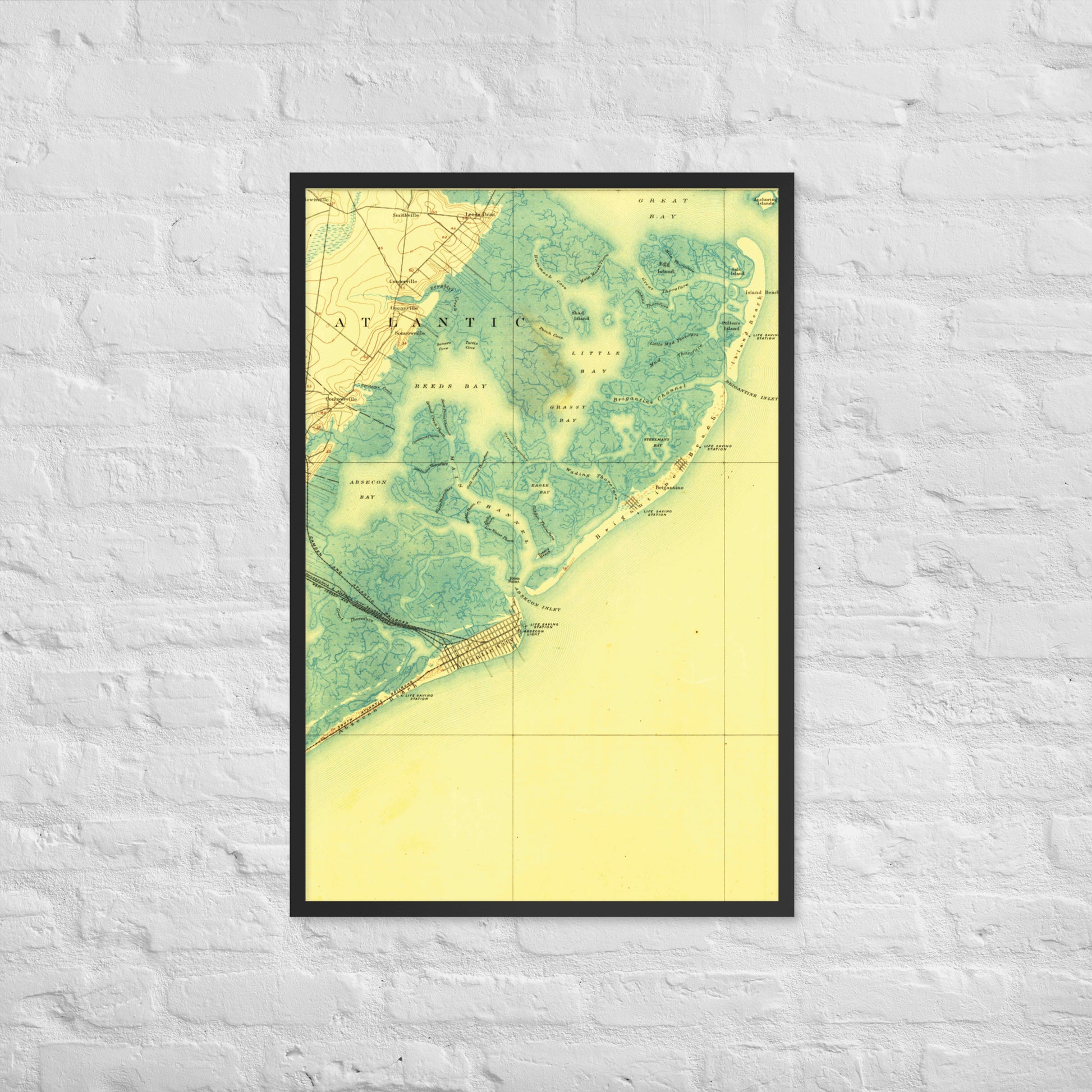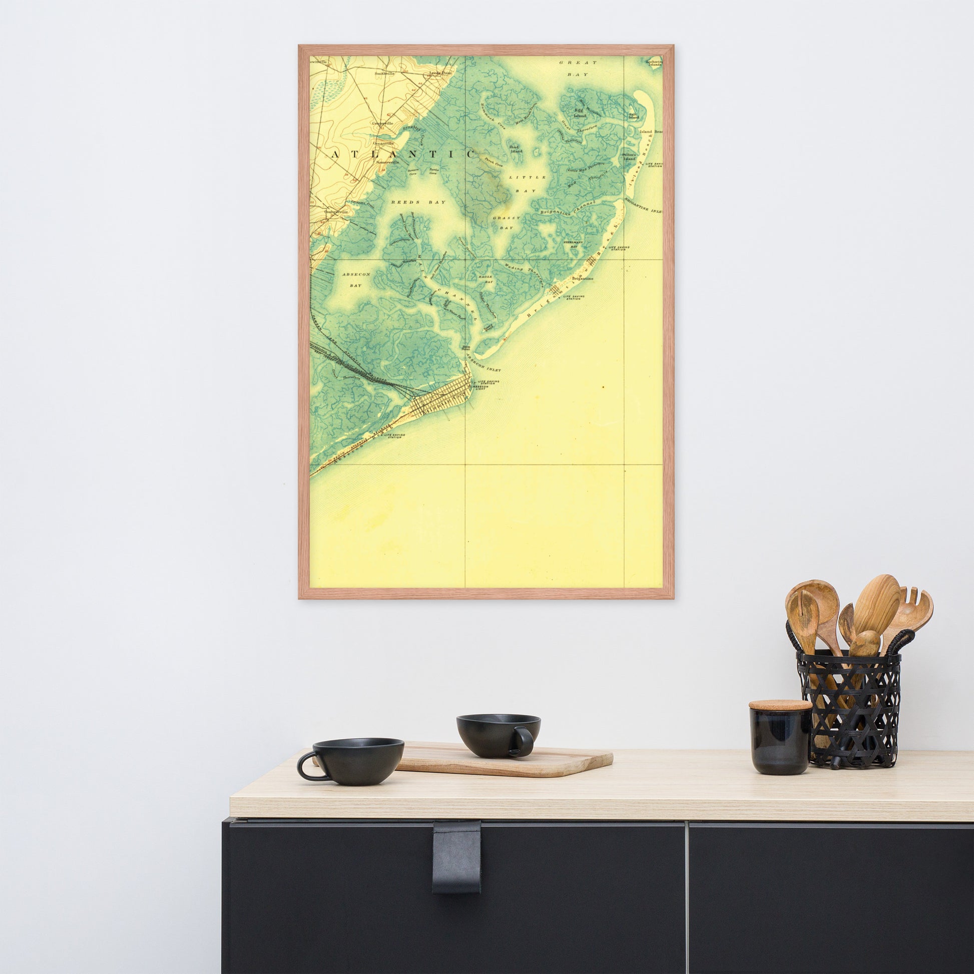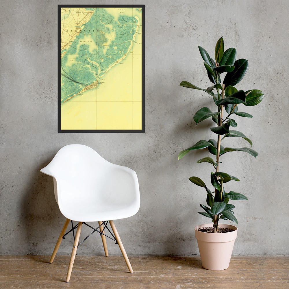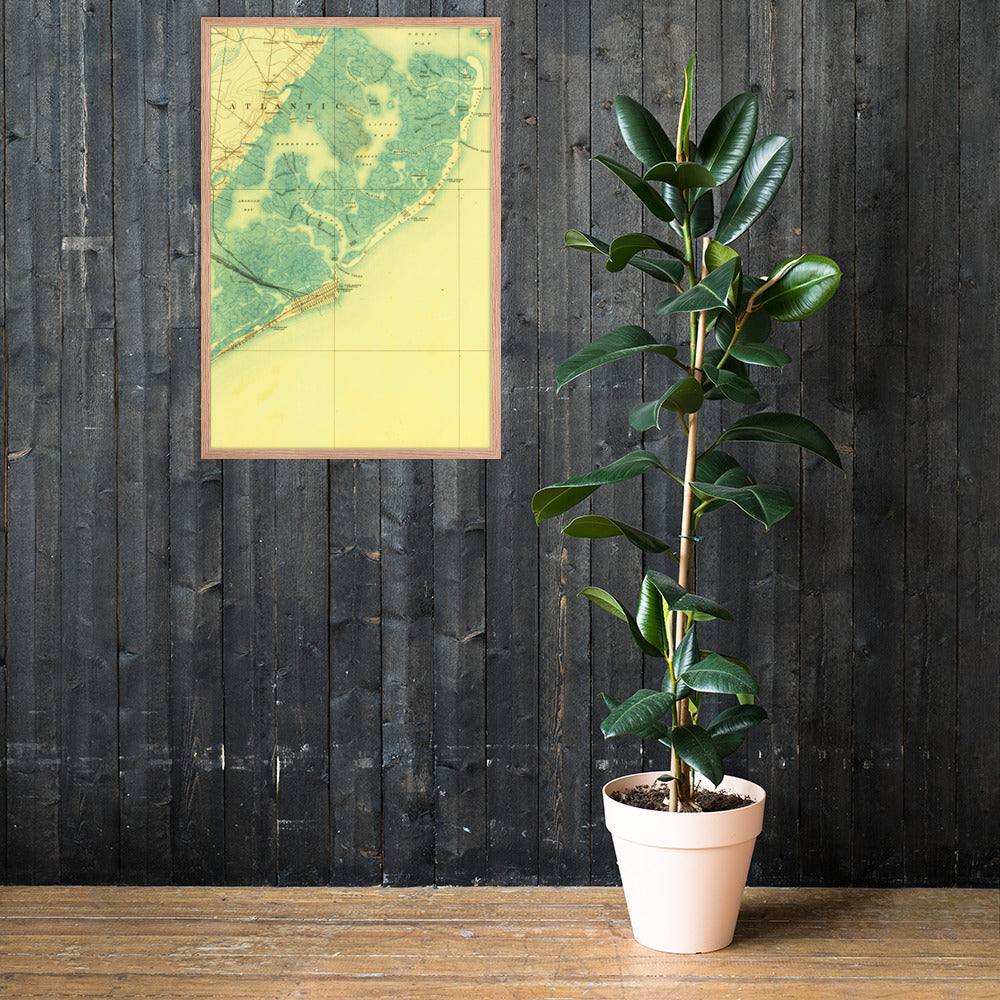 Framed Poster 24″×36″ Atlantic City NJ 1887 Historical Map Black, Red Oak or White Frame