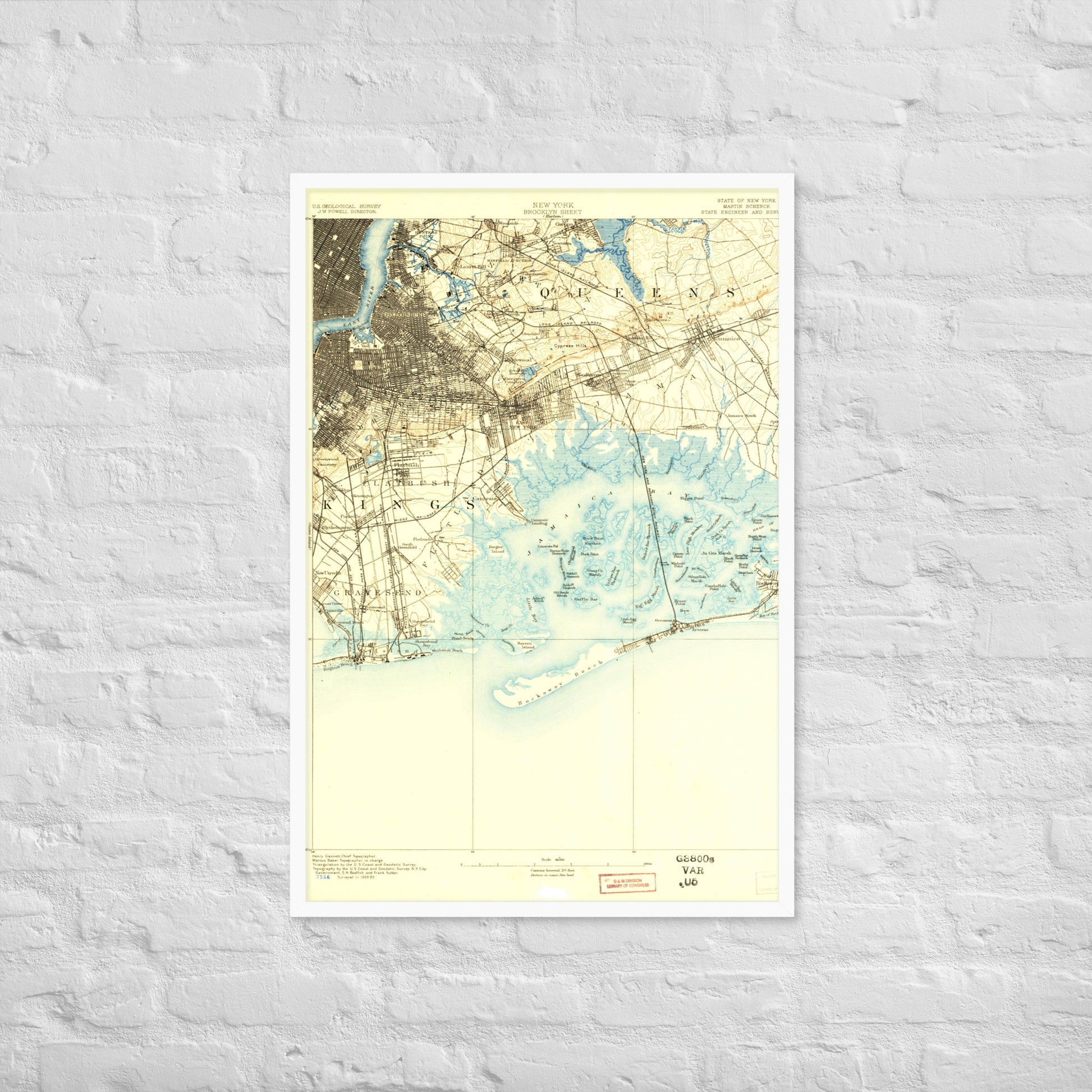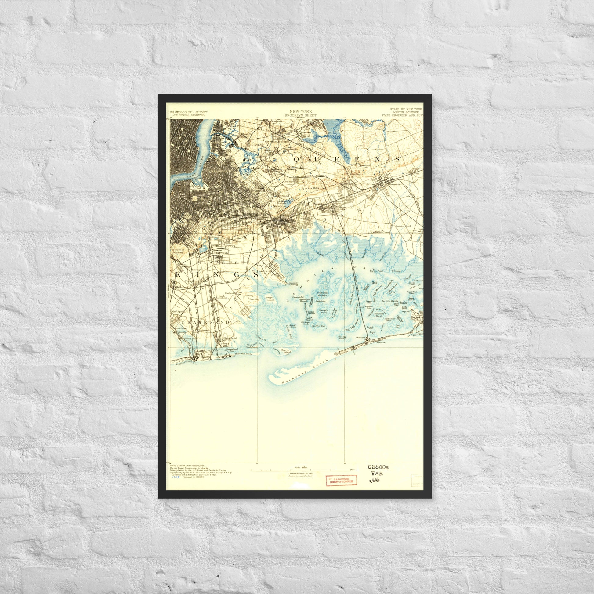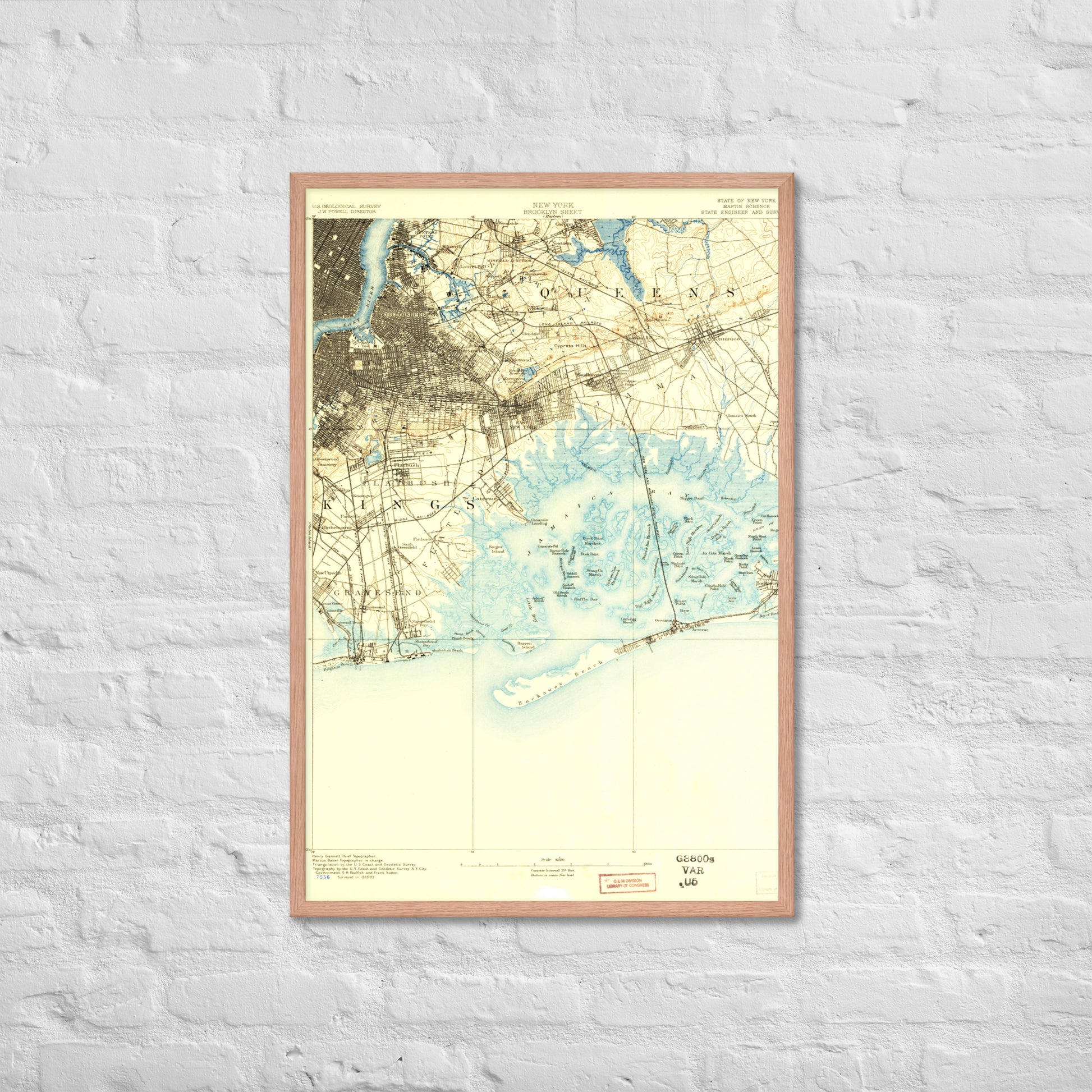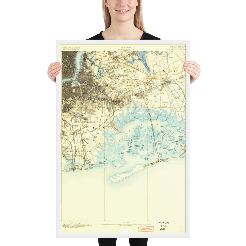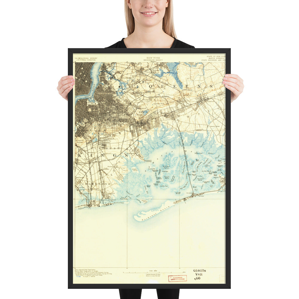 Framed Poster 24″×36″ Brooklyn NY 1889 Historical Map Black, Red Oak or White Frame