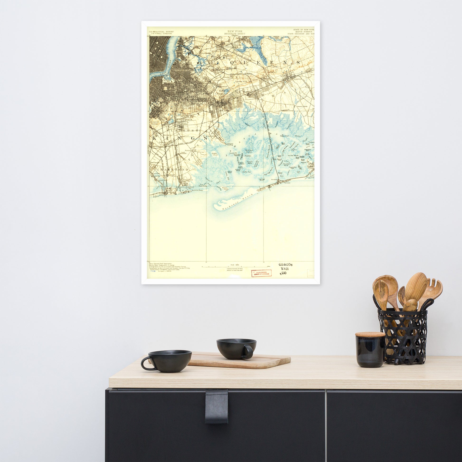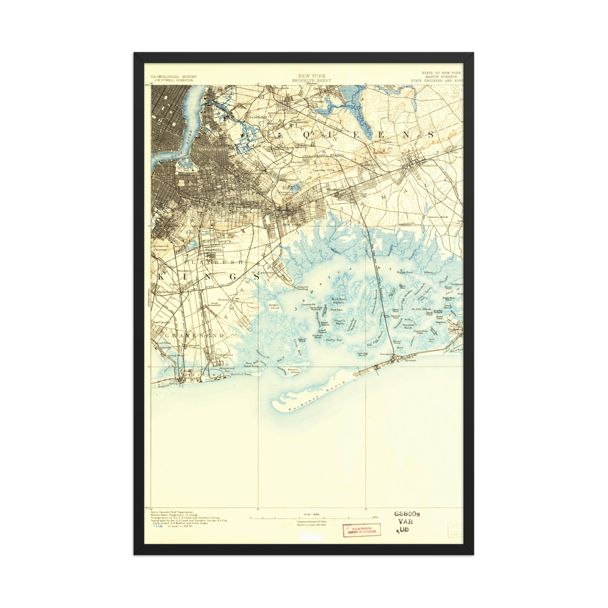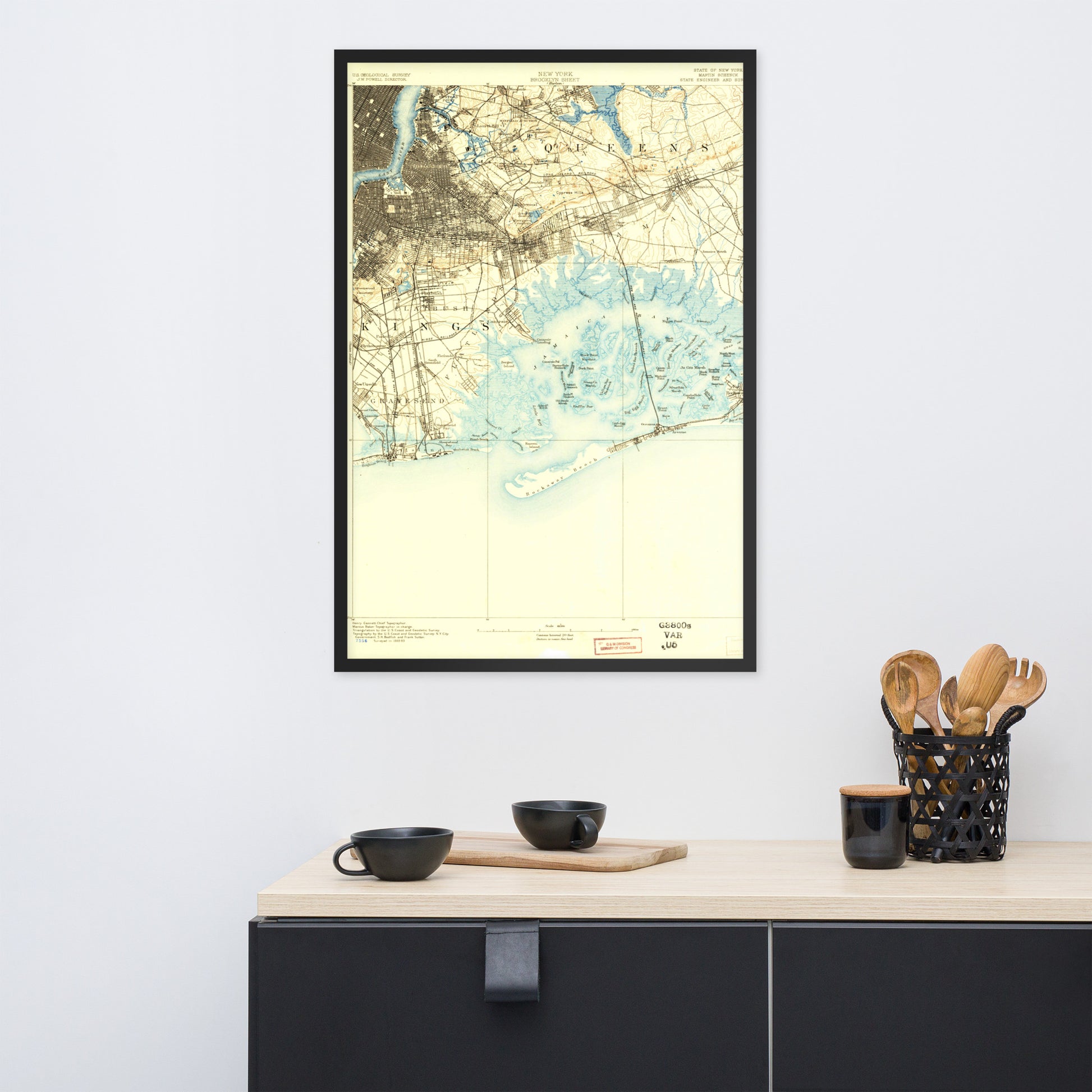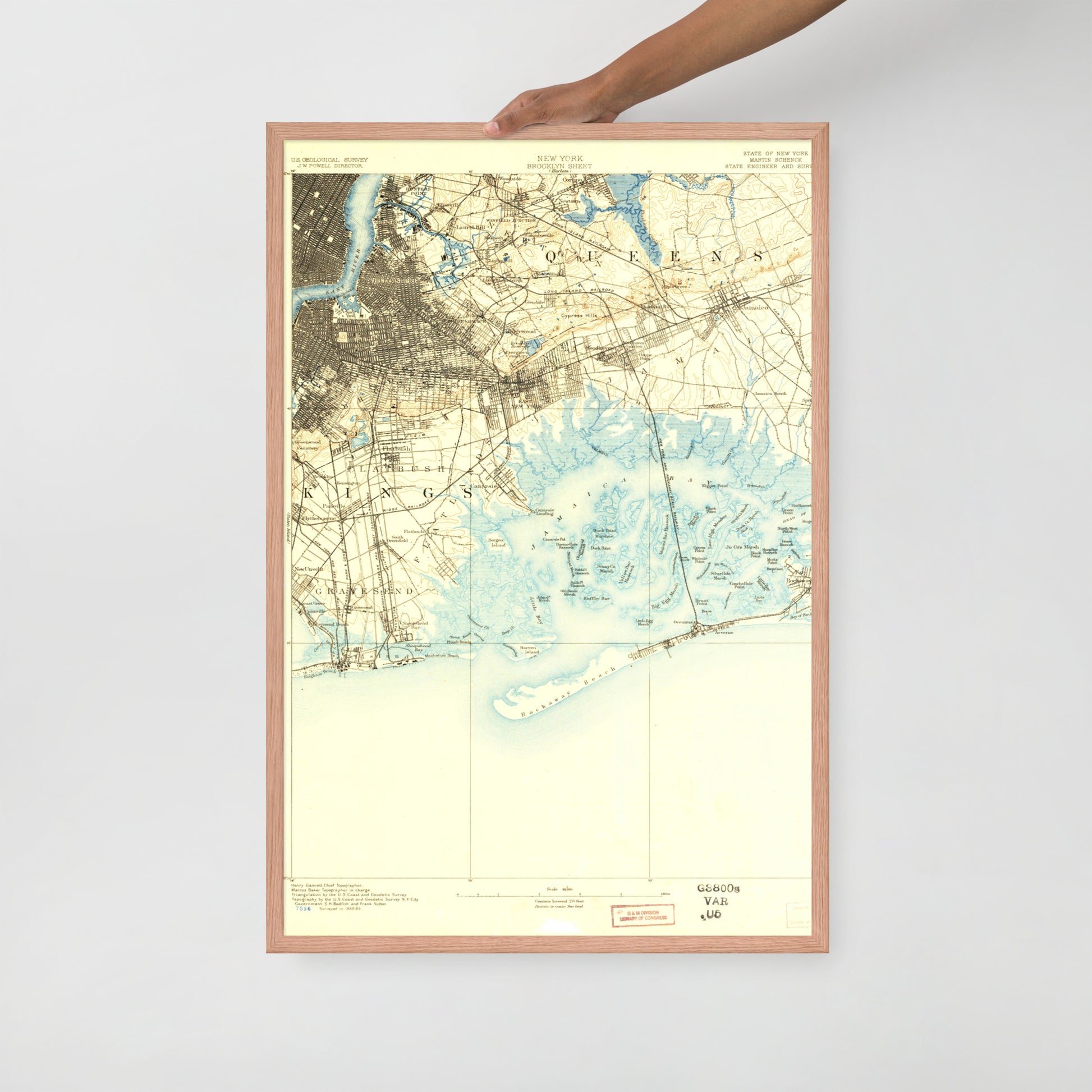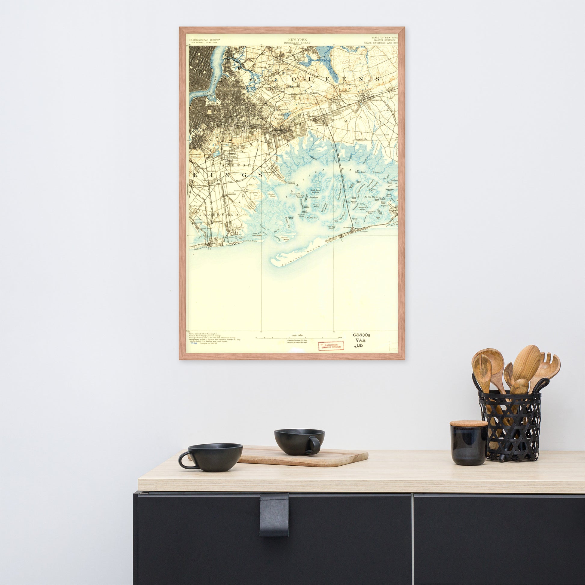 Framed Poster 24″×36″ Brooklyn NY 1889 Historical Map Black, Red Oak or White Frame