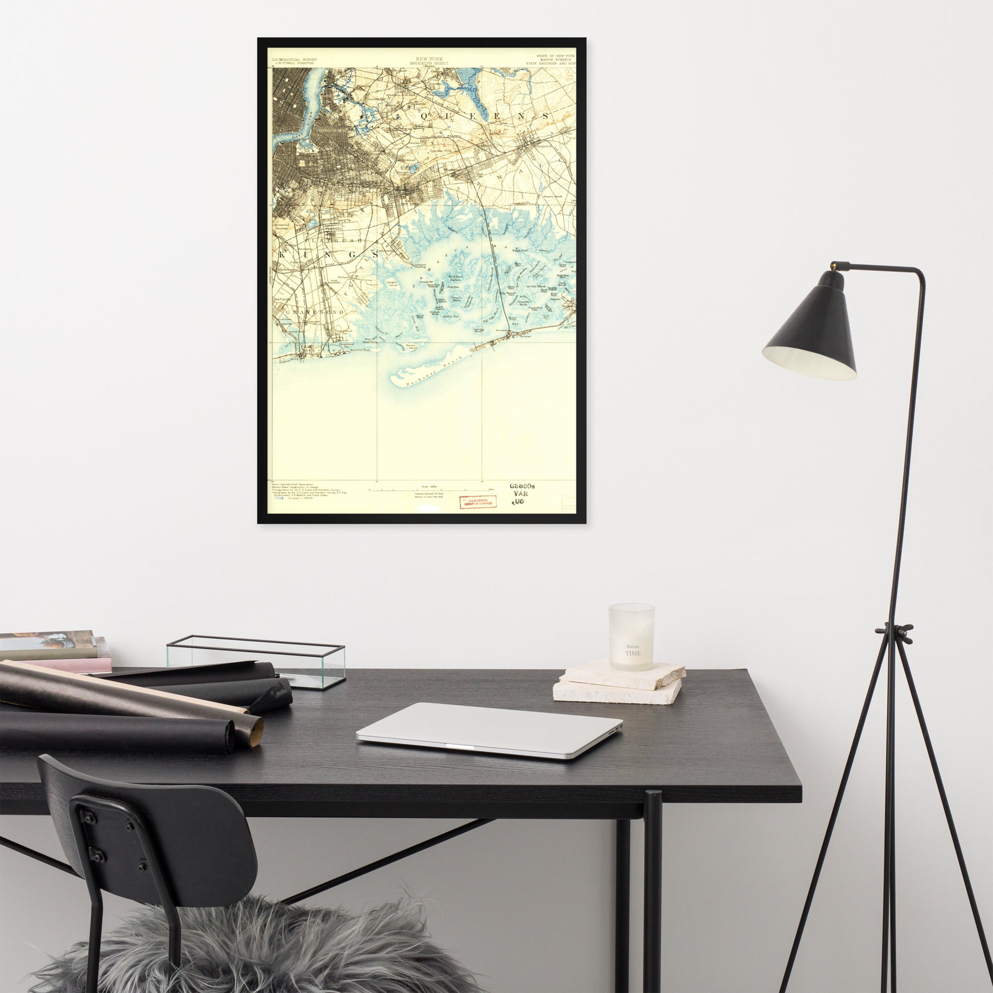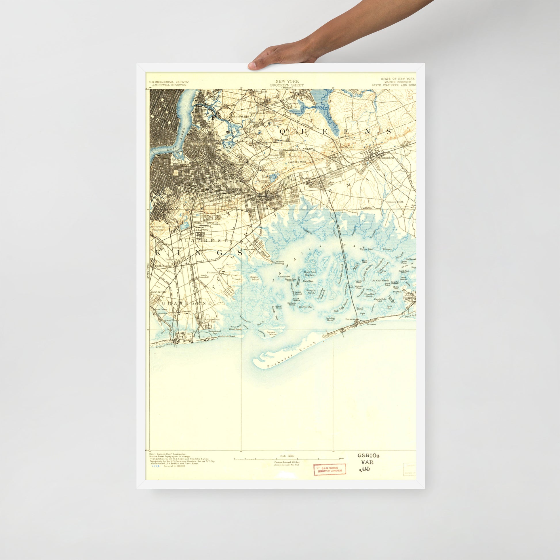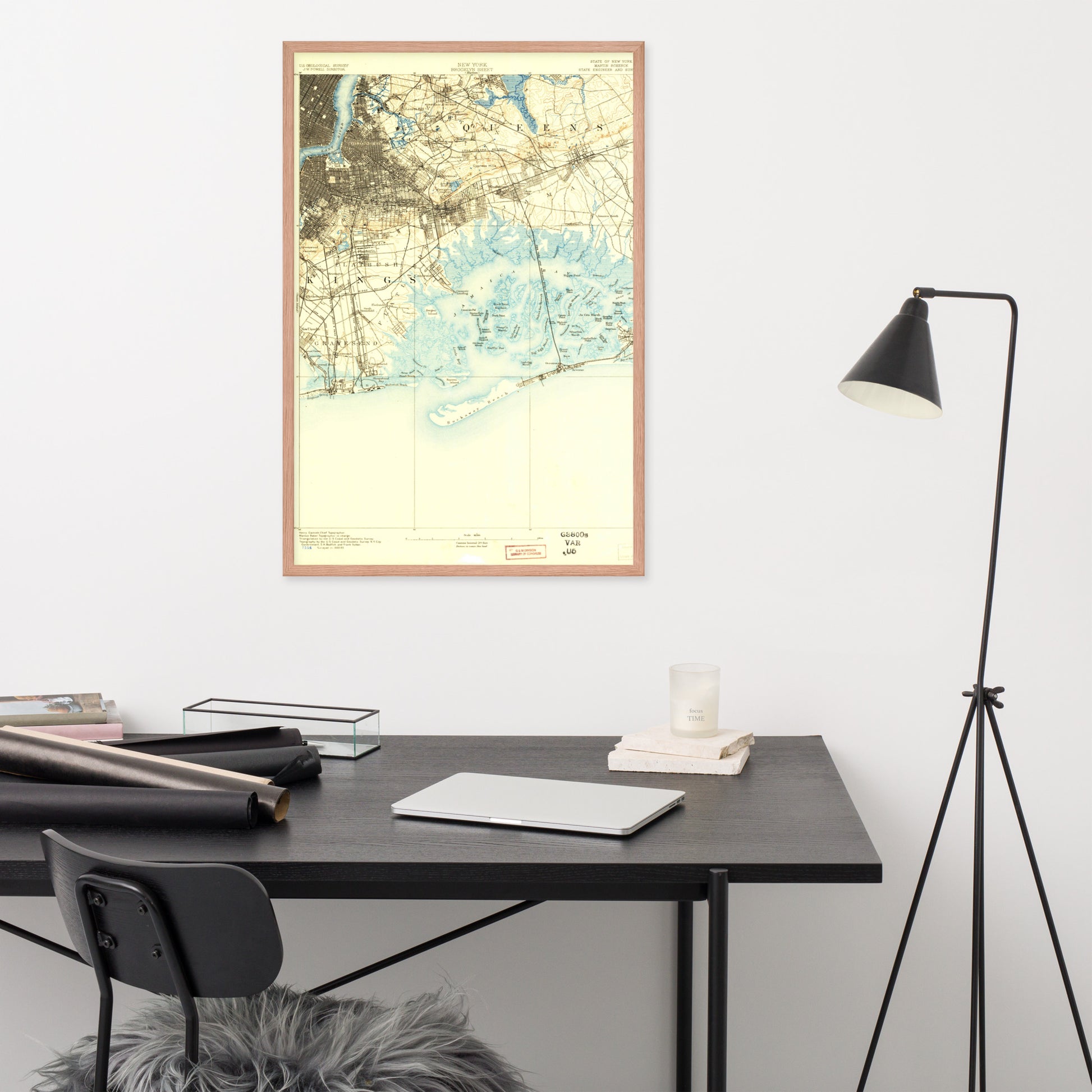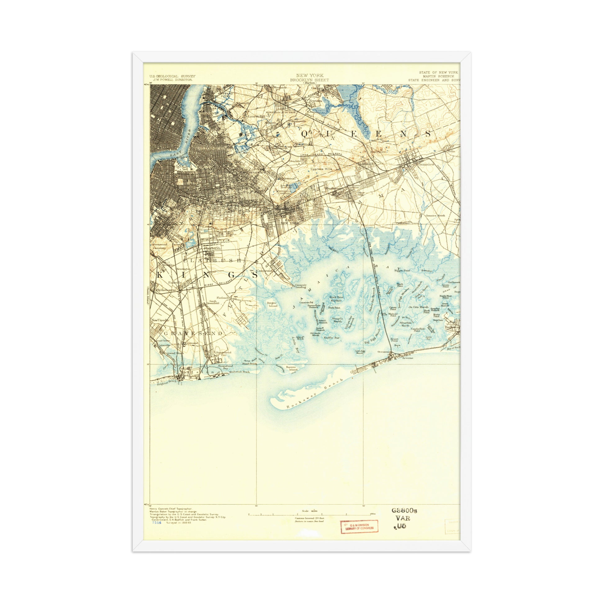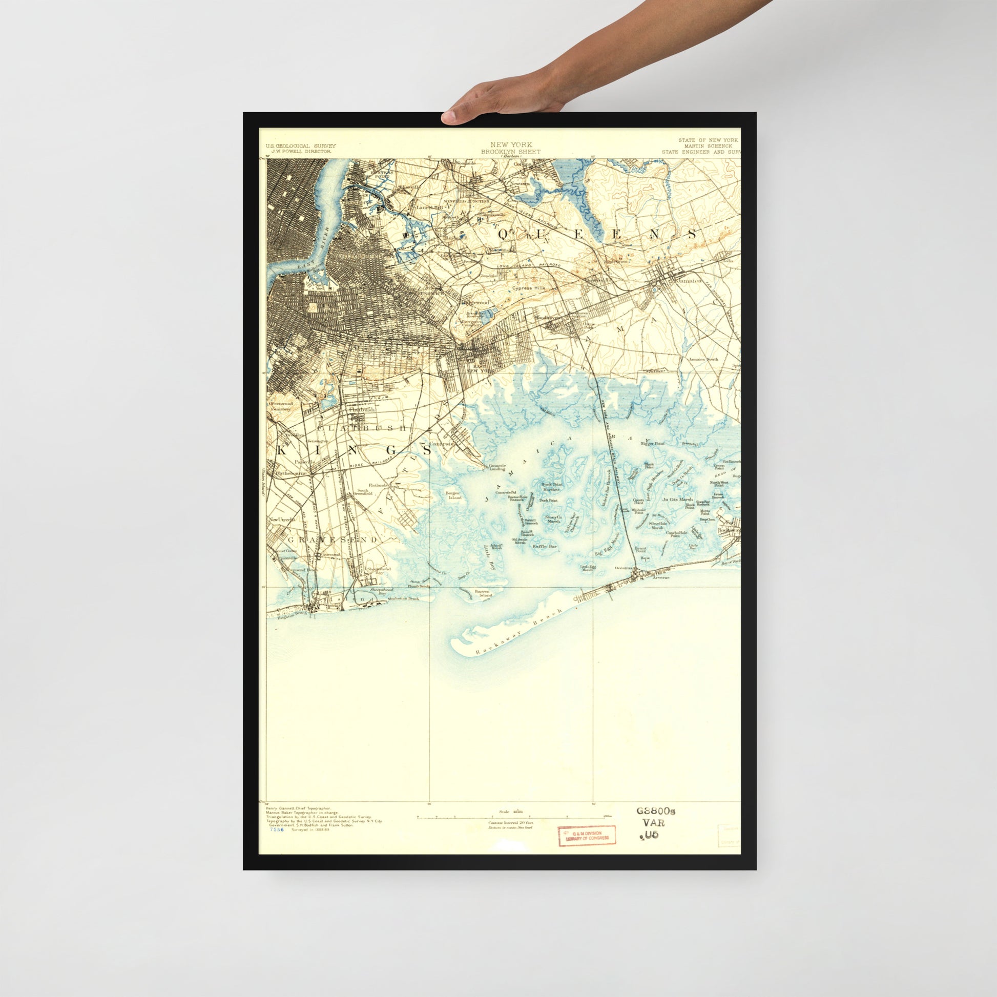 Framed Poster 24″×36″ Brooklyn NY 1889 Historical Map Black, Red Oak or White Frame