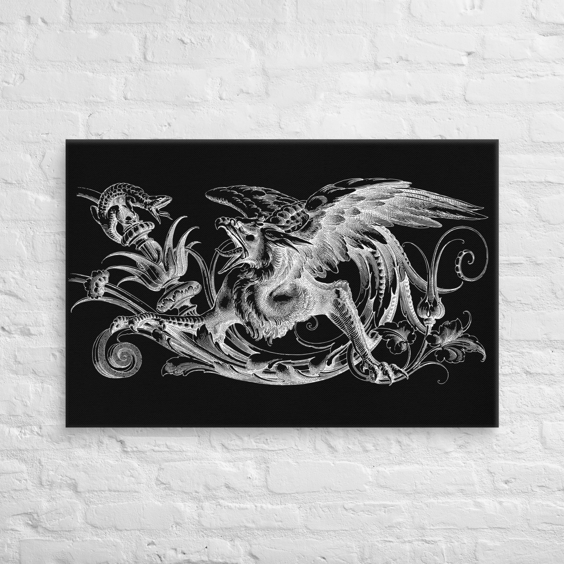 Gryphon Design Black Canvas Print 2'x 3' (24"x36") Wall Decor
