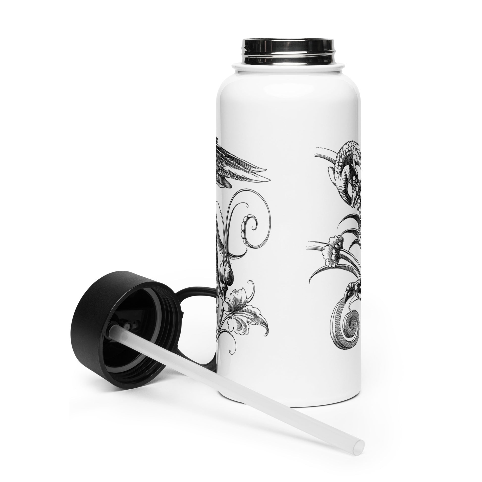 Gryphon Black Design White Stainless Steel Water Bottle with a Straw Lid 32 oz