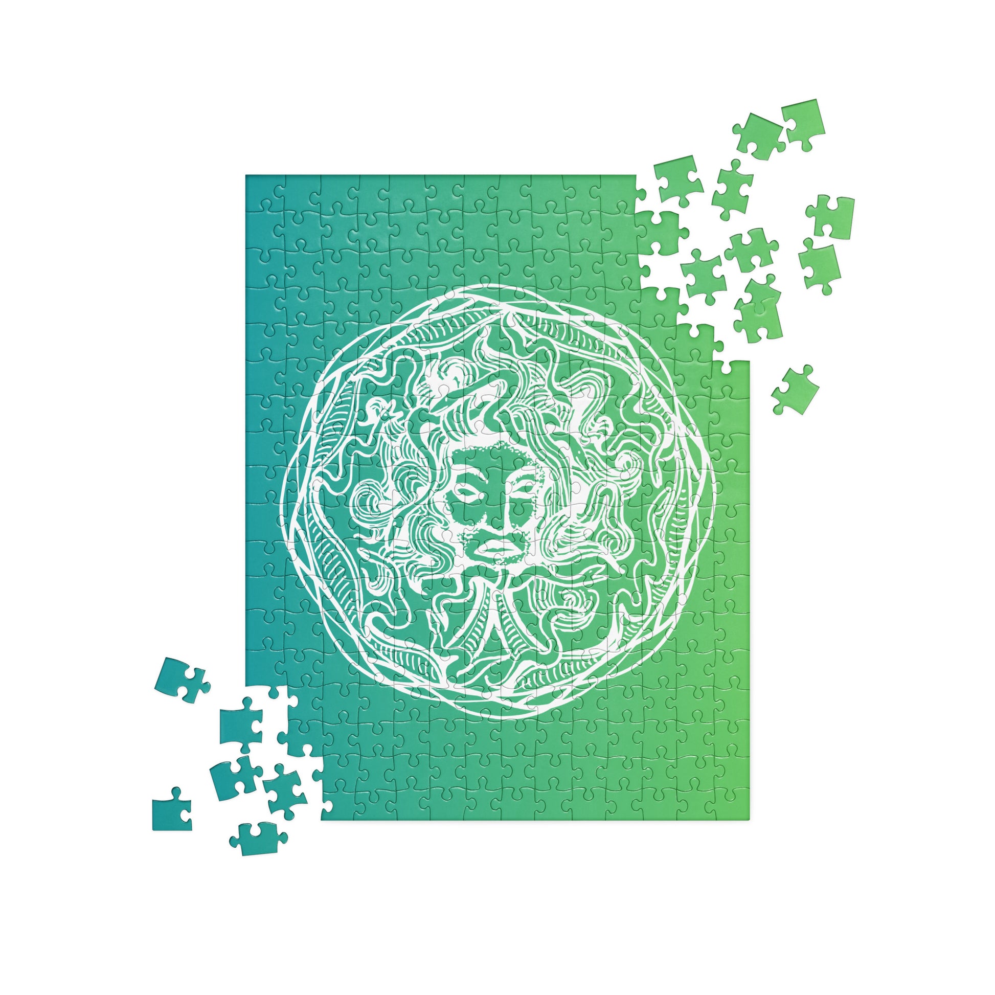 Medusa Circle Emblem Design Green Gradient Jigsaw Puzzle