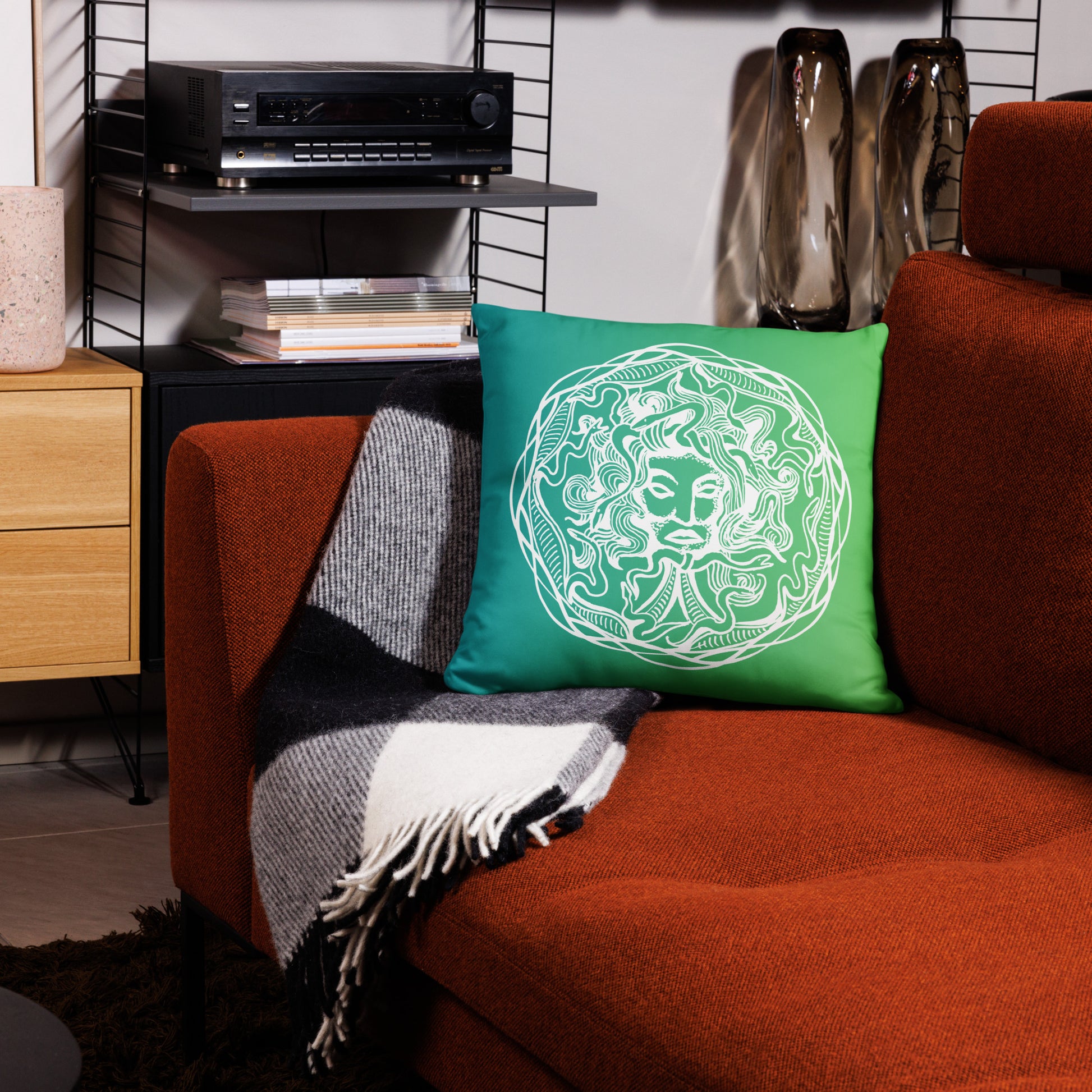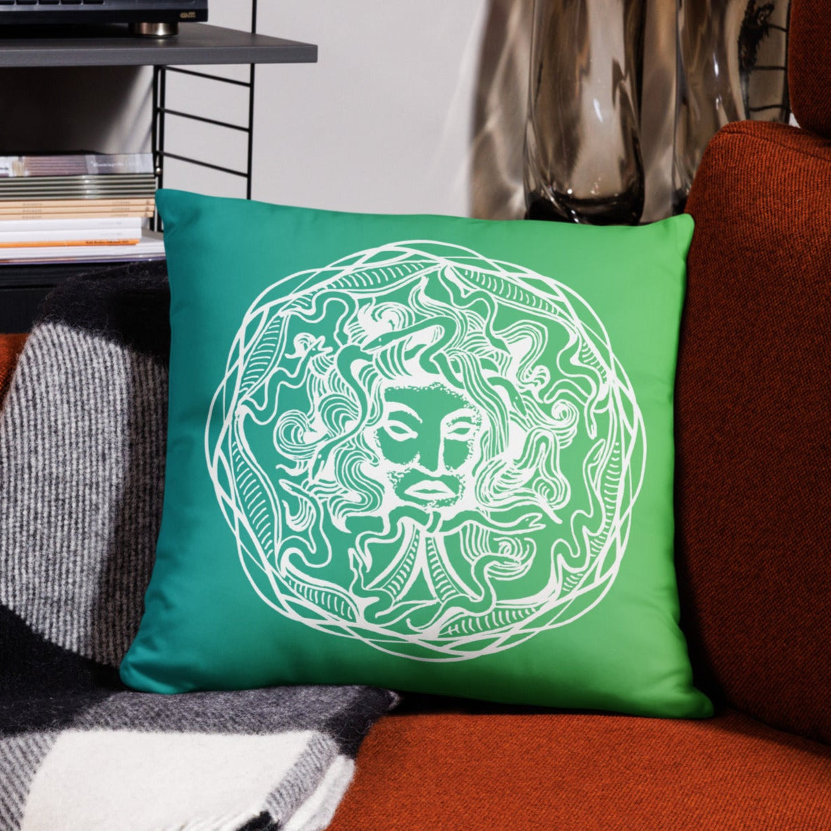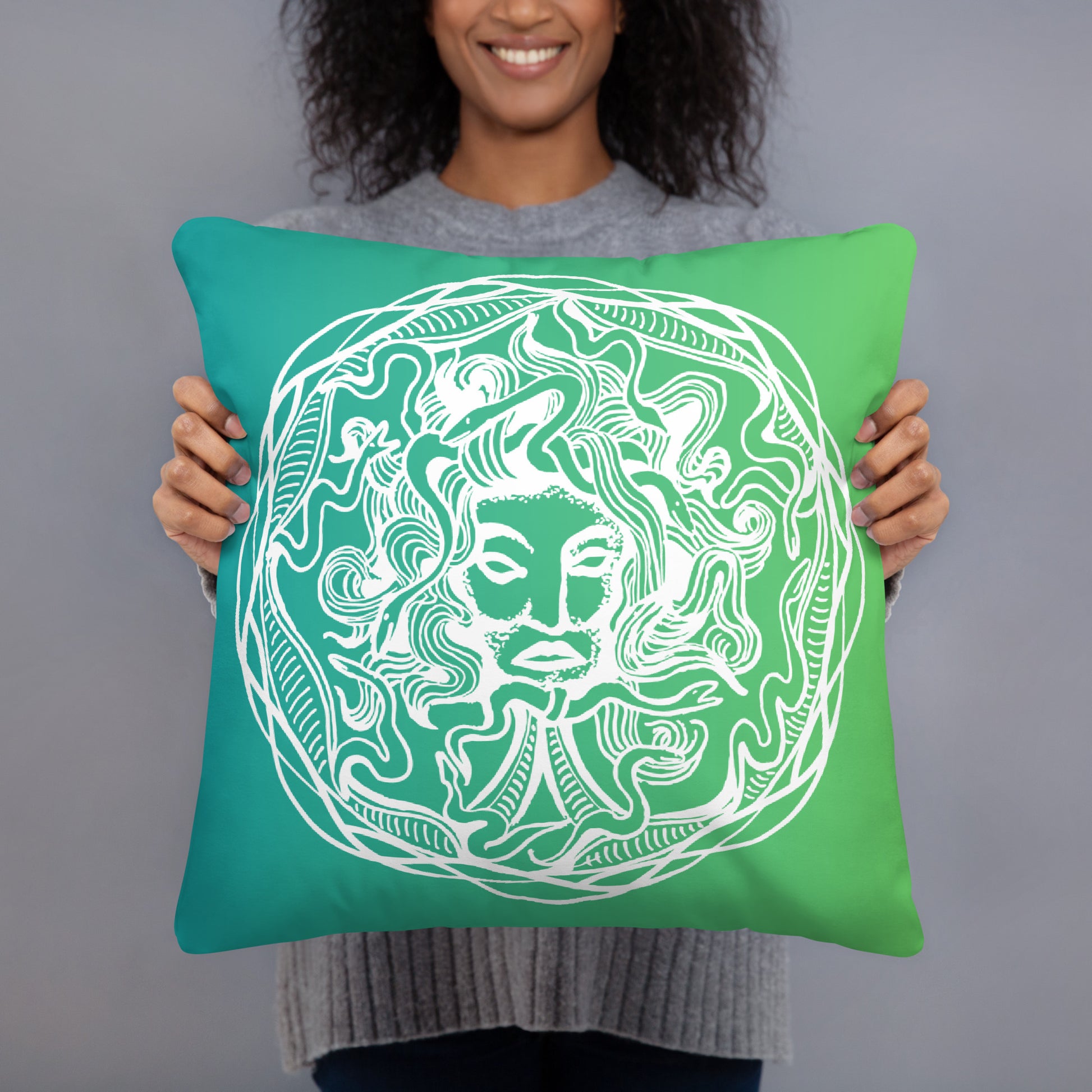 Medusa Circle Emblem Design Green Gradient Throw Pillow 18" x 18" Square Pillow