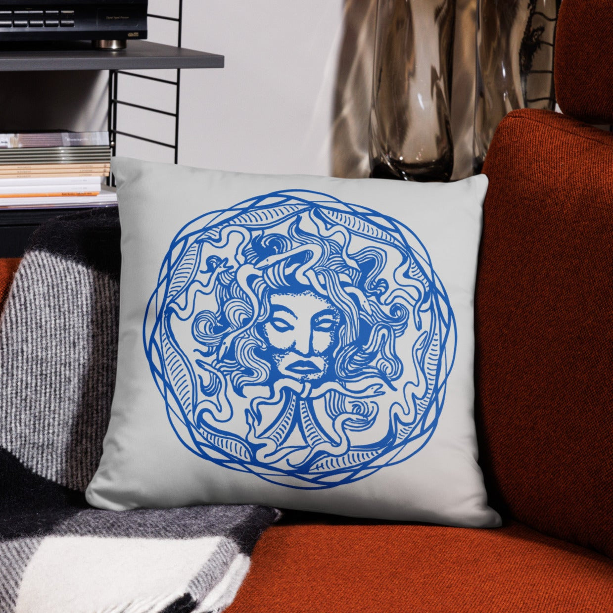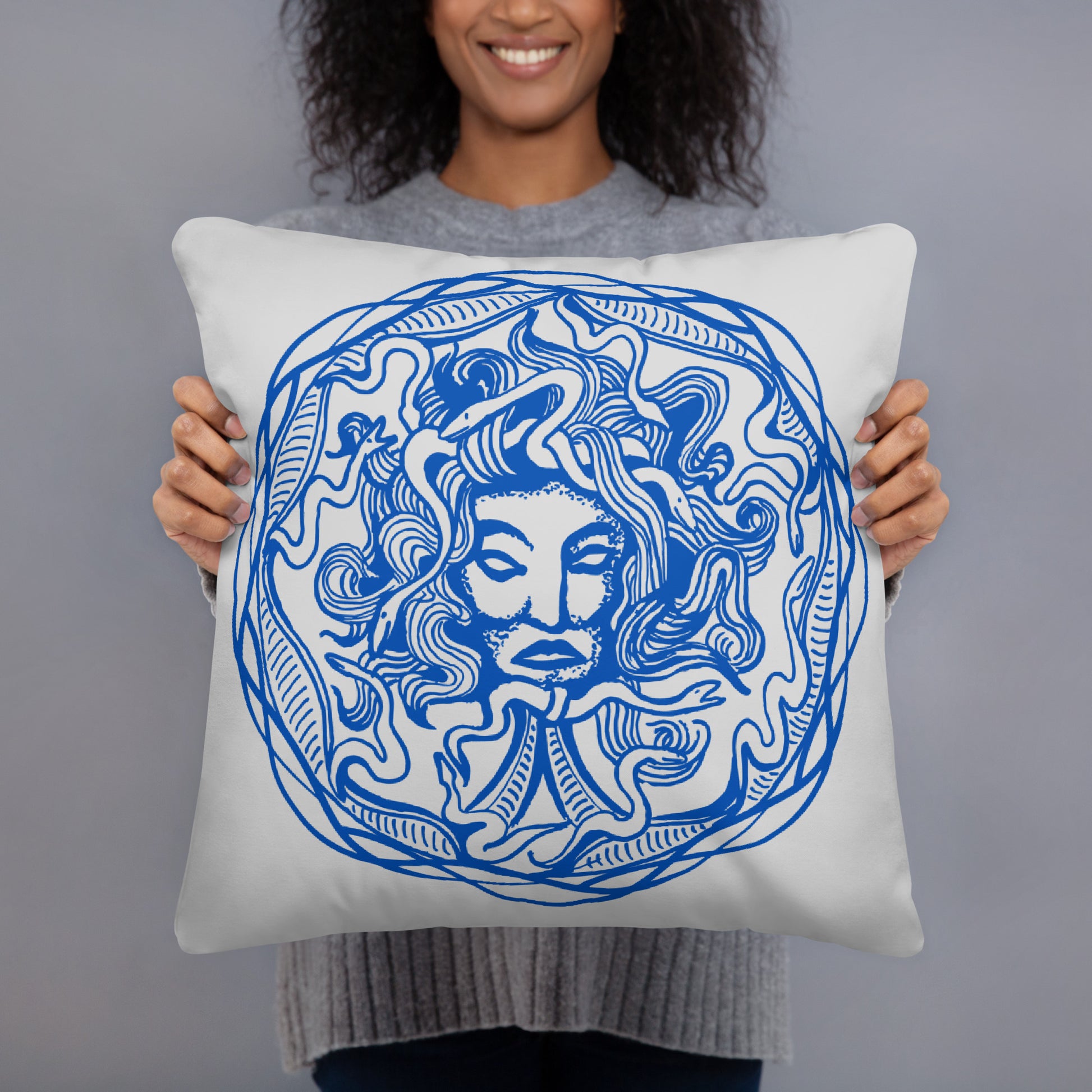 Medusa Circle Emblem Design Gray Throw Pillow 18" x 18" Square Pillow