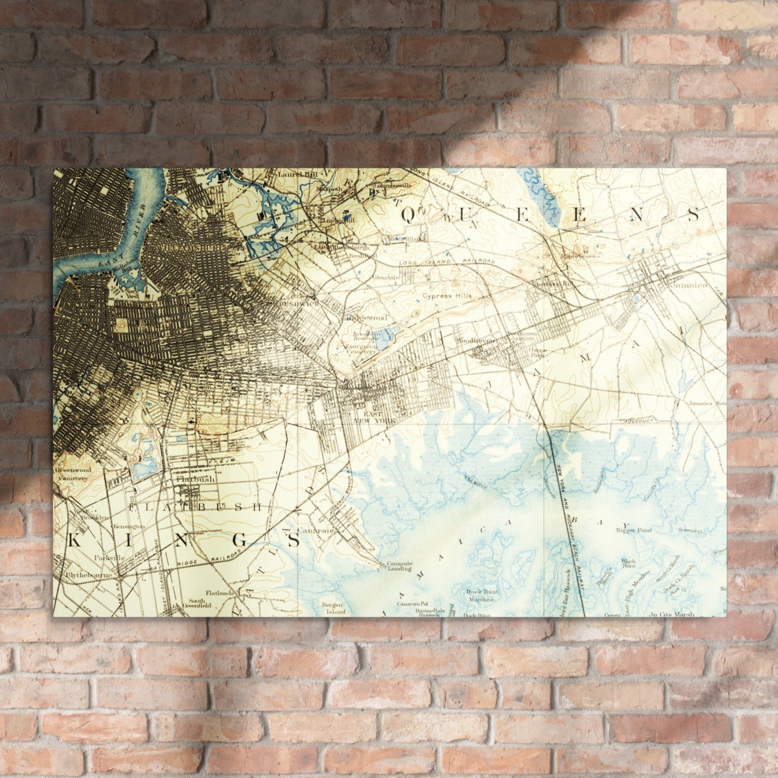 Metal Print 24″×36″ Brooklyn NY 1889 Historical Map Horizontal