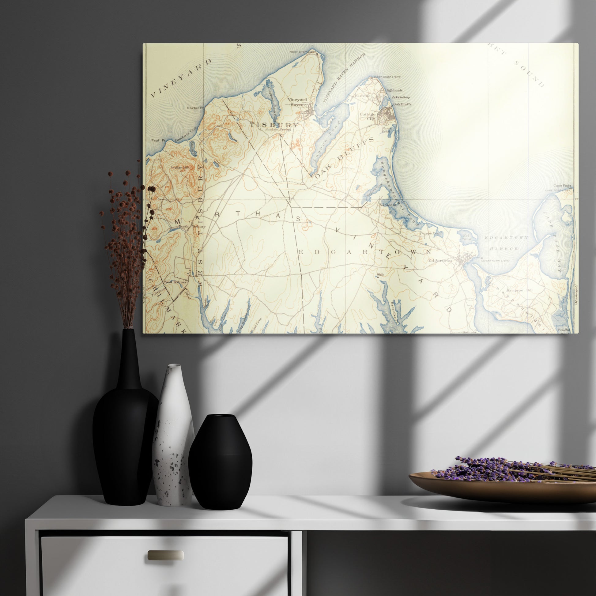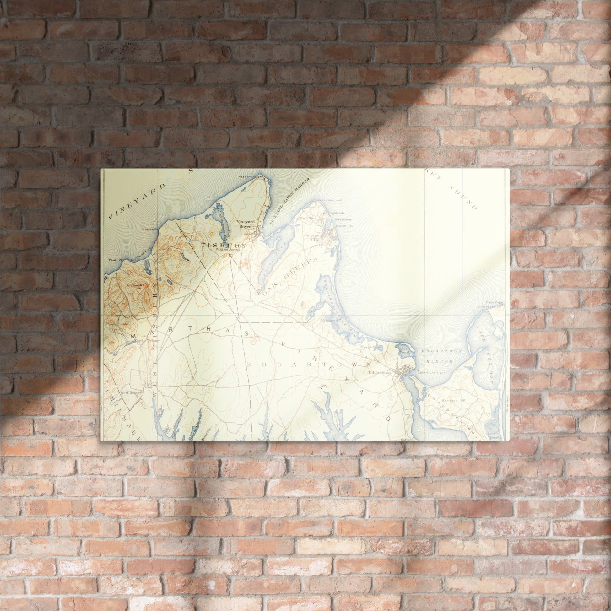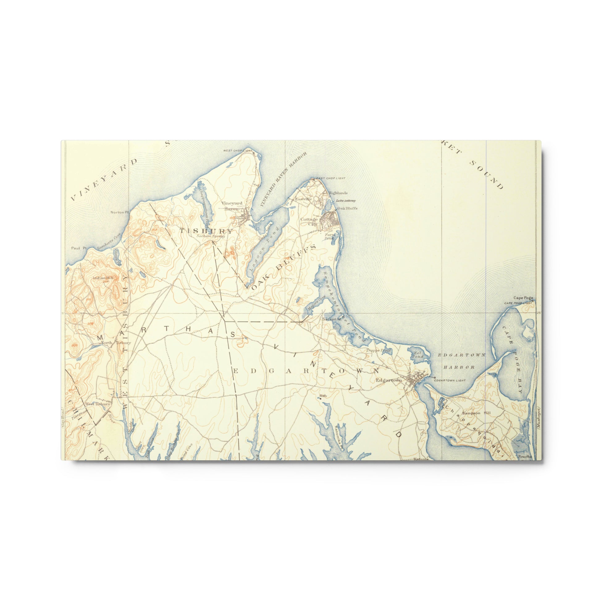 Metal Print 24″×36″ Marthas Vineyard MA 1887 Horizontal Historical Map