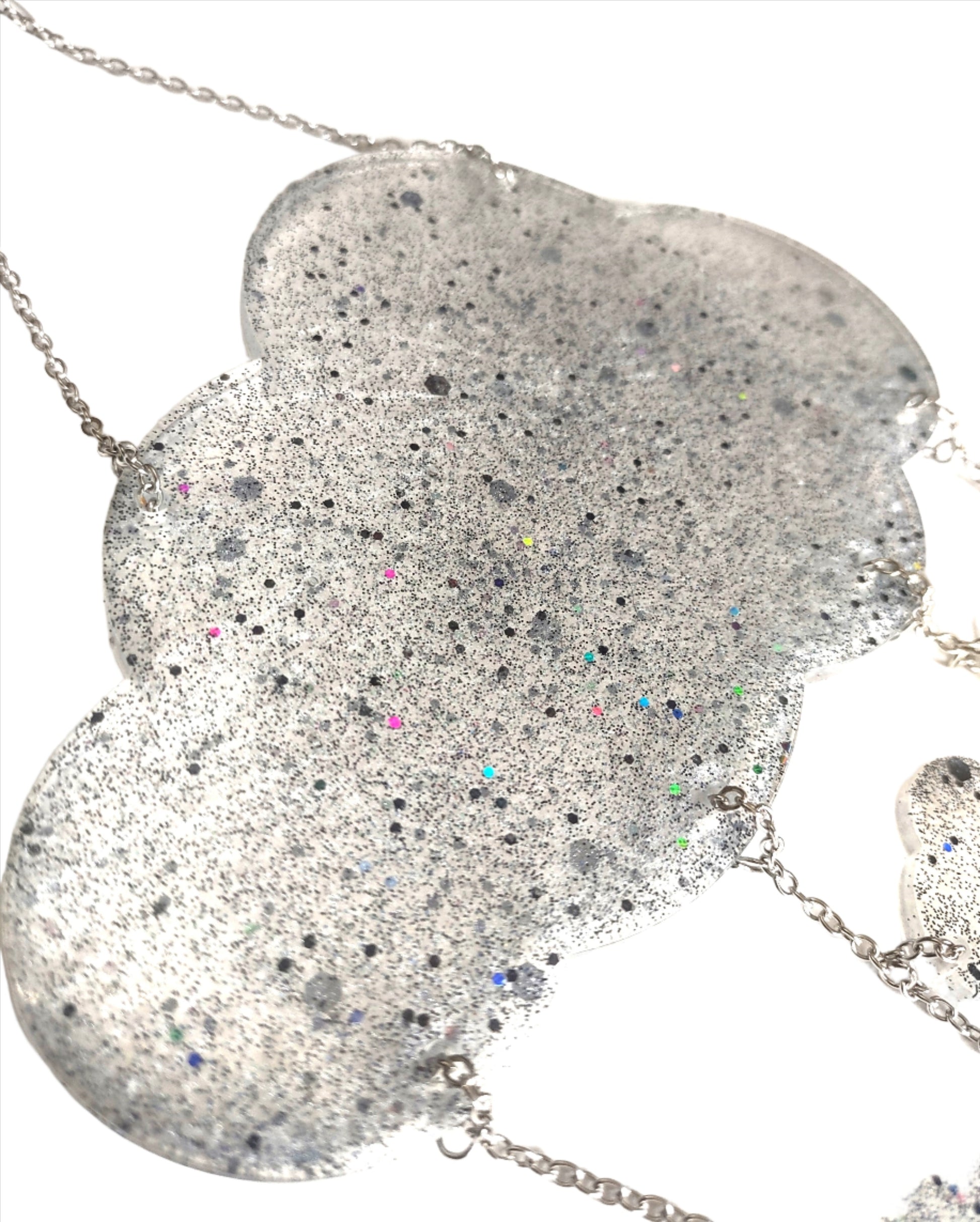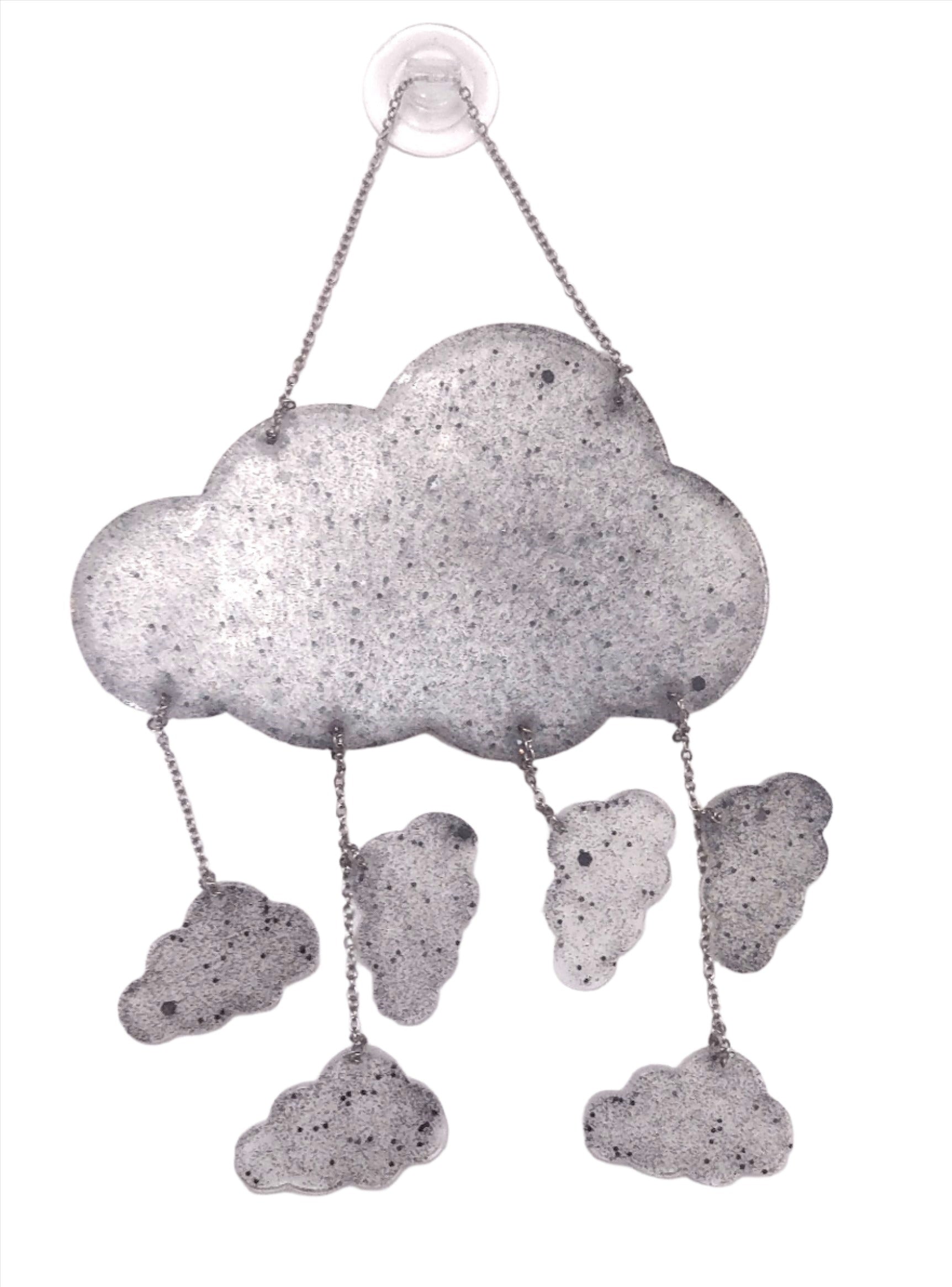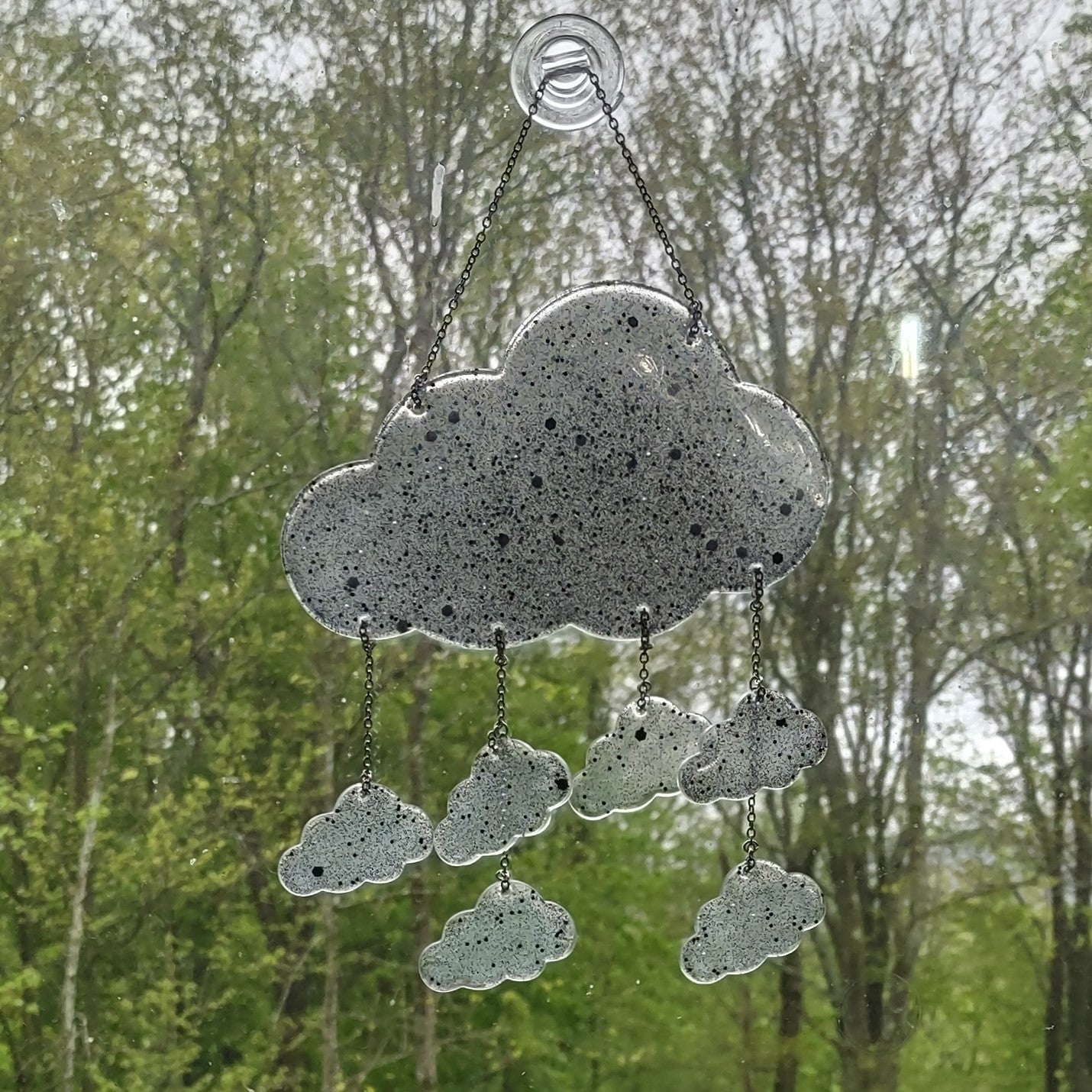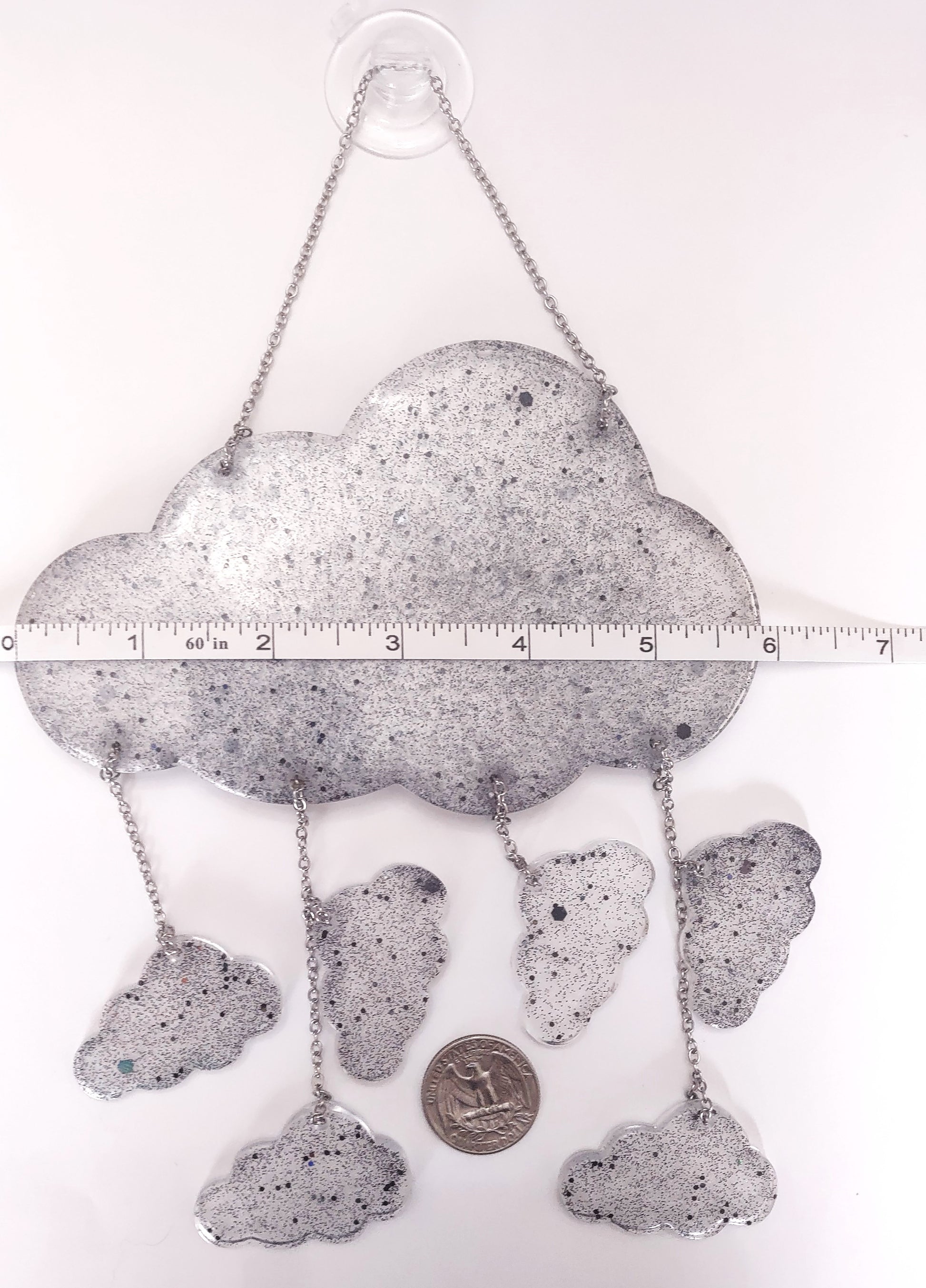 Shimmering Cloud Sun Catcher Window Hang Hand Crafted Resin Midnight Black Holographic Glitter