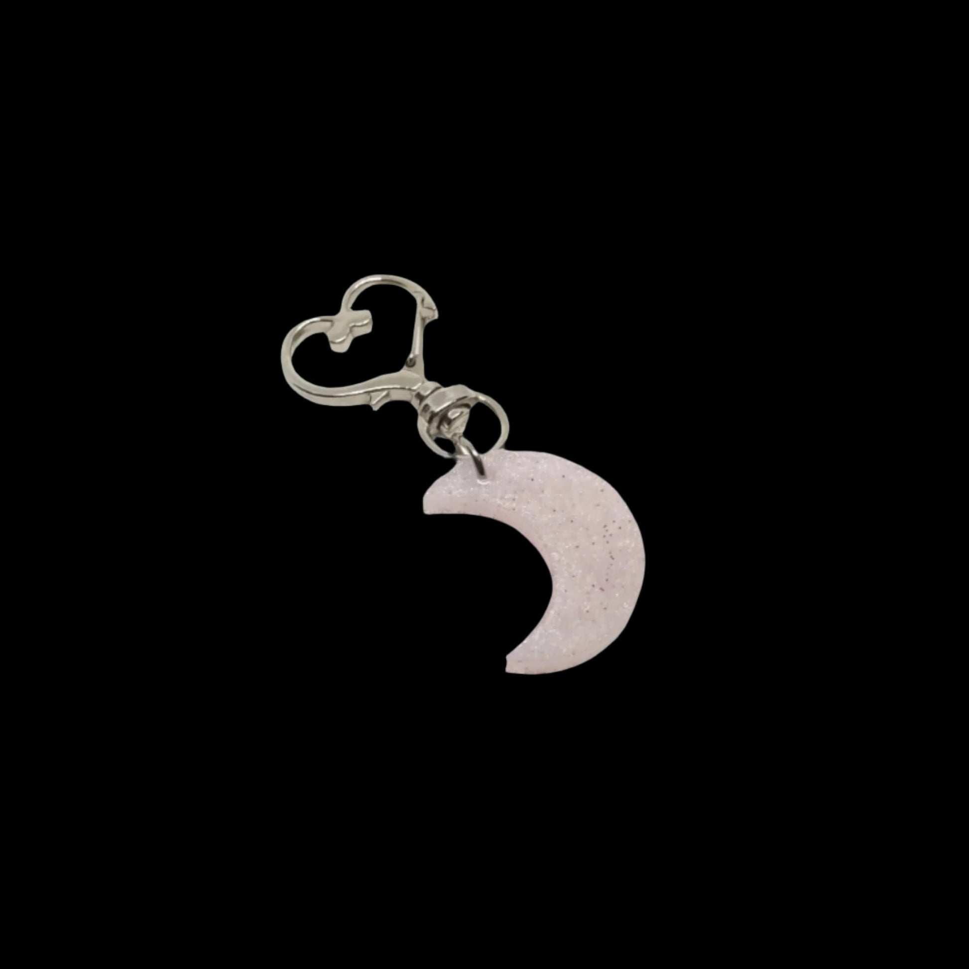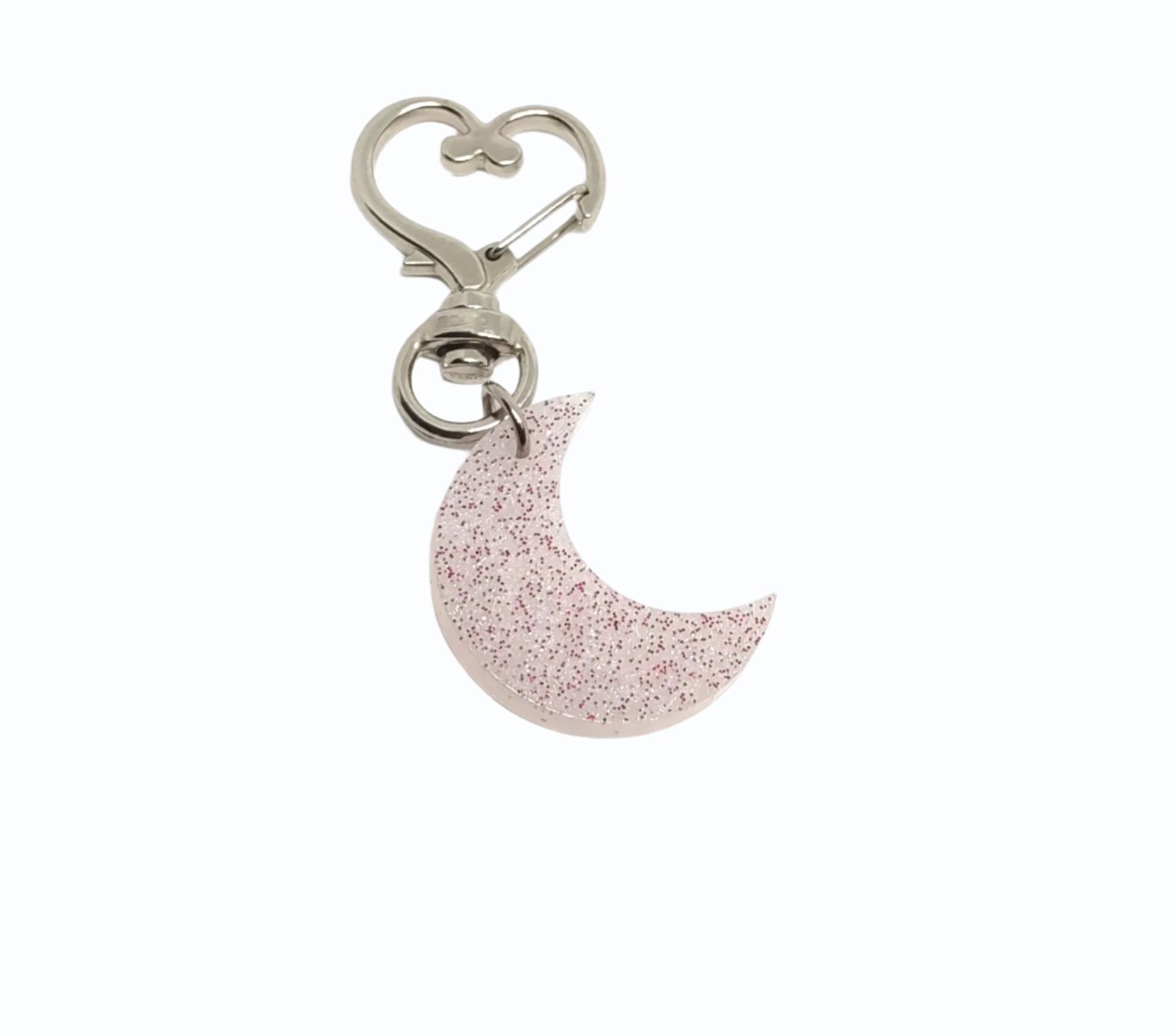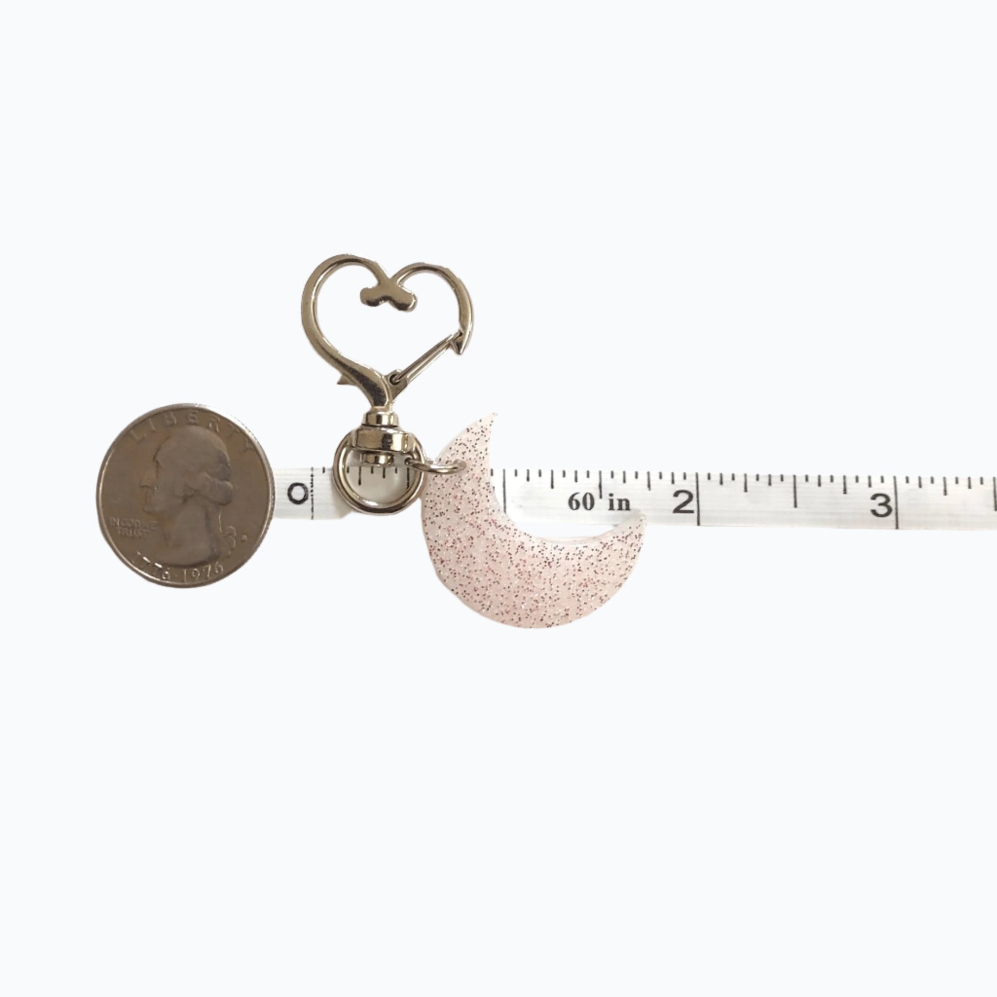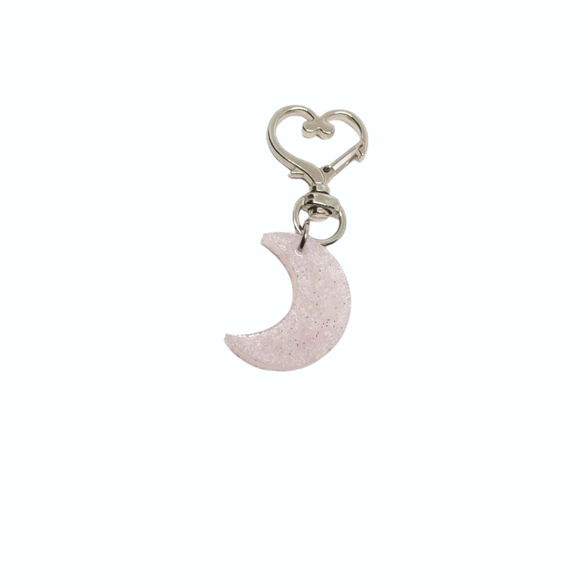 Moon Adornment with Heart Clasp Pink Glitter Hand Crafted Resin Accessory