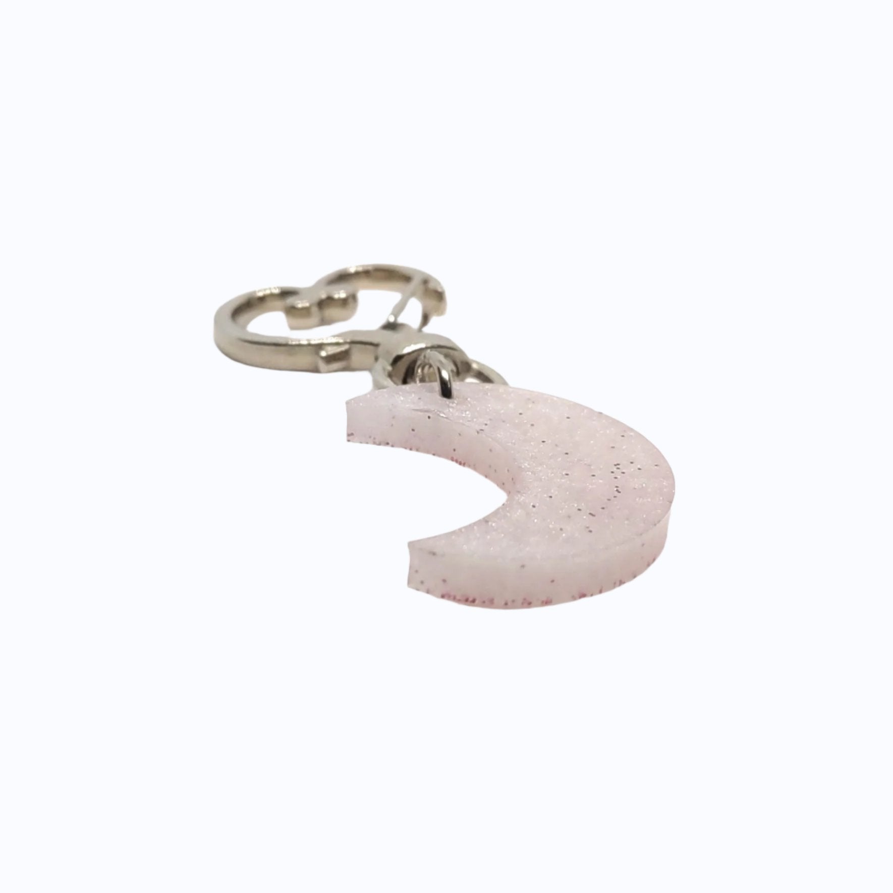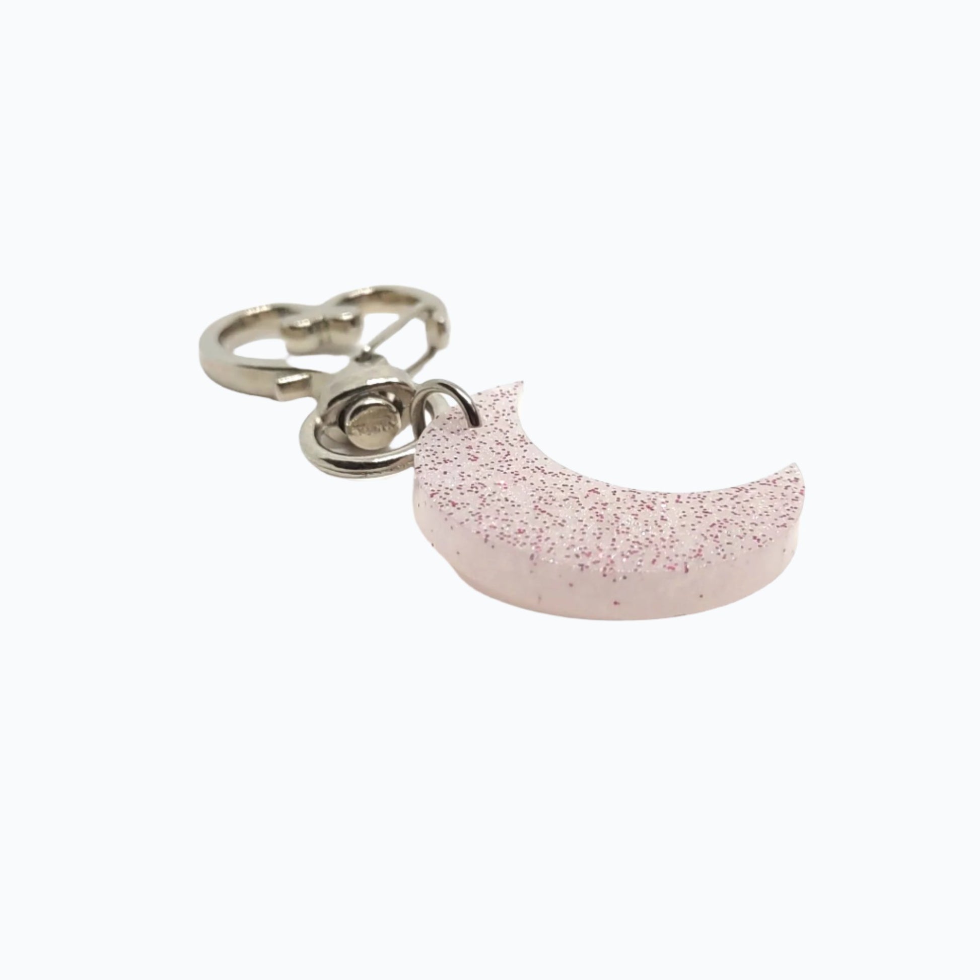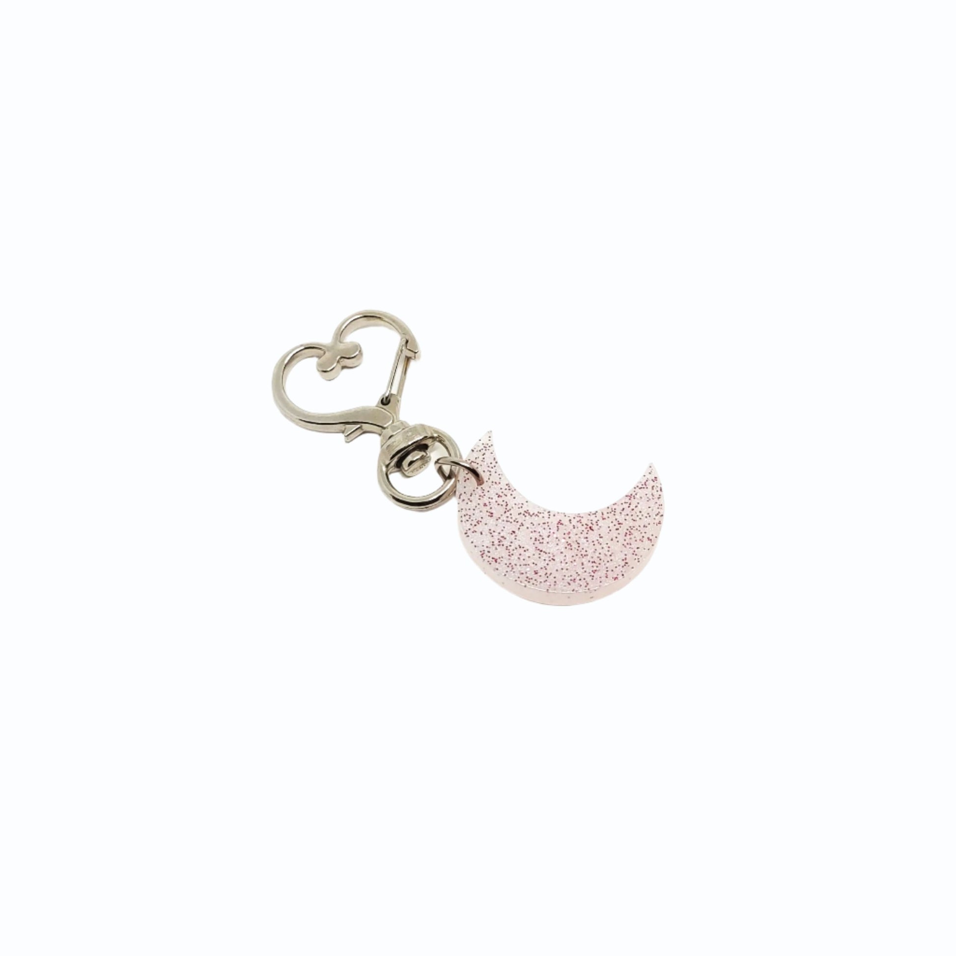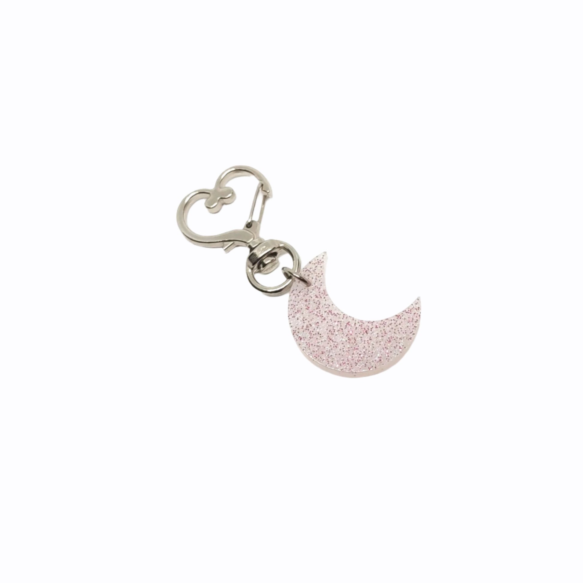 Moon Adornment with Heart Clasp Pink Glitter Hand Crafted Resin Accessory