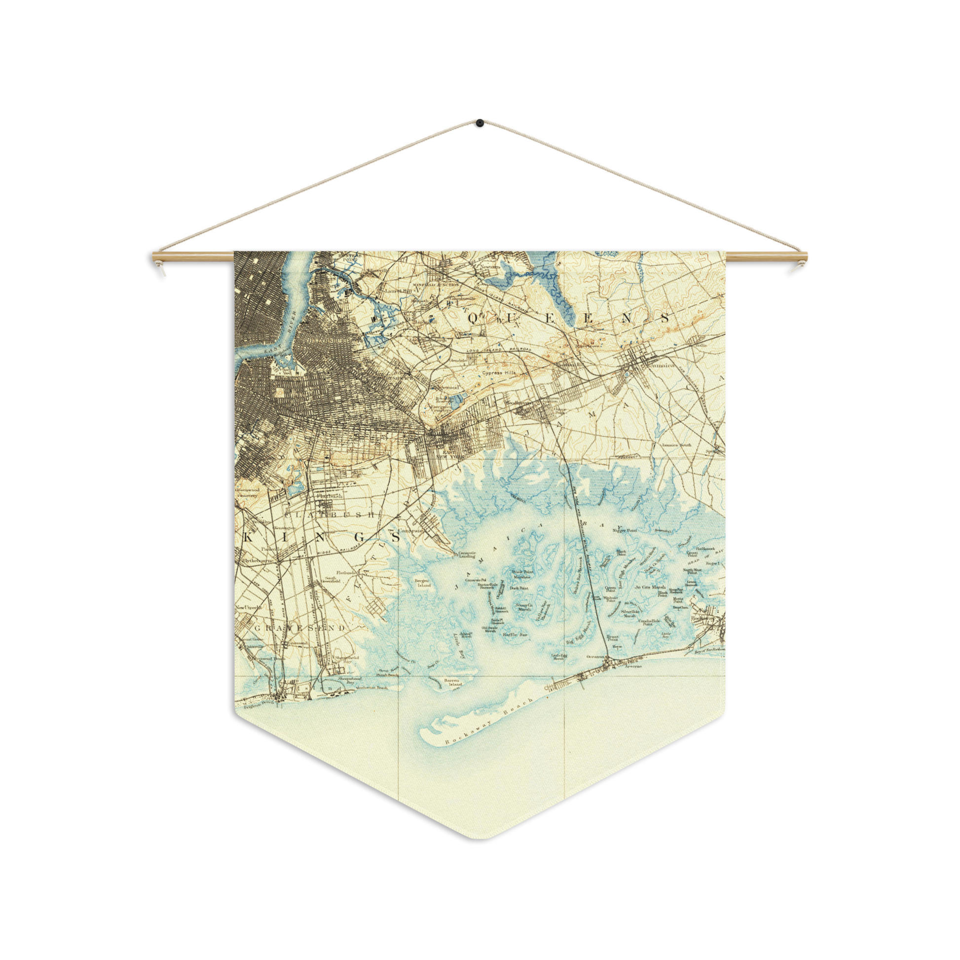 Pennant Banner 18″ × 21″ Brooklyn NY 1889 Historical Map