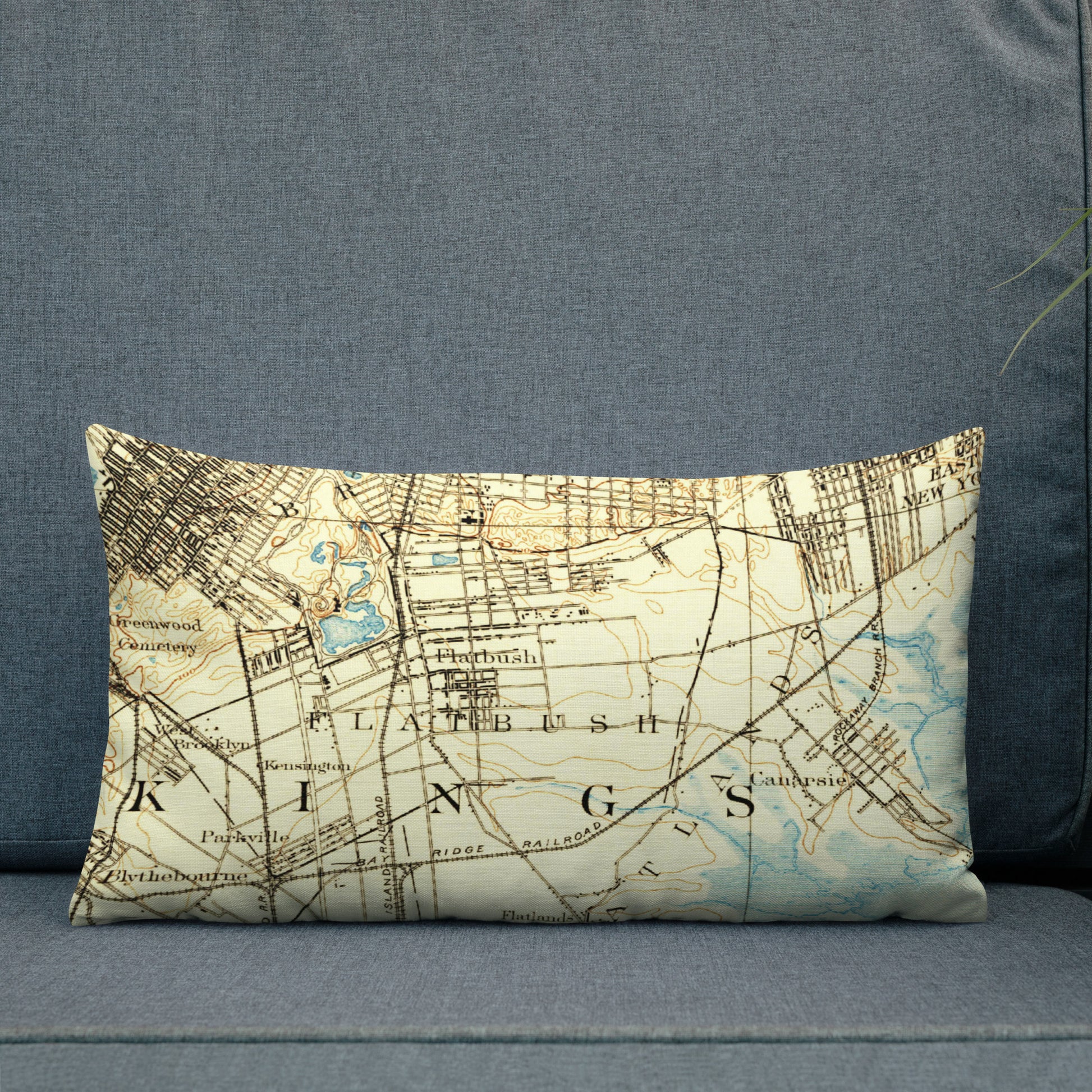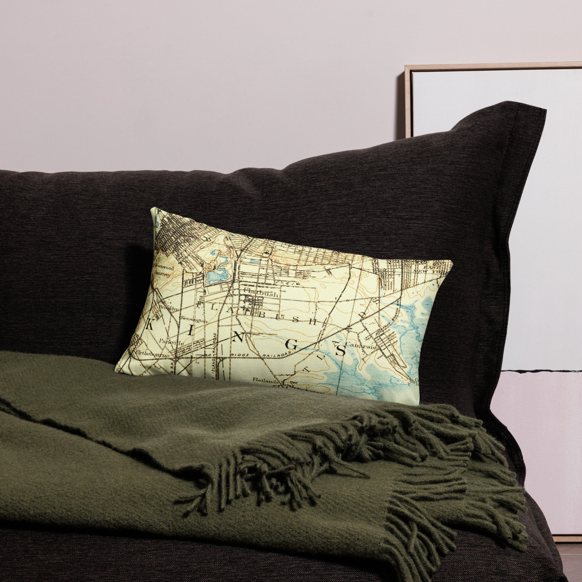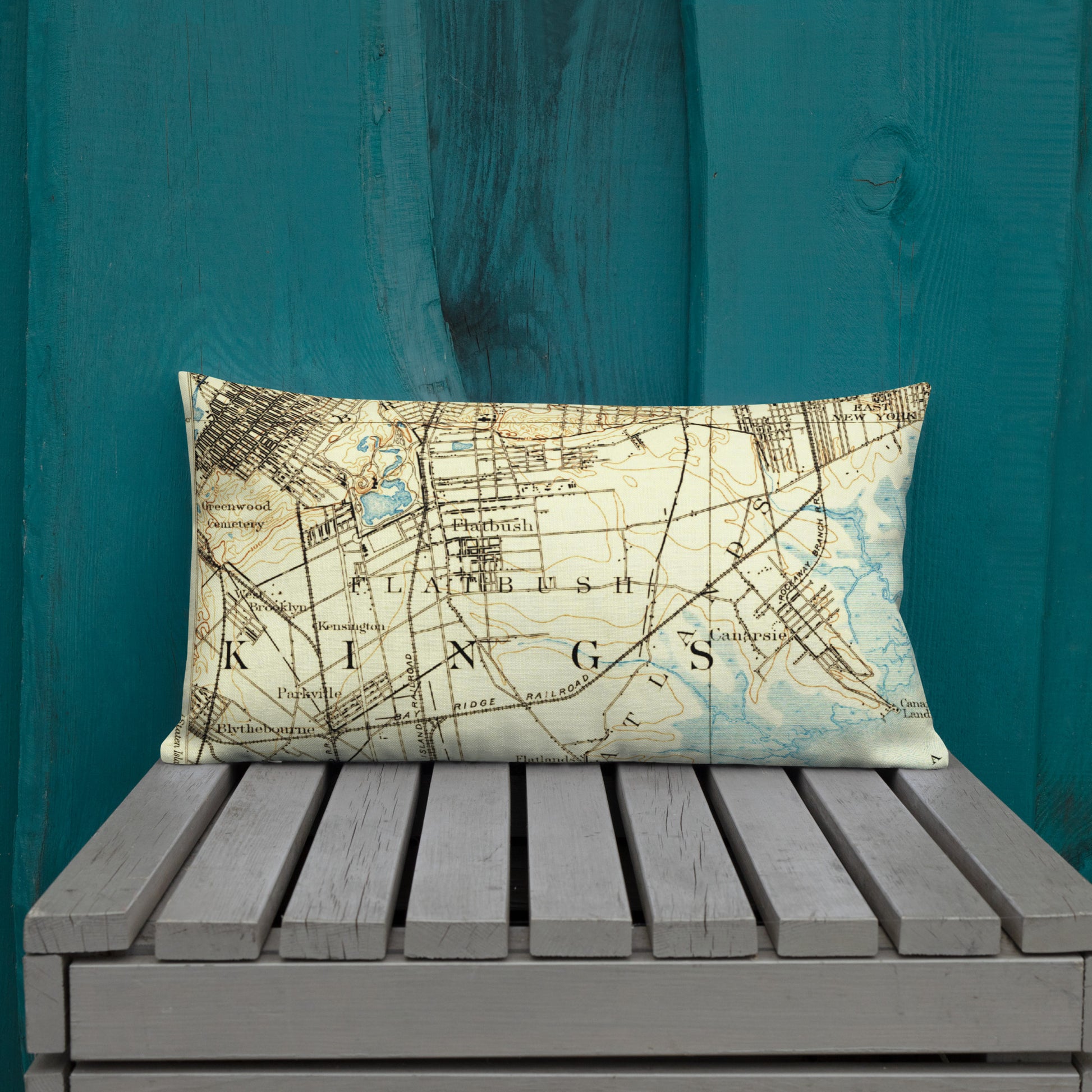 Premium Throw Pillow 12" x 20" Brooklyn NY 1889 Historical Map