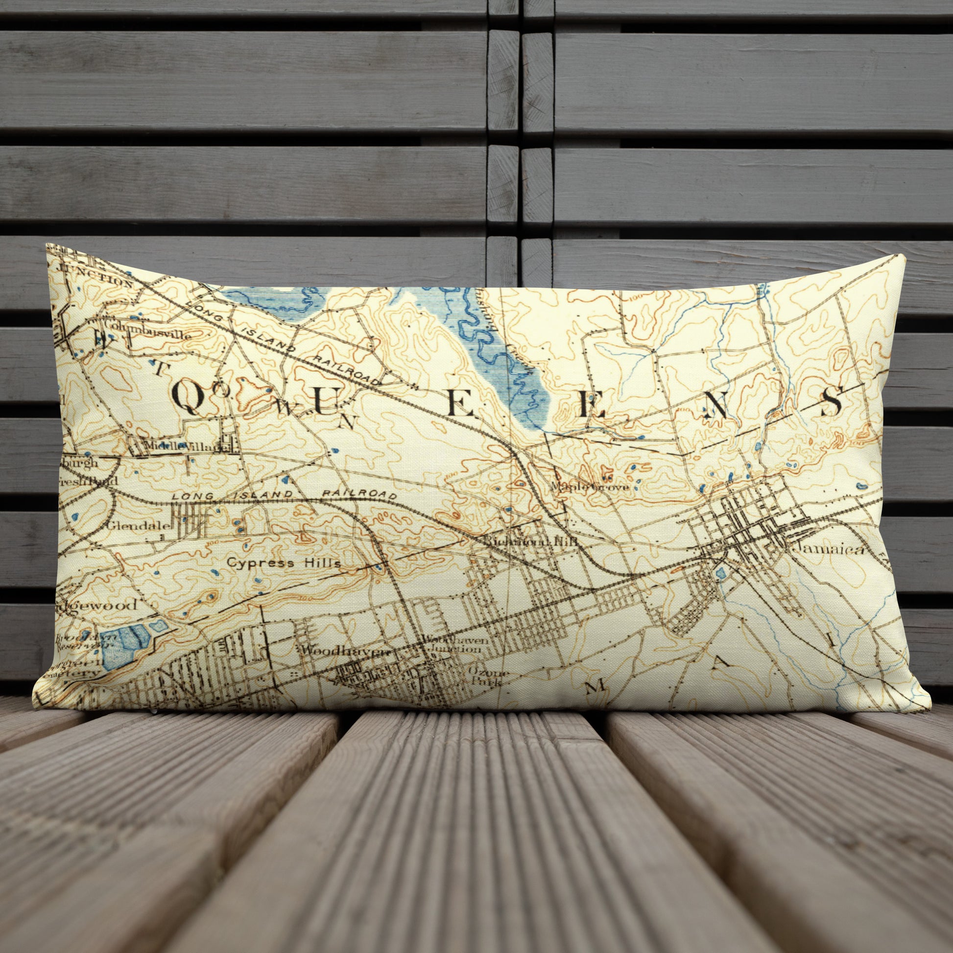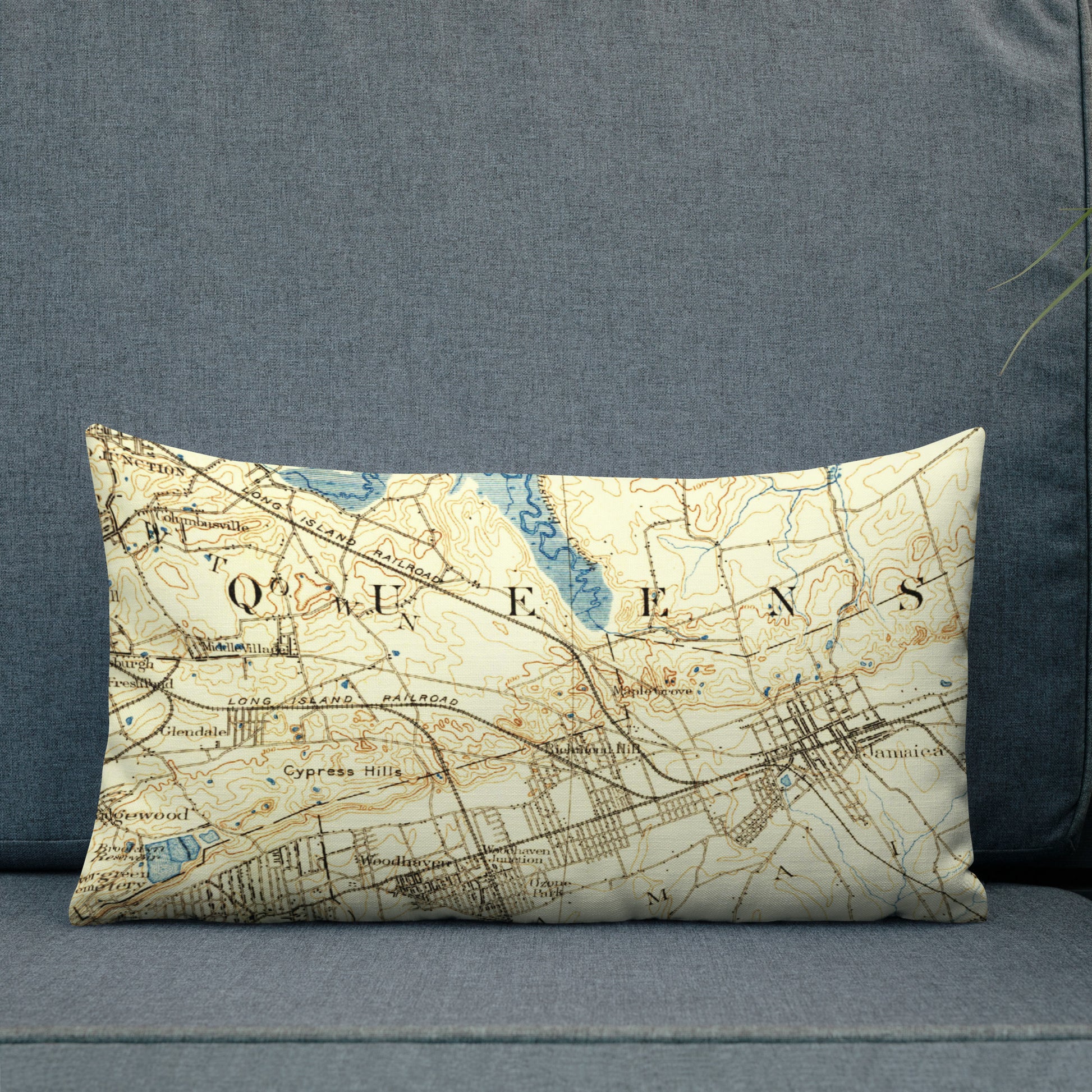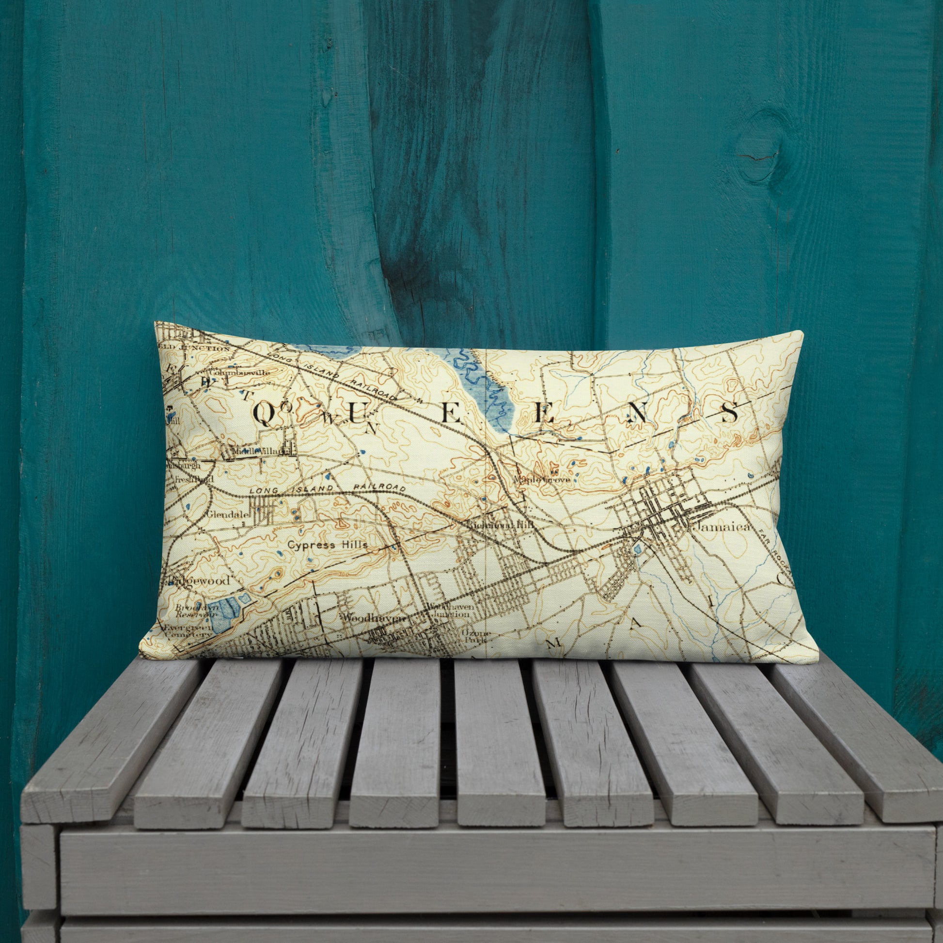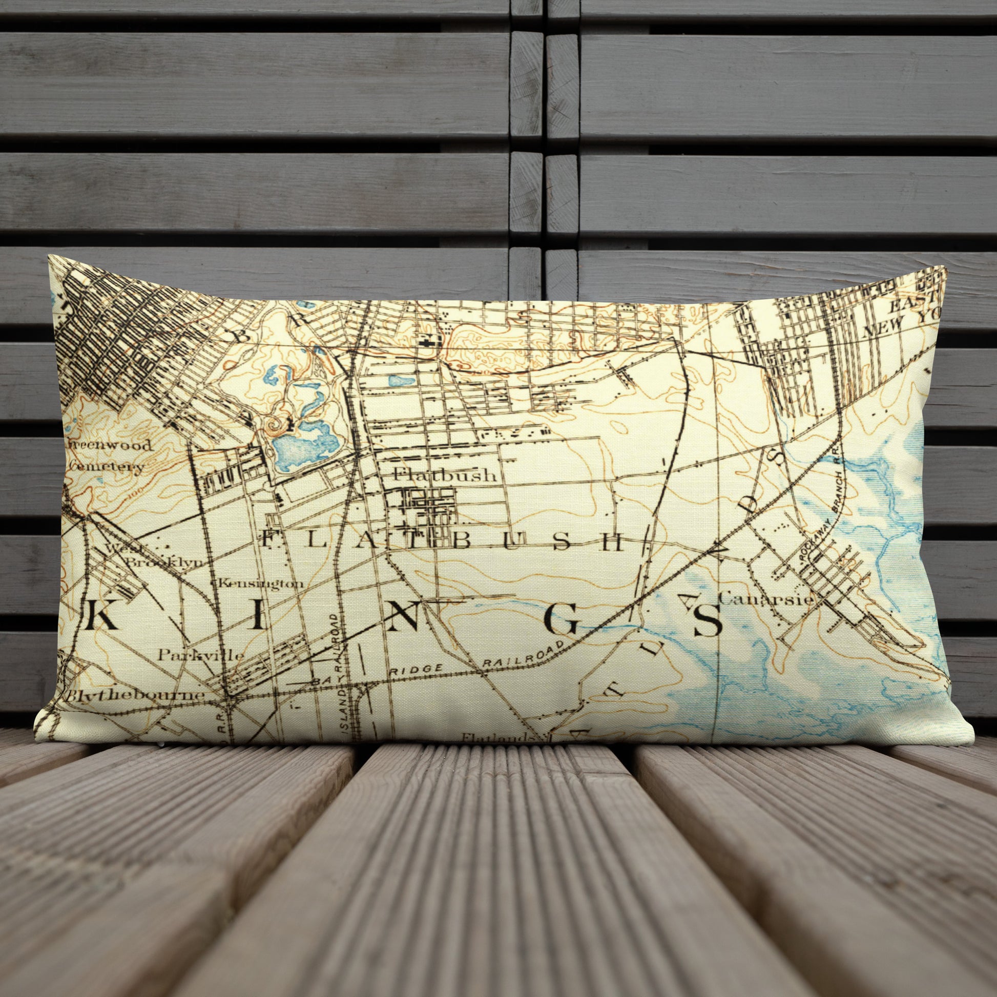Premium Throw Pillow 12" x 20" Brooklyn NY 1889 Historical Map