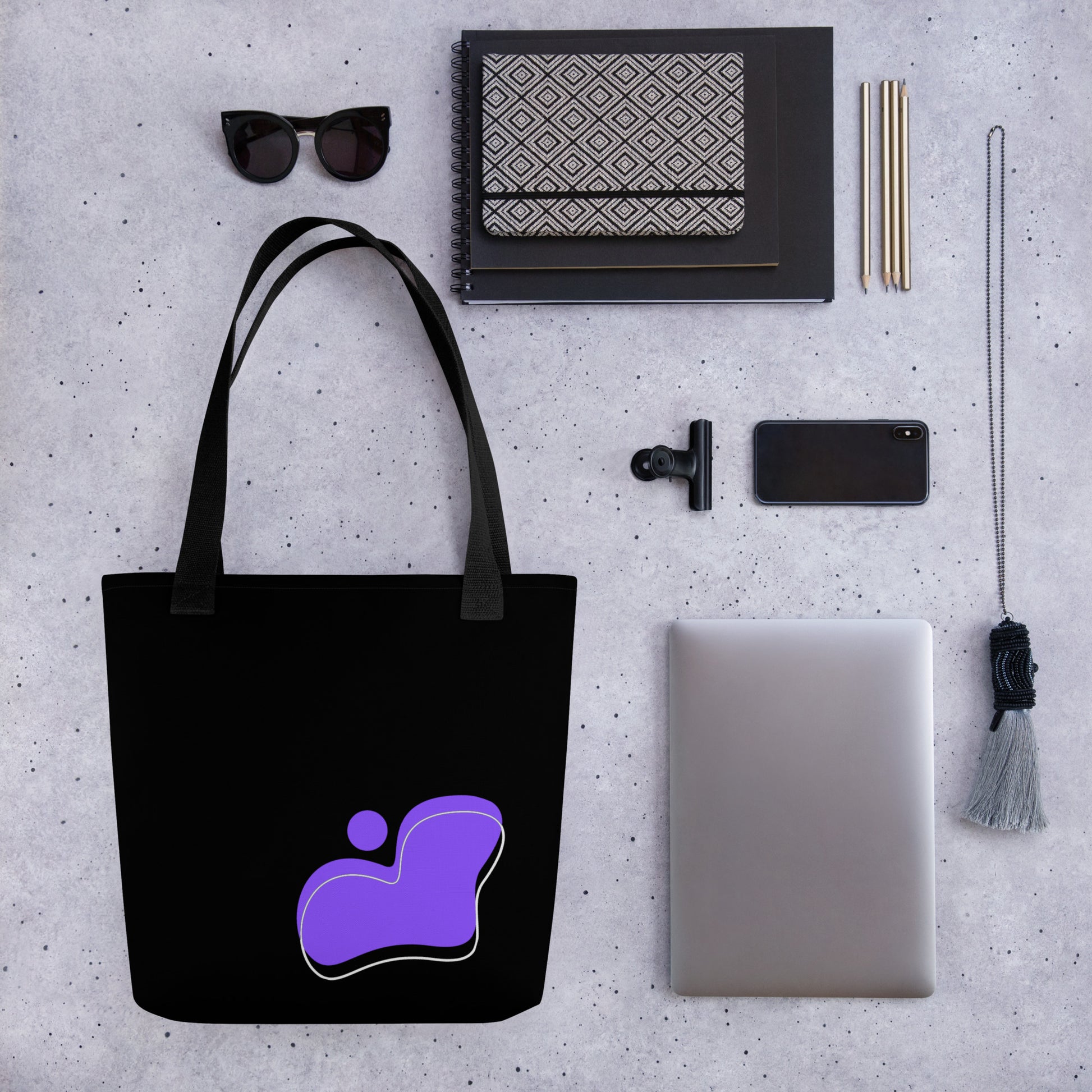 Purple Abstract Black Tote Bag