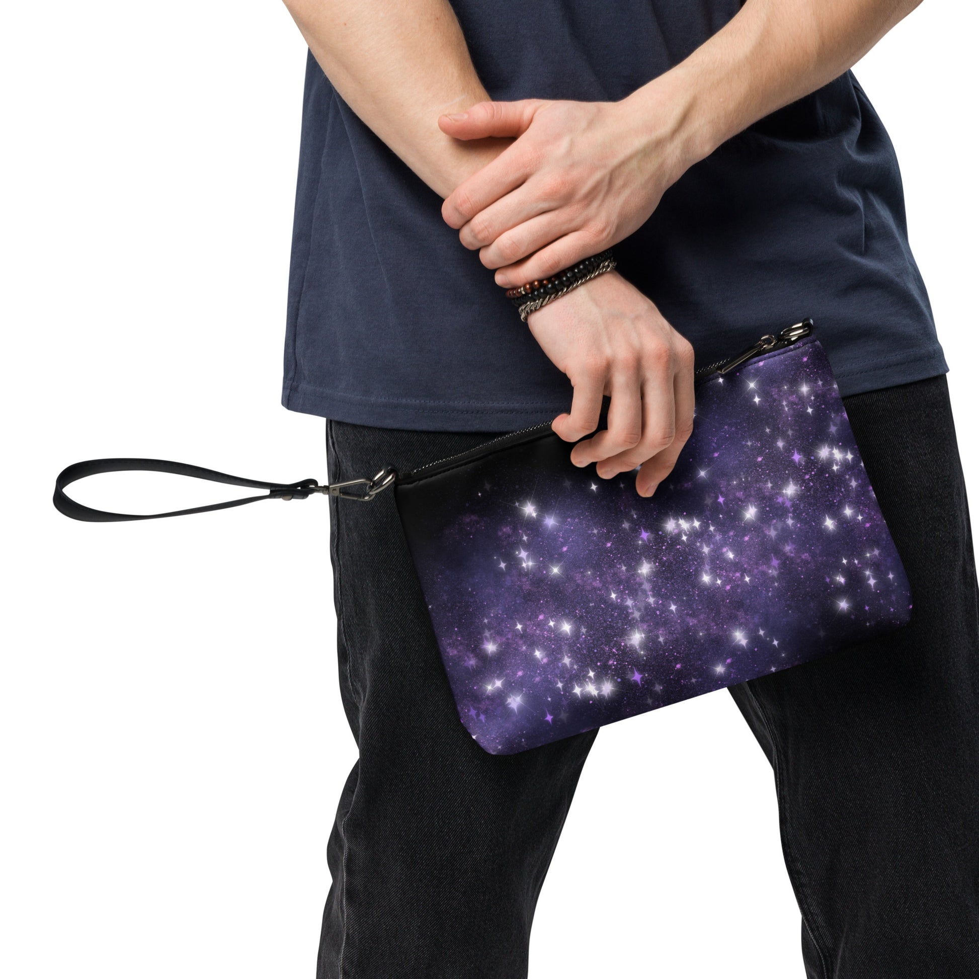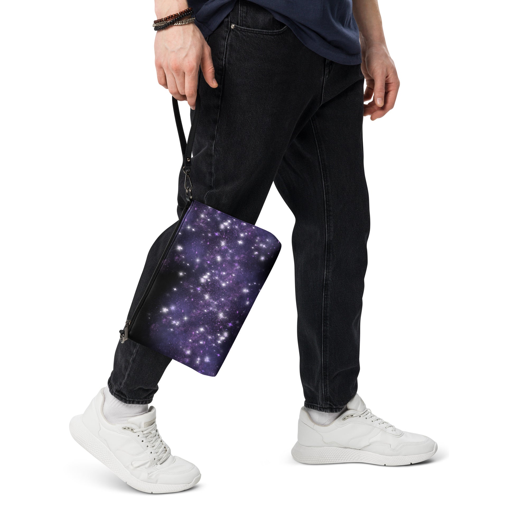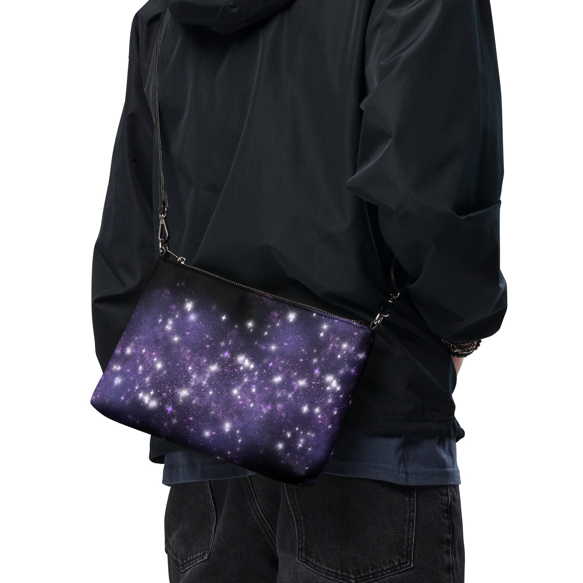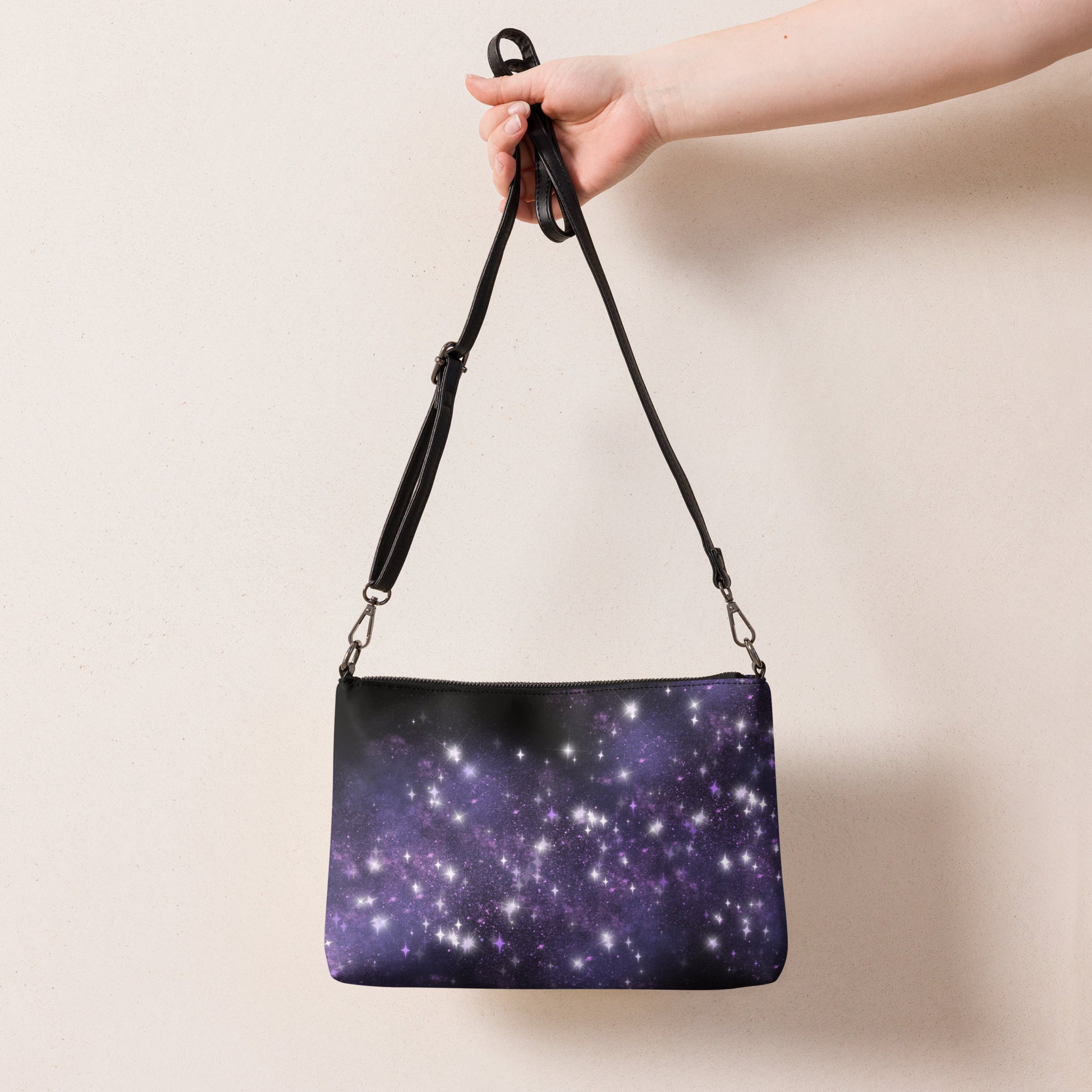 Quest Purple Galaxy Black Crossbody Bag with Removable Wrist and Shoulder Straps