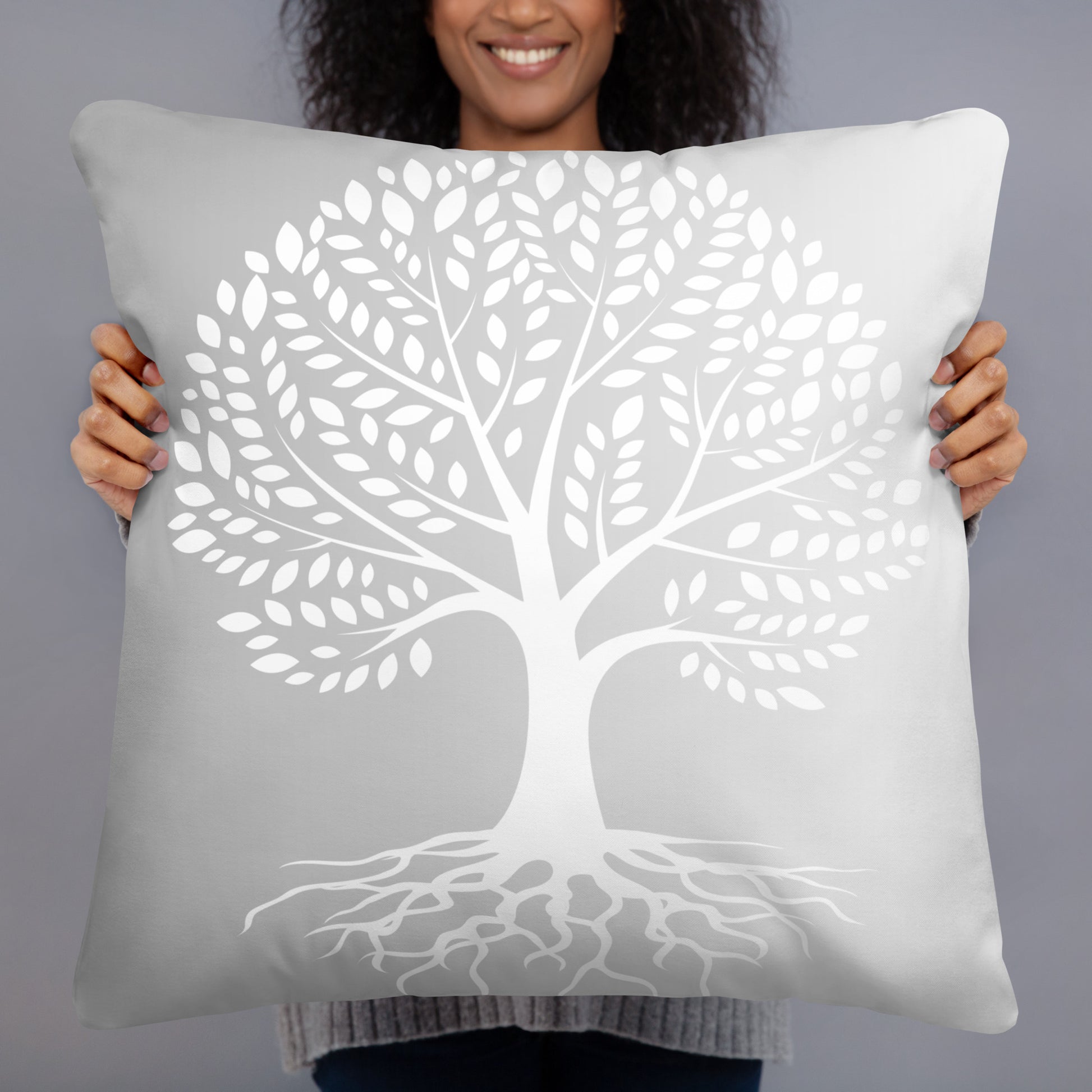 Roots Below Tree Design Gray Throw Pillow 22" x 22"