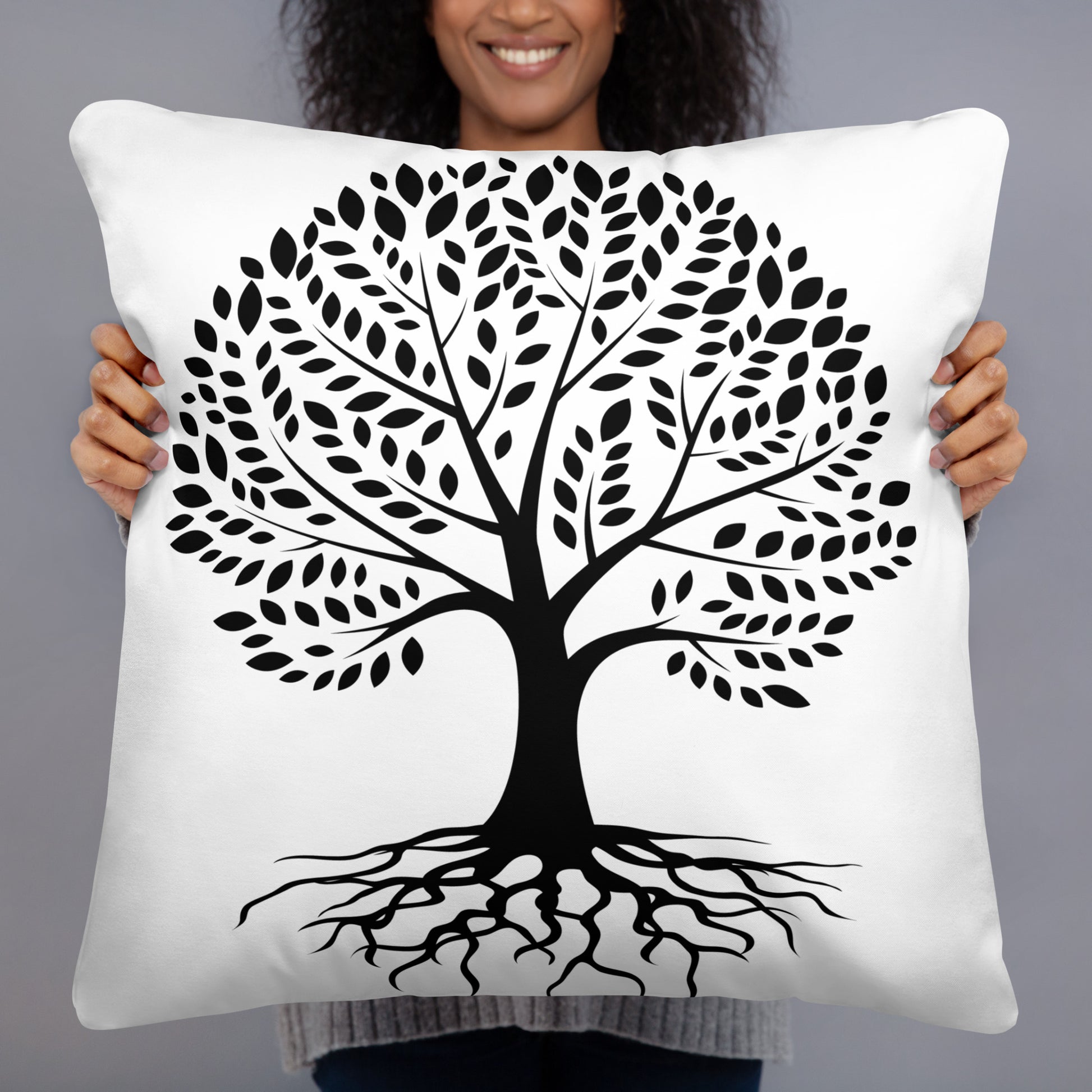 Roots Below Tree Design White Throw Pillow 22" x 22"