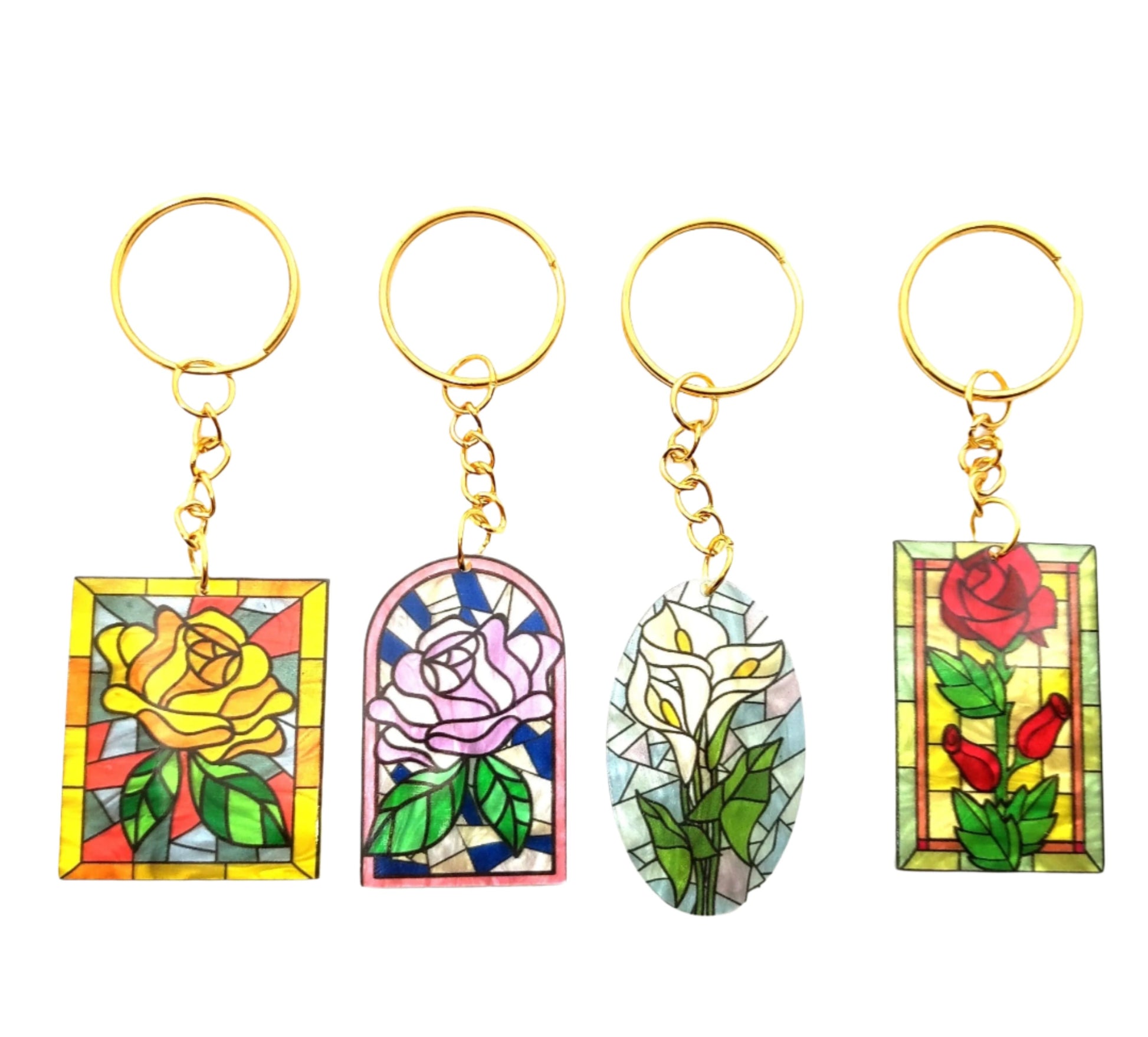 Stained Glass Window Style Flower Design Acrylic Split Ring Adornment Accessory