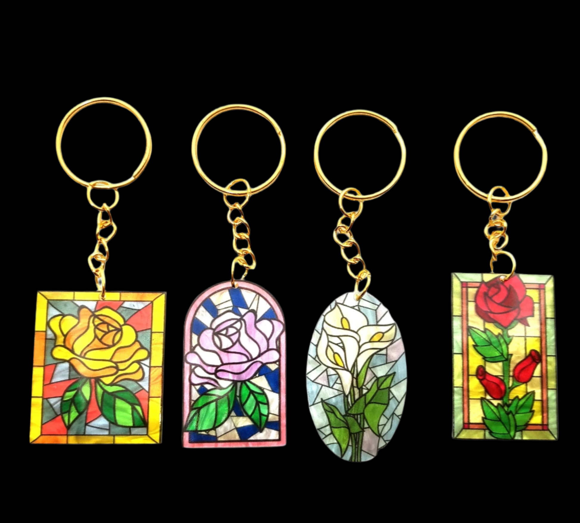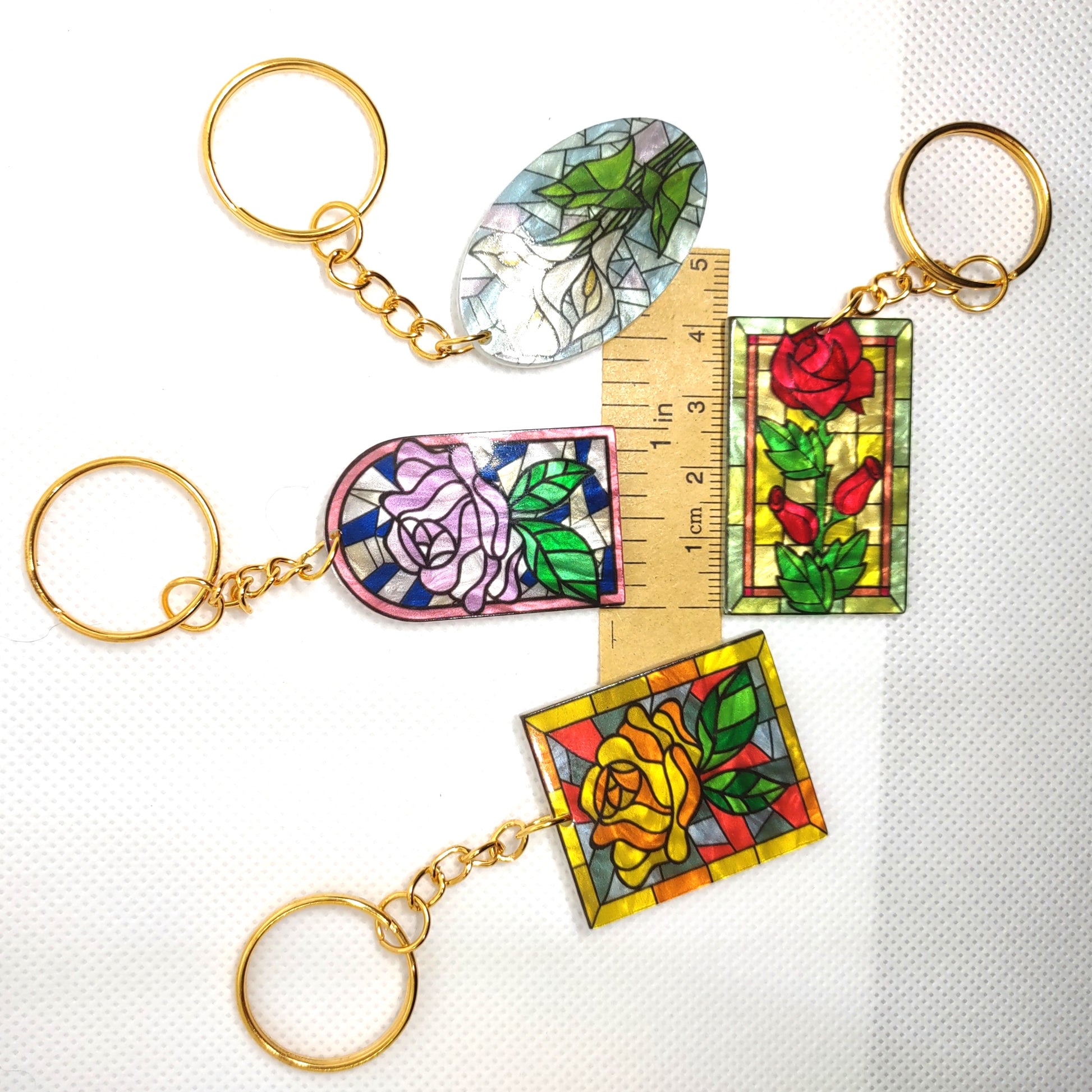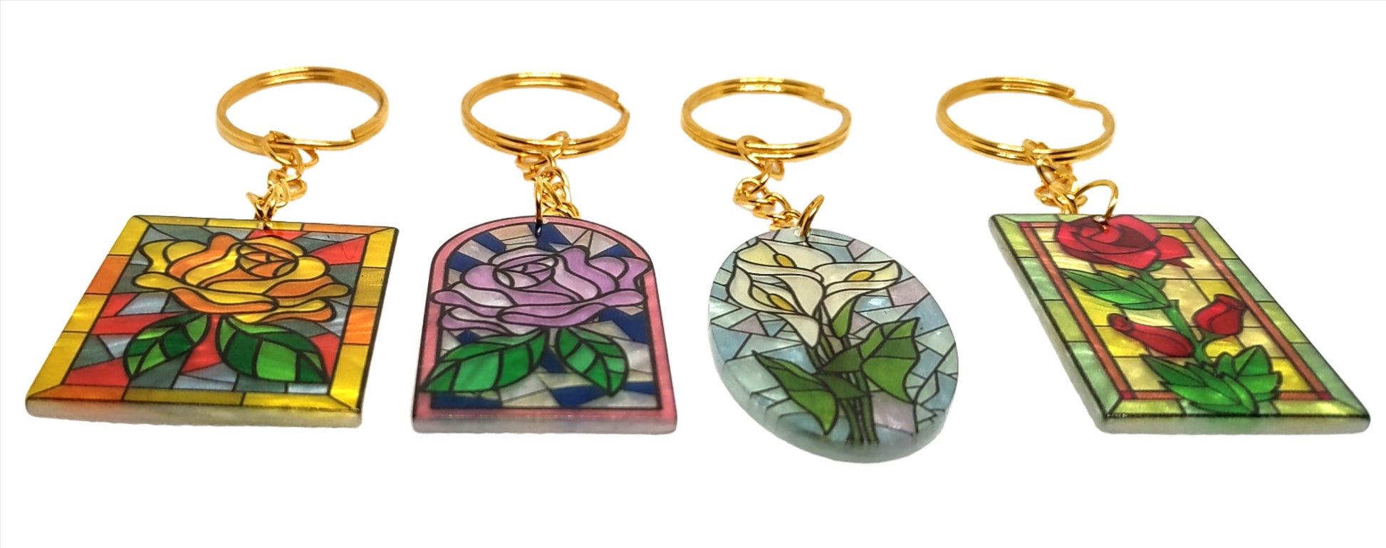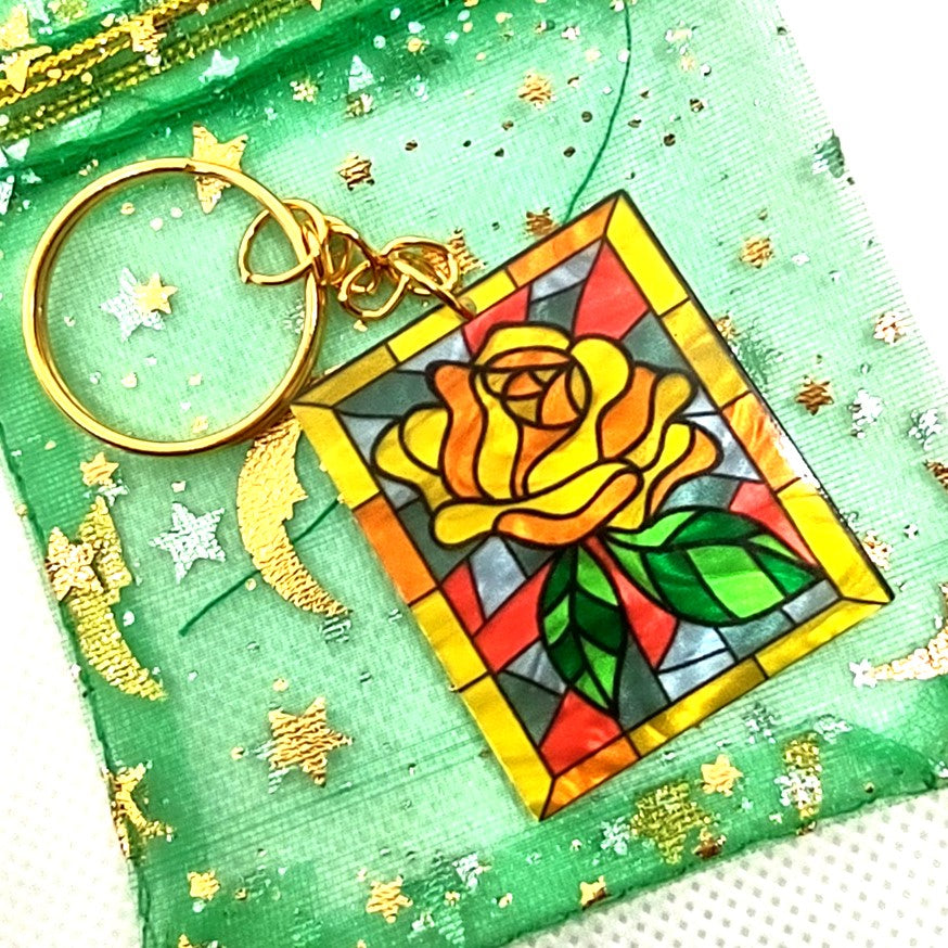 Stained Glass Flower Design Acrylic Adornment on Split Ring