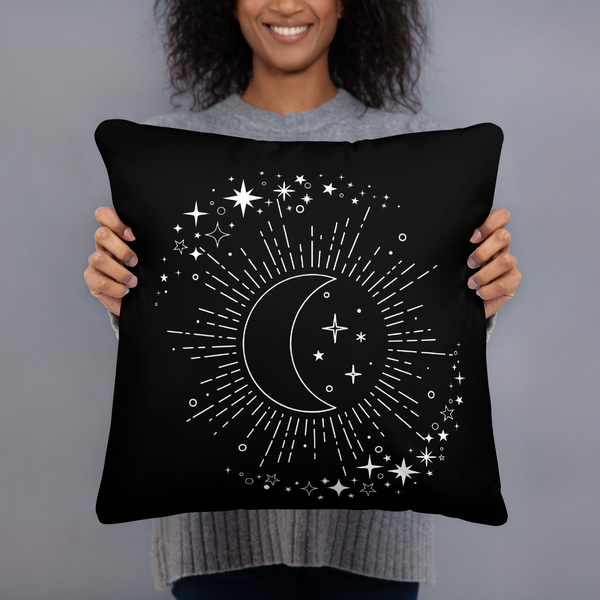 To The Moon & Stars Black Throw Pillow 18" x 18" Square Pillow