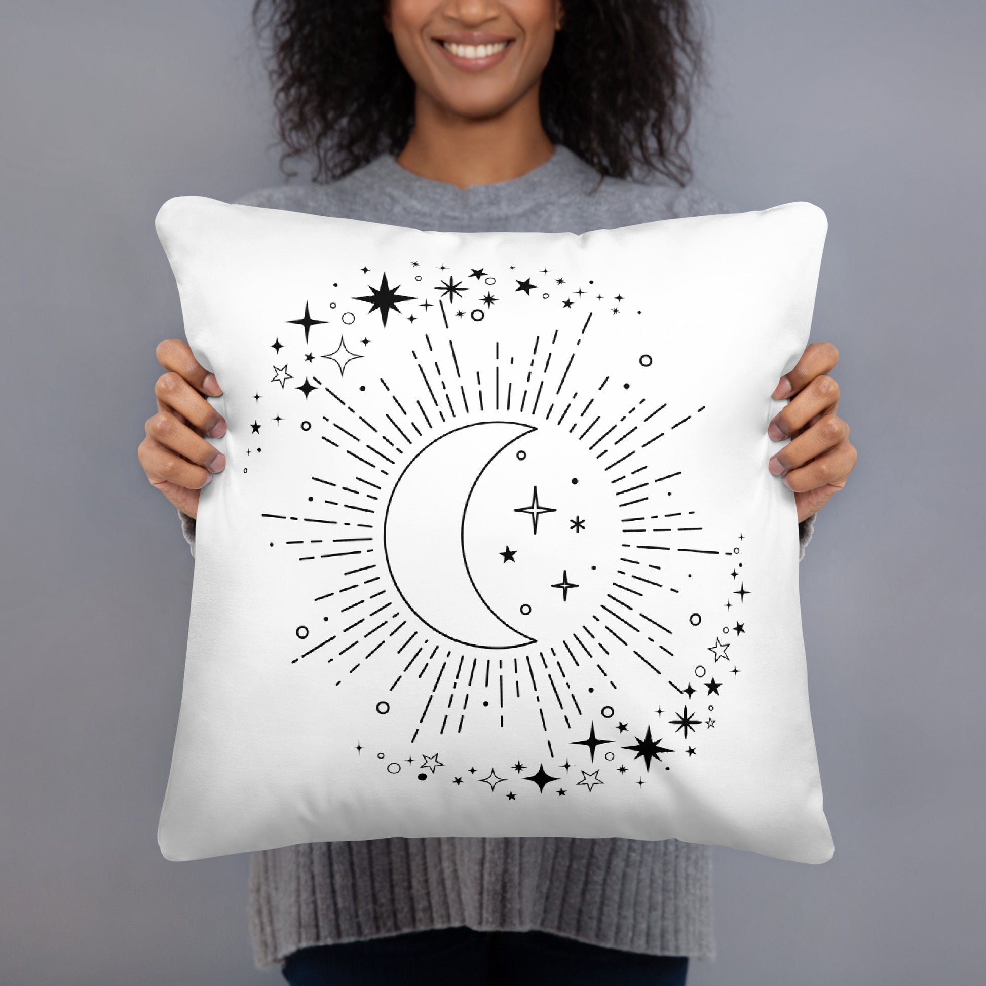 To The Moon & Stars White Throw Pillow 18" x 18" Square Pillow