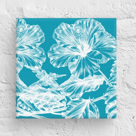 White Flowers Teal Mini Square Canvas Print 6" x 6" Desk Decor